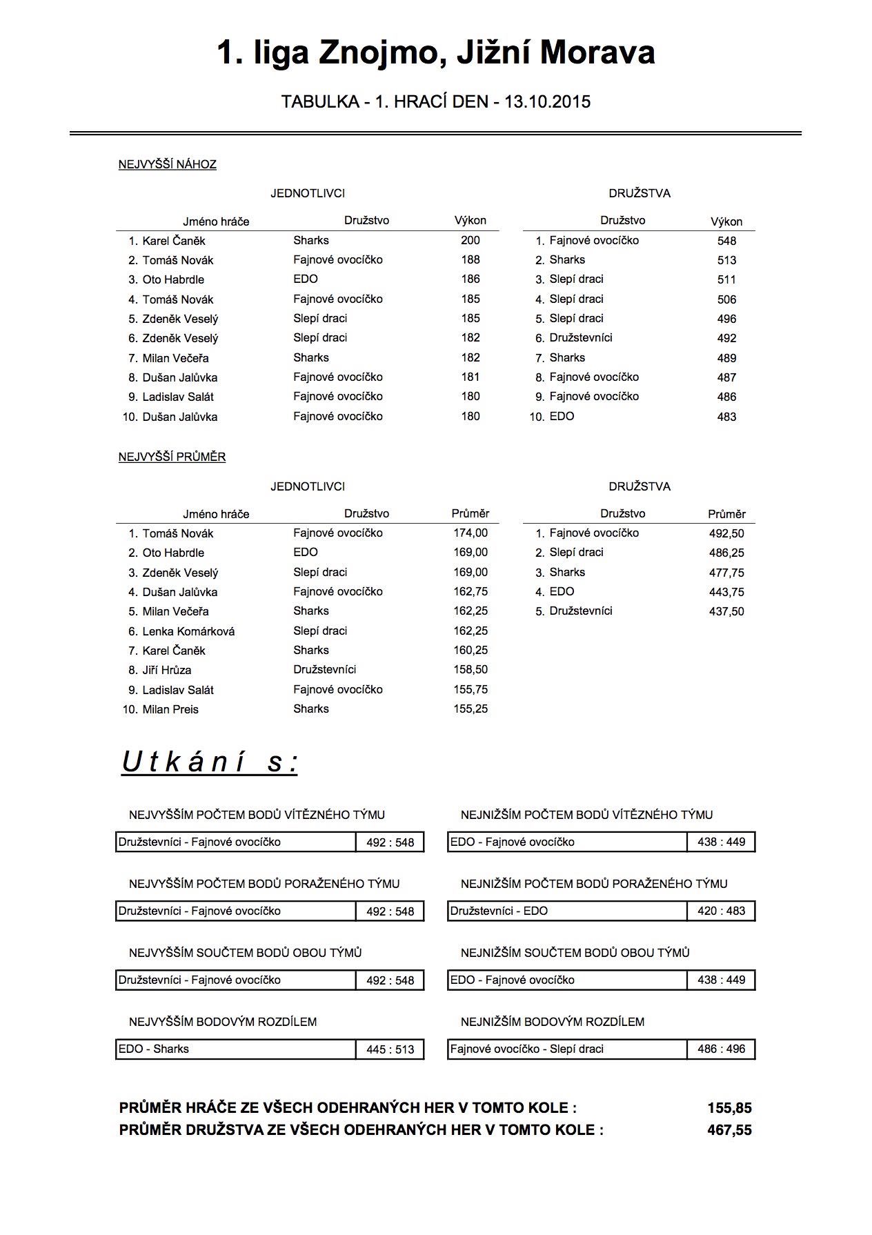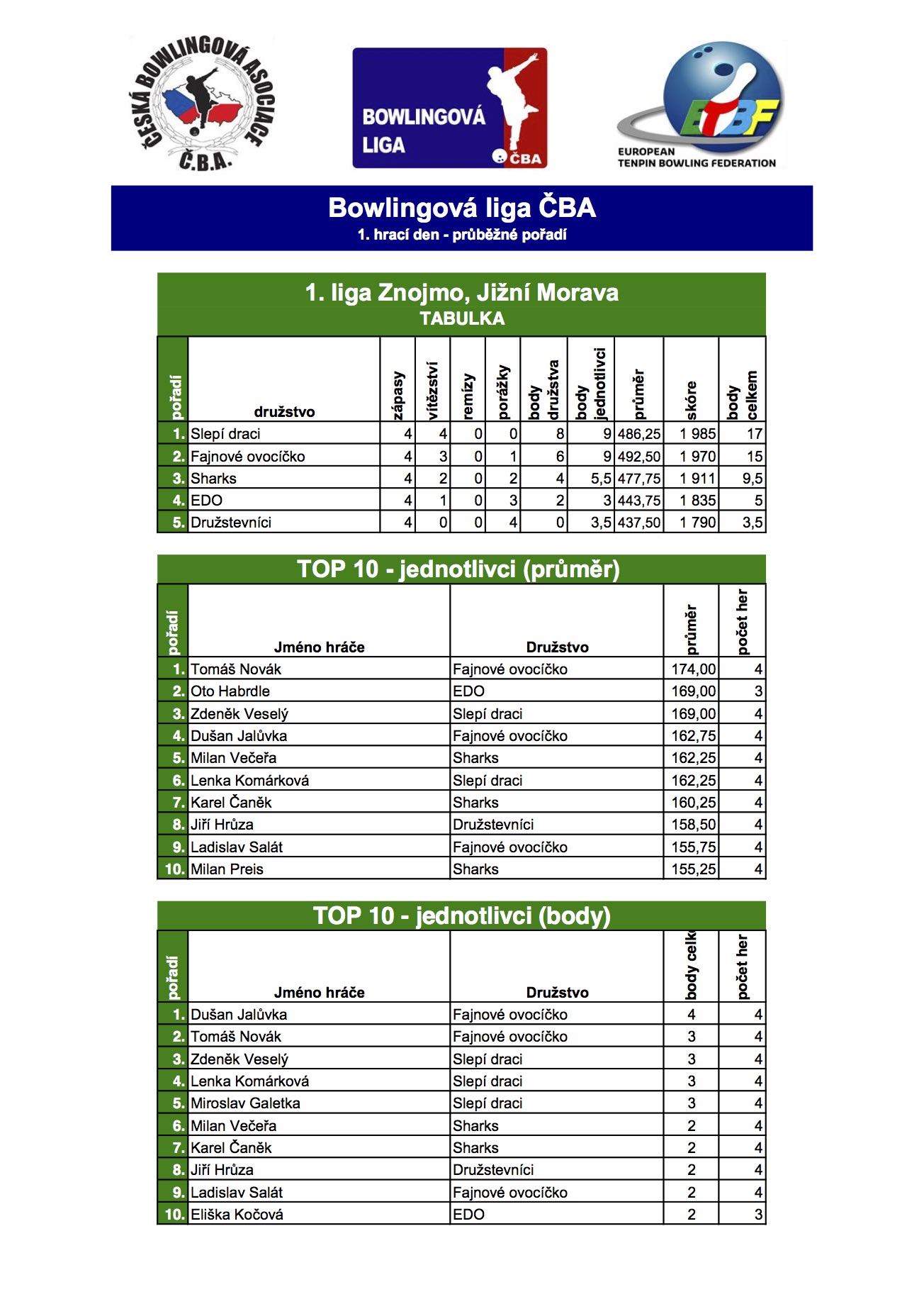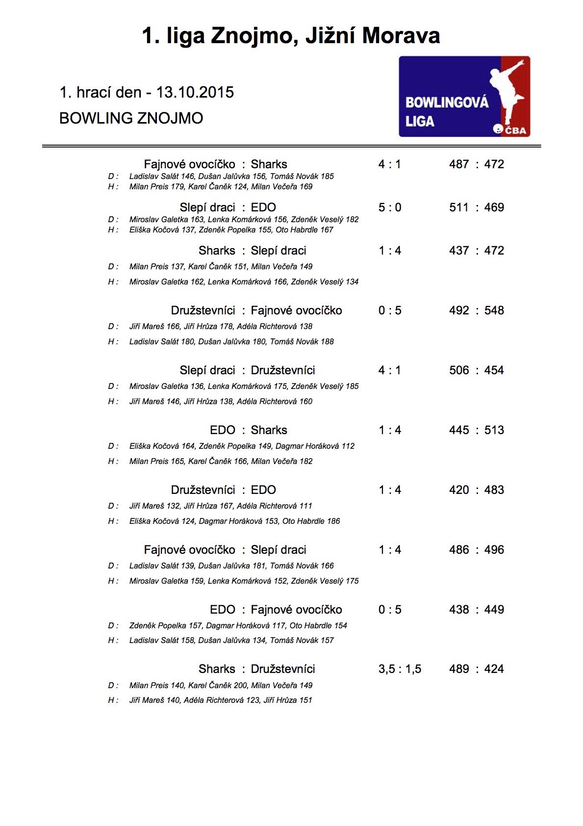 Rok s rokem se sešel a 13.10.2015 byla zahájena podzimní části Městské amatérské bowlingové ligy 2015/2016. Liga byla zahájená zápasy družstev první ligy a jako obvykle Vás touto cestou budeme informovat o výsledcích jednotlivých hracích dnů.