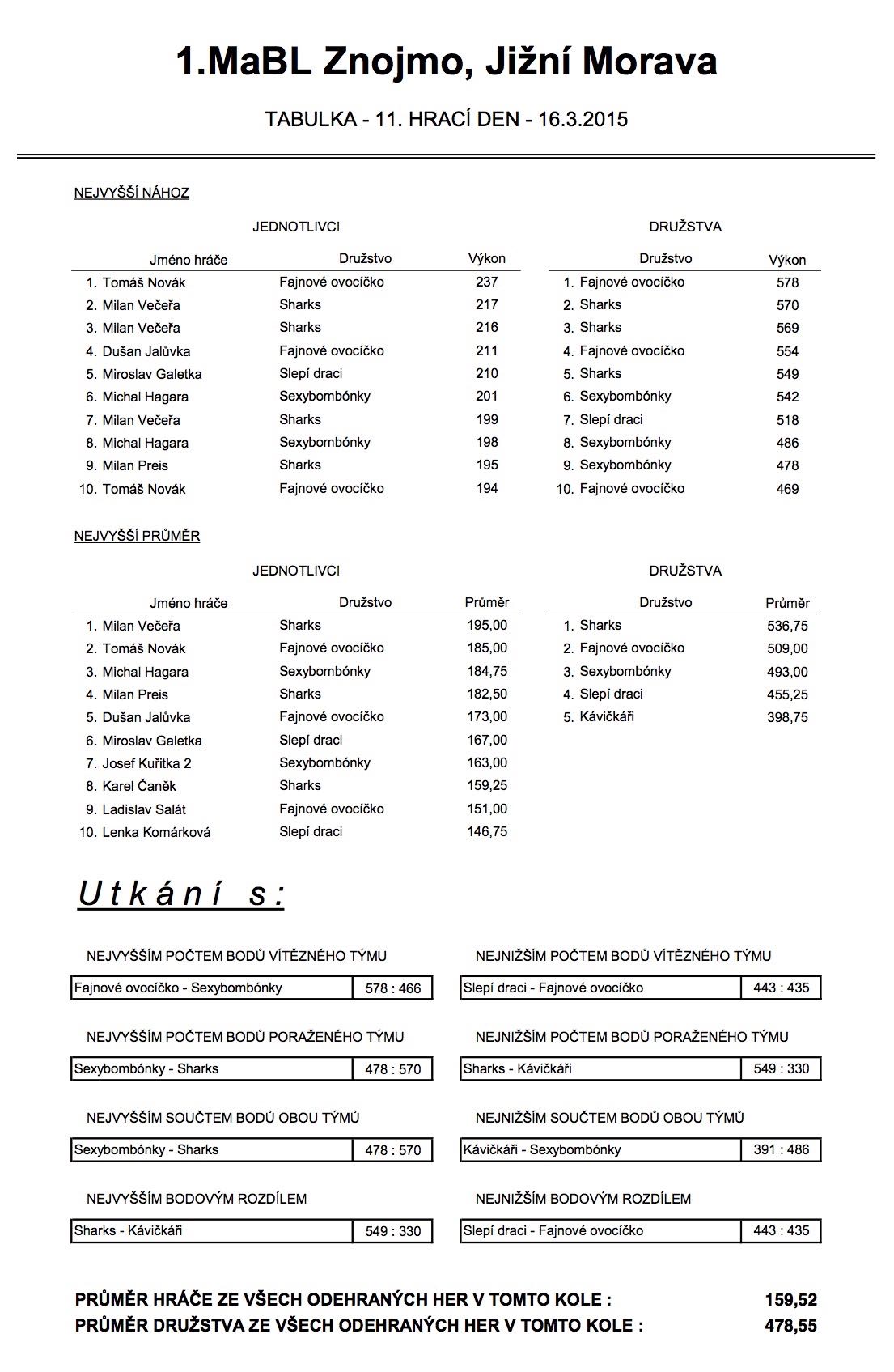 1. MABL - 11. kolo ročníku 2014/2015