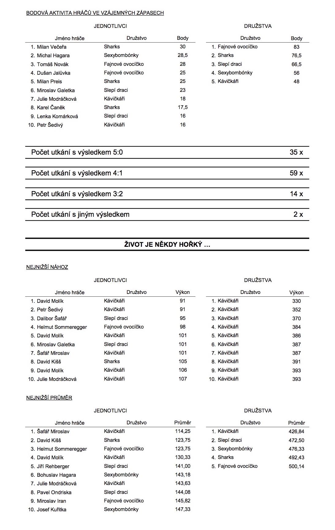 A na závěr celková statistika: