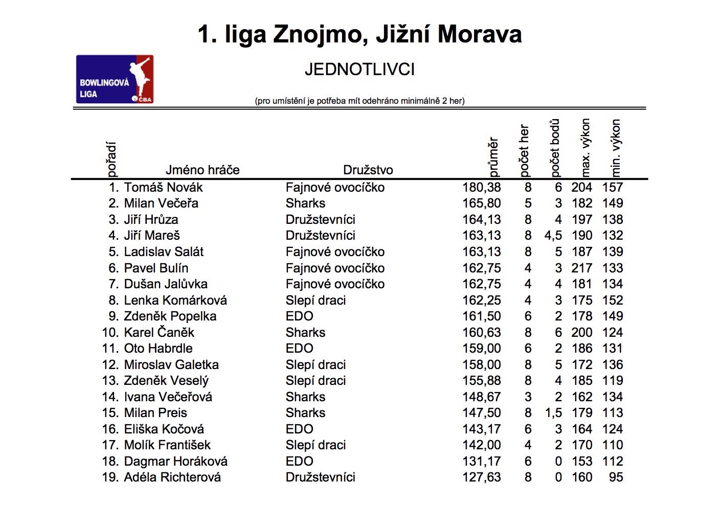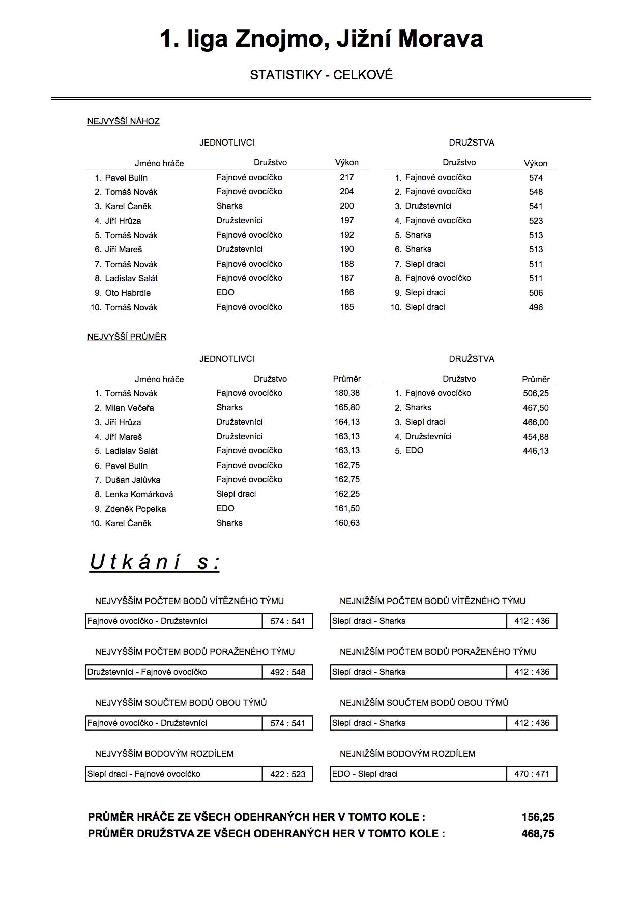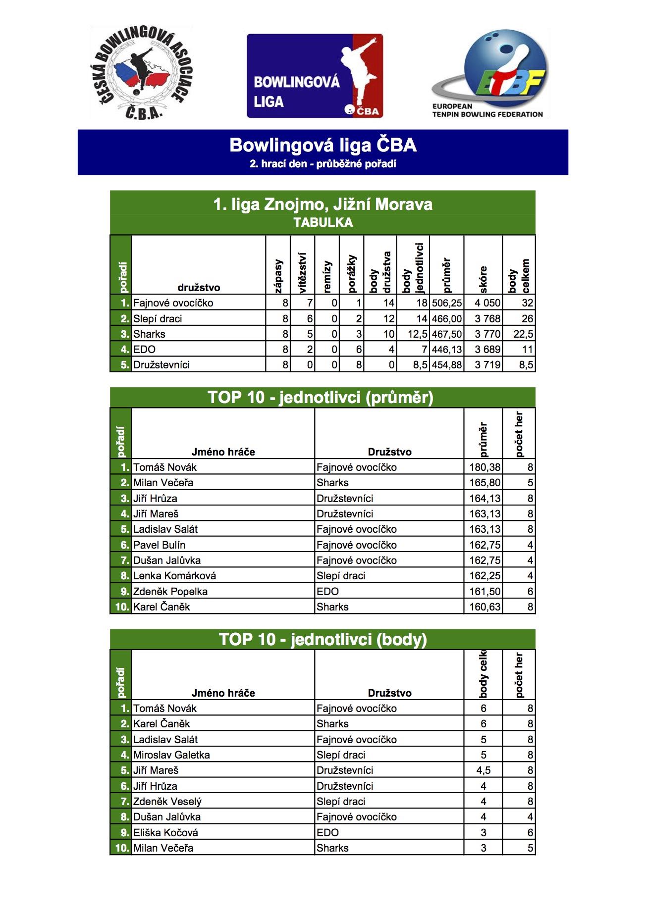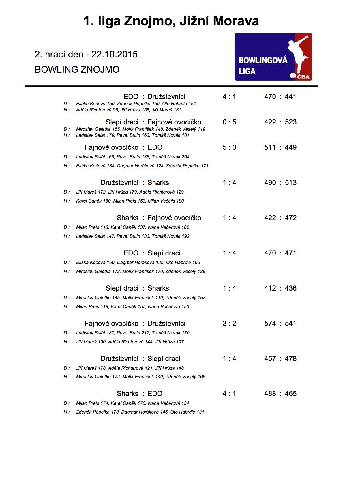 22.10.2015 odehrála družstva první ligy 2. kolo. Výsledky jako vždy ... :)