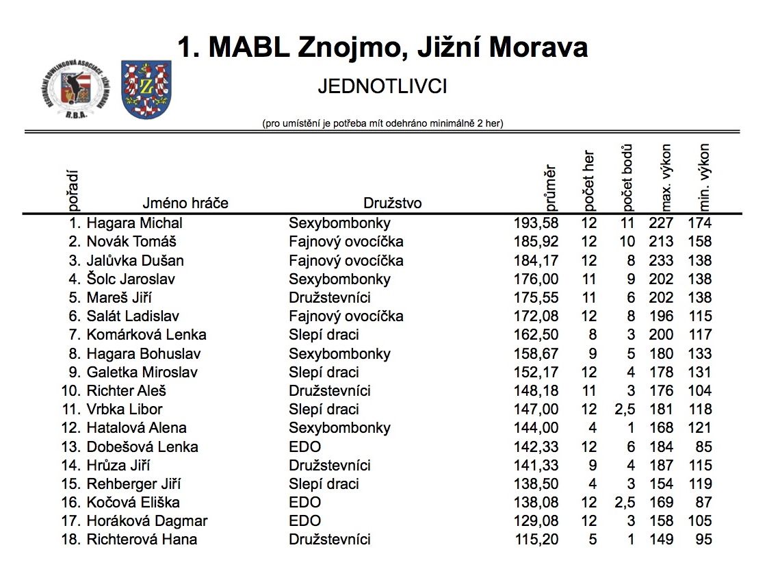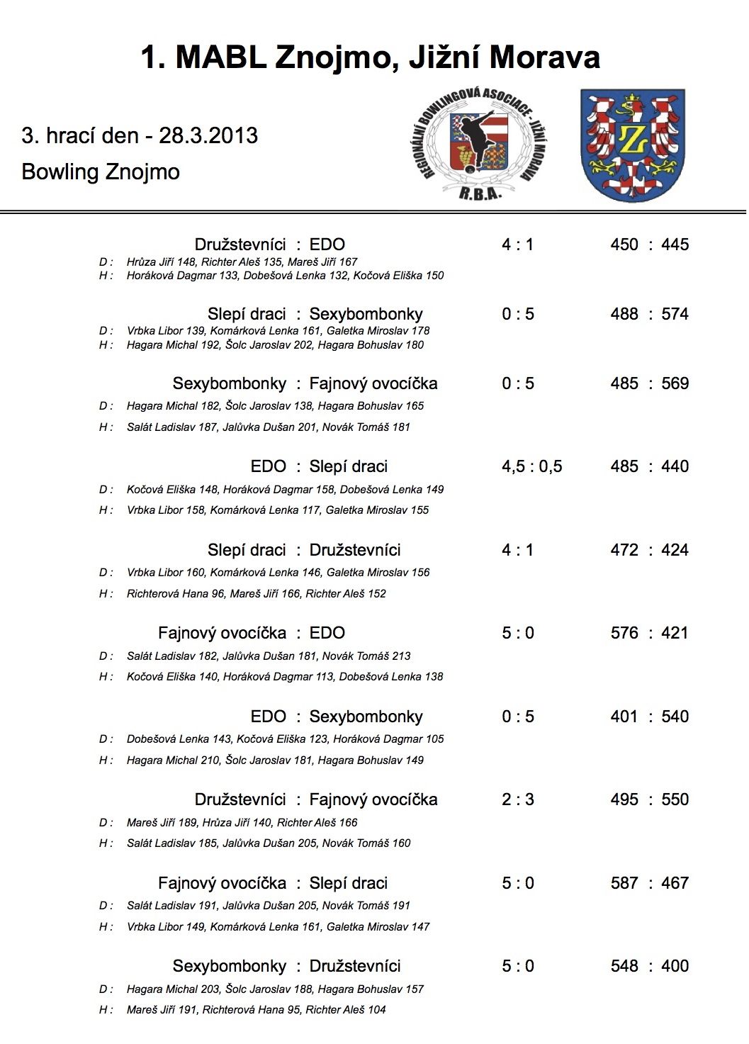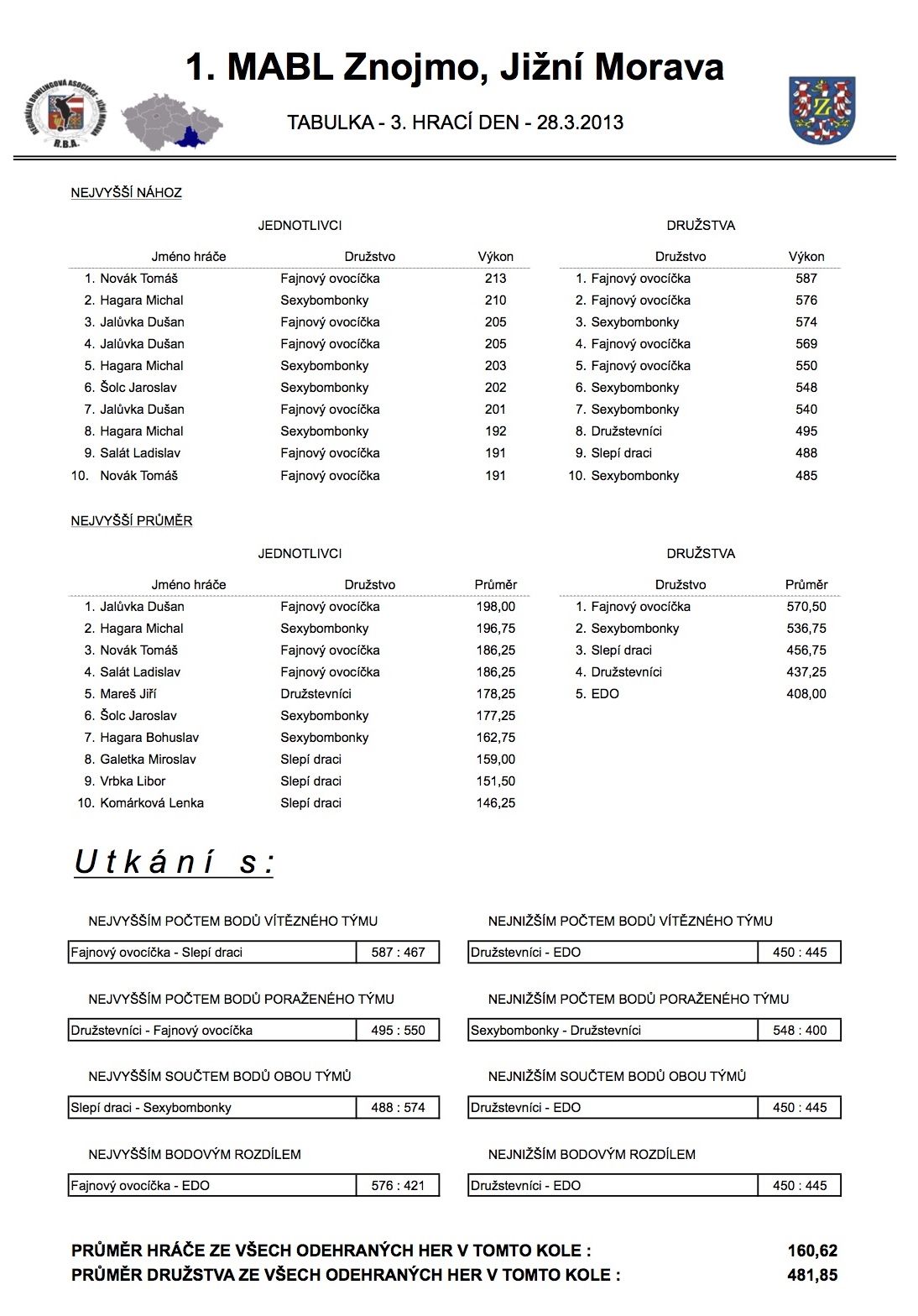 3.kolo 1.MABL skupiny A se odehrálo a přinášíme vám opět aktuální výsledky. :)