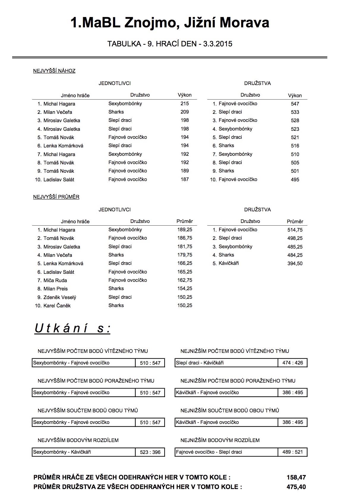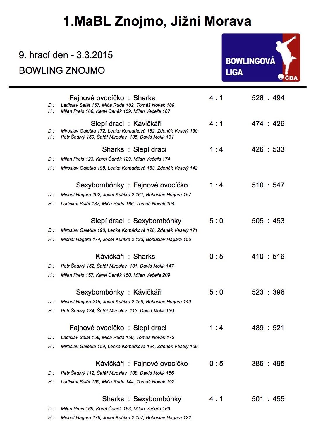 1. MABL - 9. kolo ročníku 2014/2015