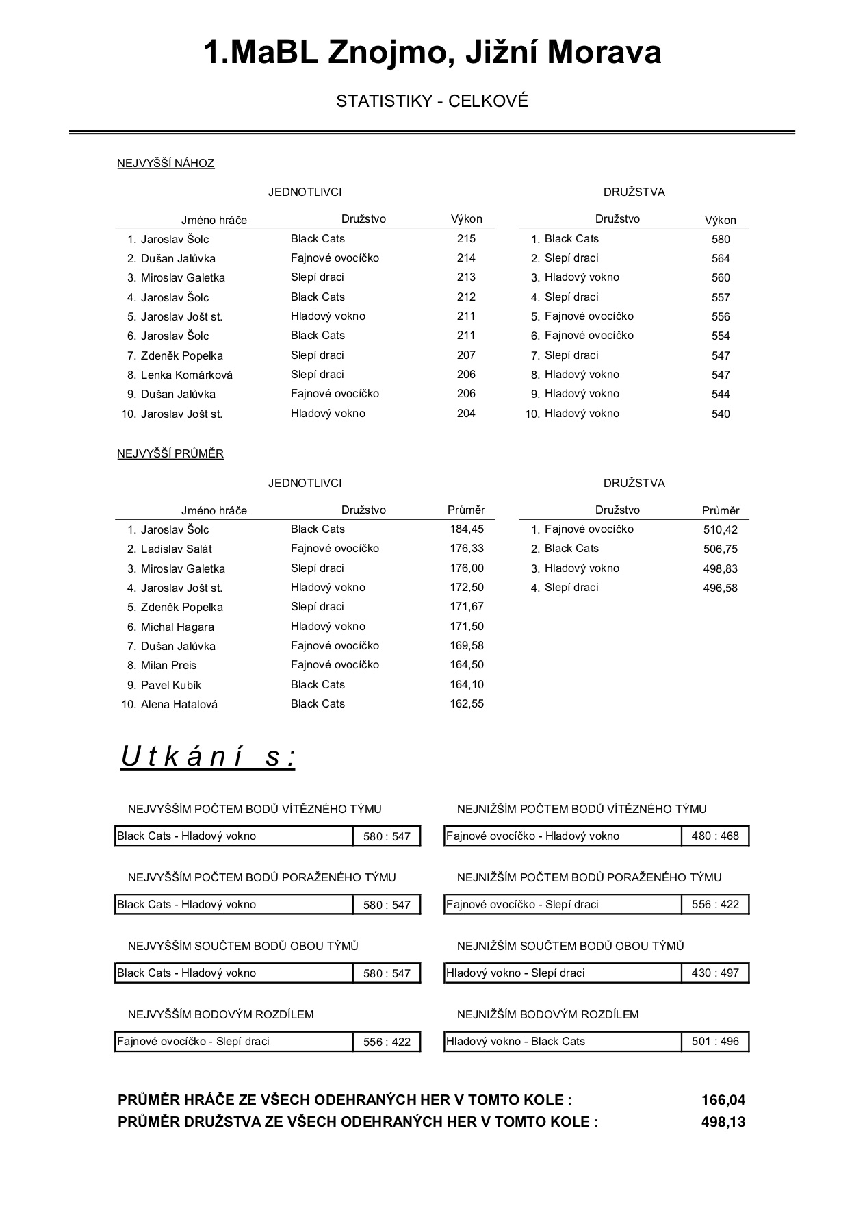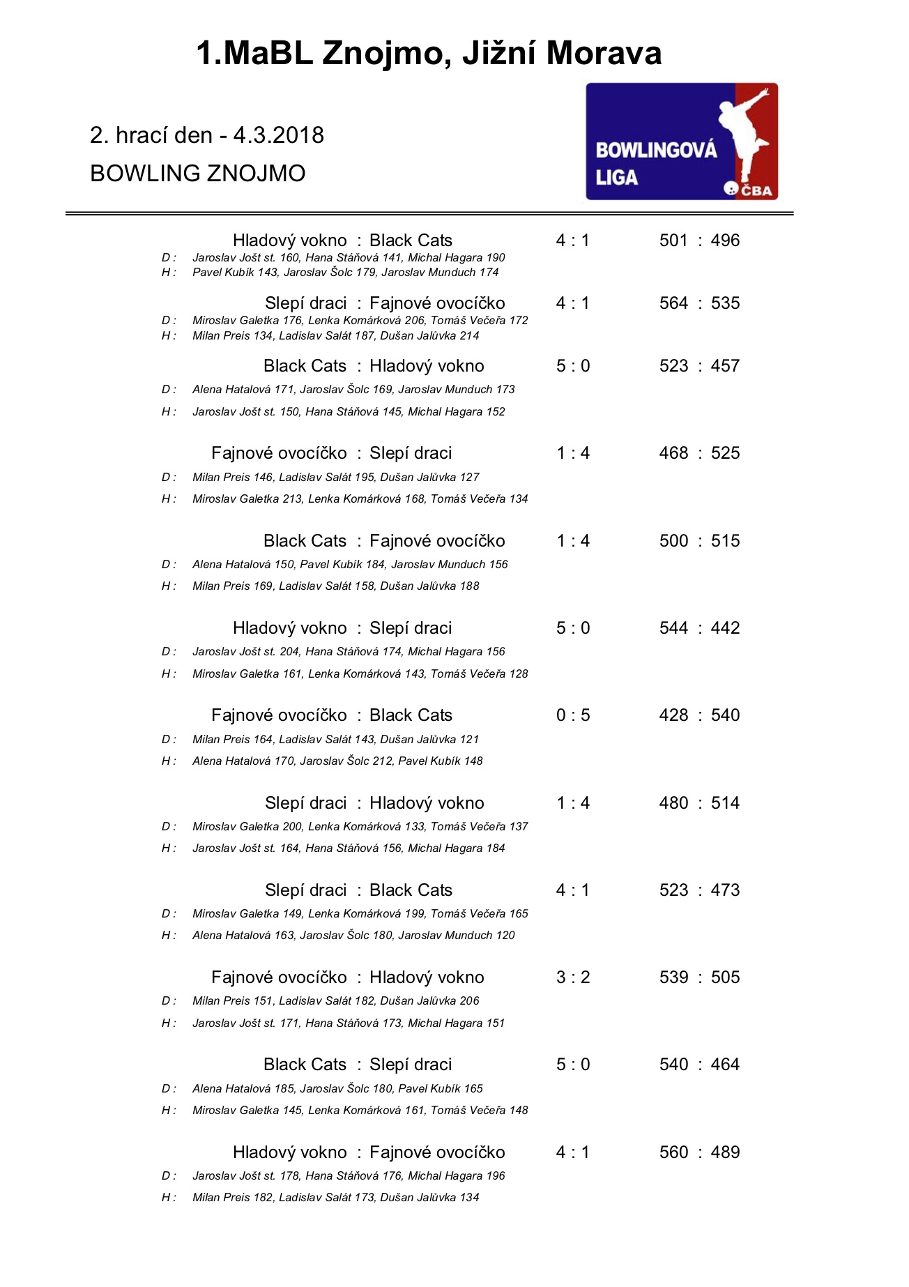 V neděli 4.3.2018 odehrála družstva 1. Městské amatérské bowlingové ligy další kolo jarní části ročníku 2017/2018. Výsledky naleznete jako vždy v článku.