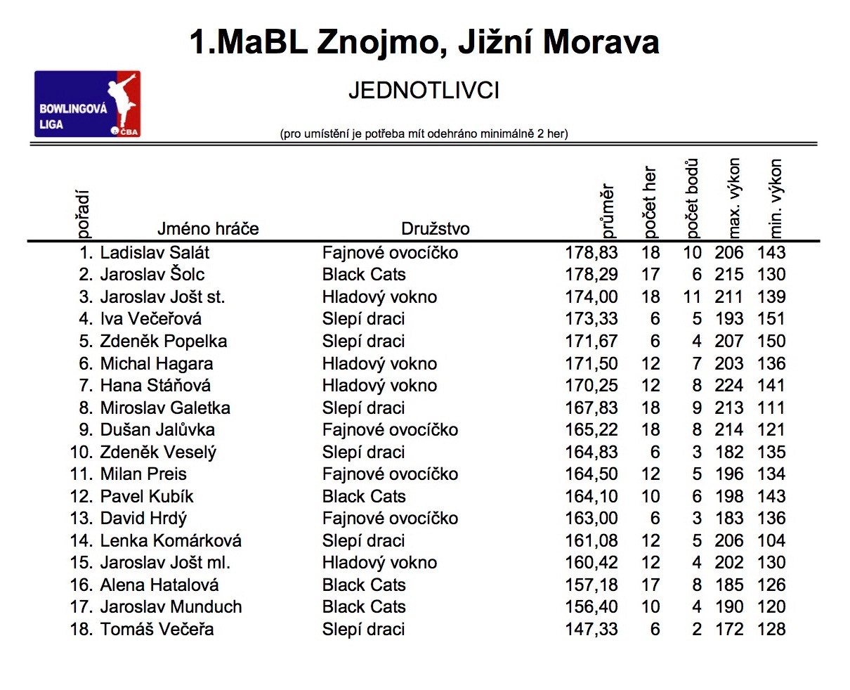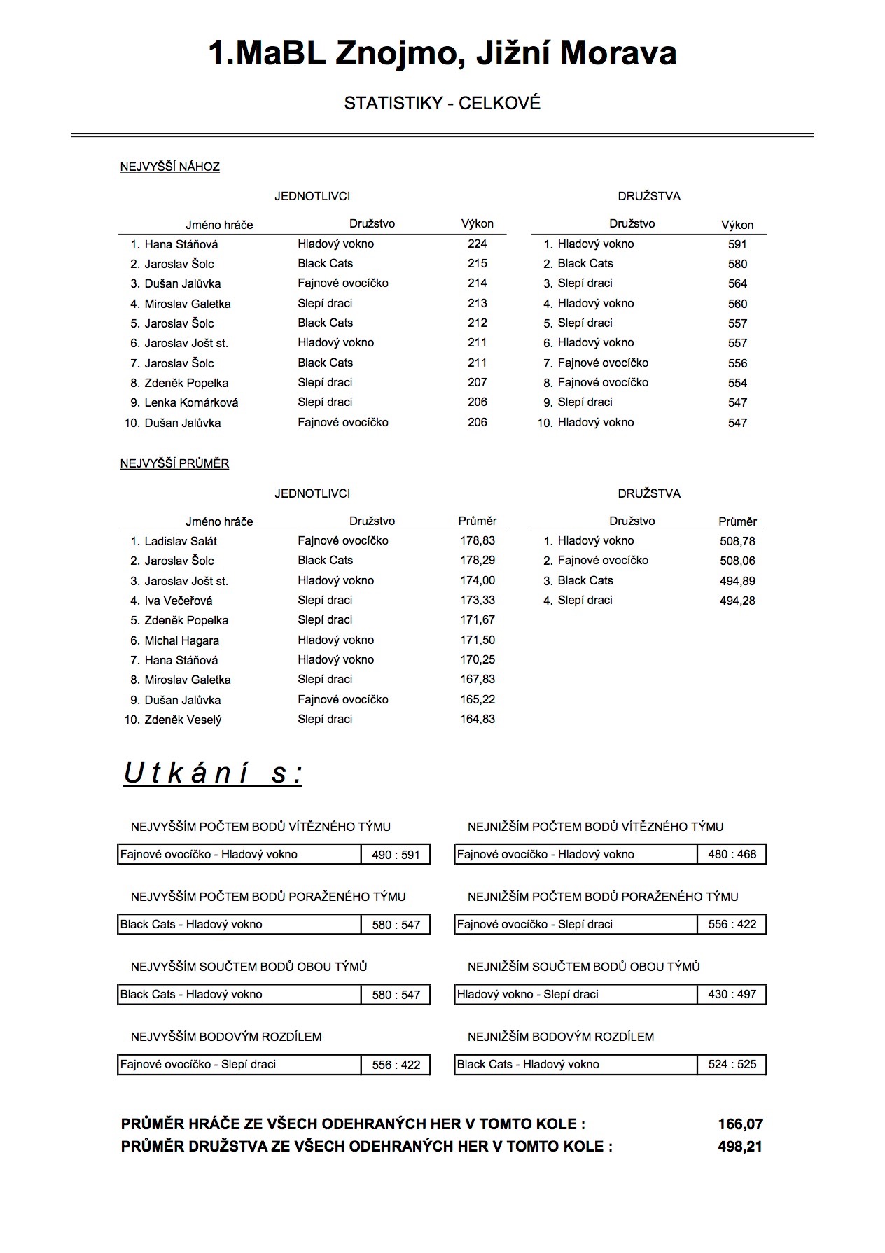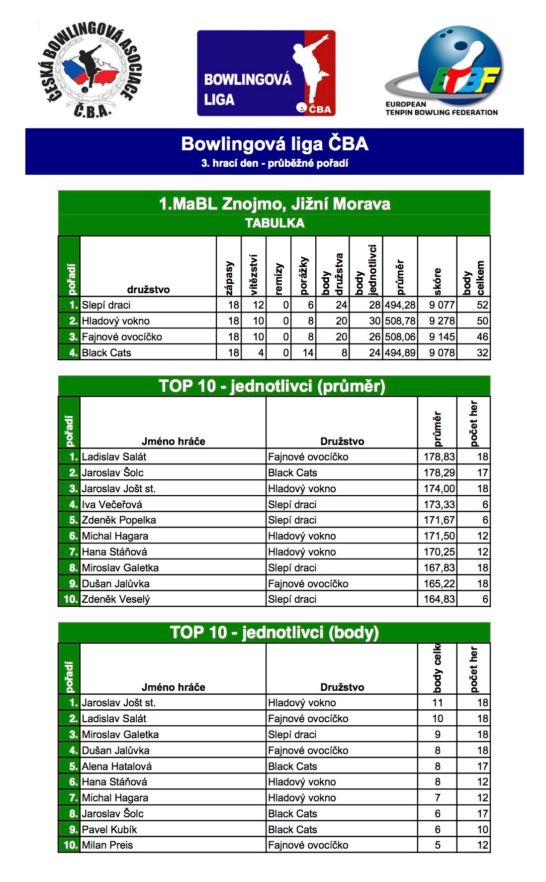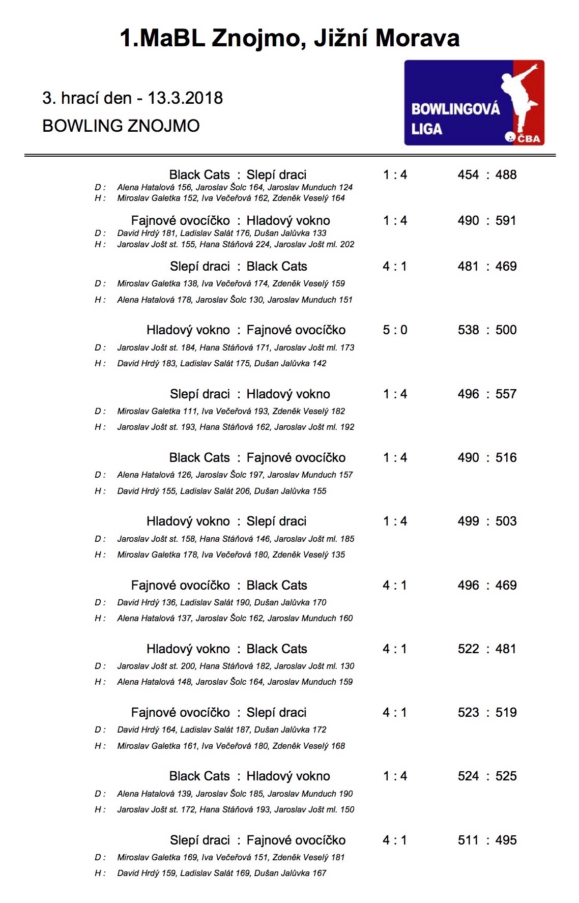 V úterý 13.3.2018 odehrála družstva 1. Městské amatérské bowlingové ligy další kolo jarní části ročníku 2017/2018. Výsledky naleznete jako vždy v článku.
