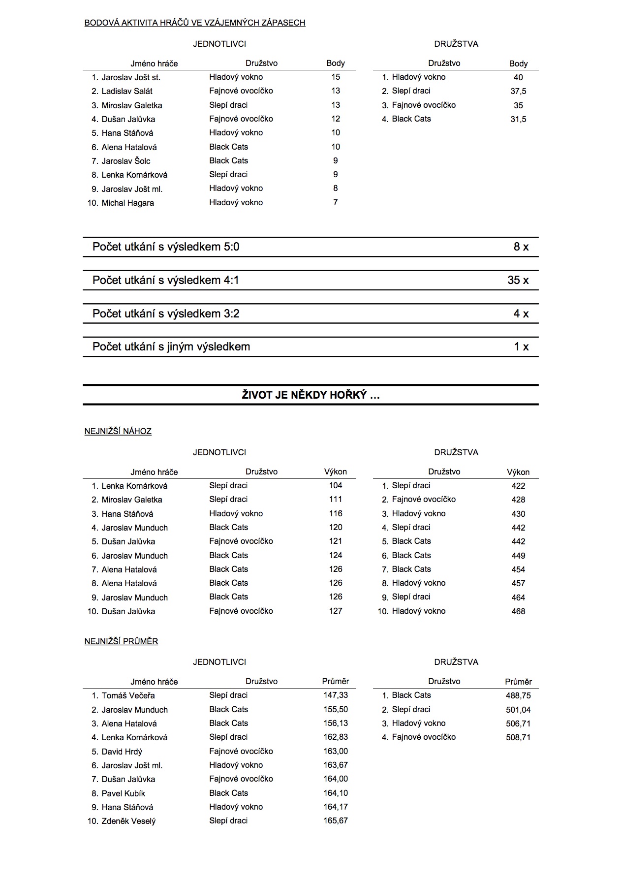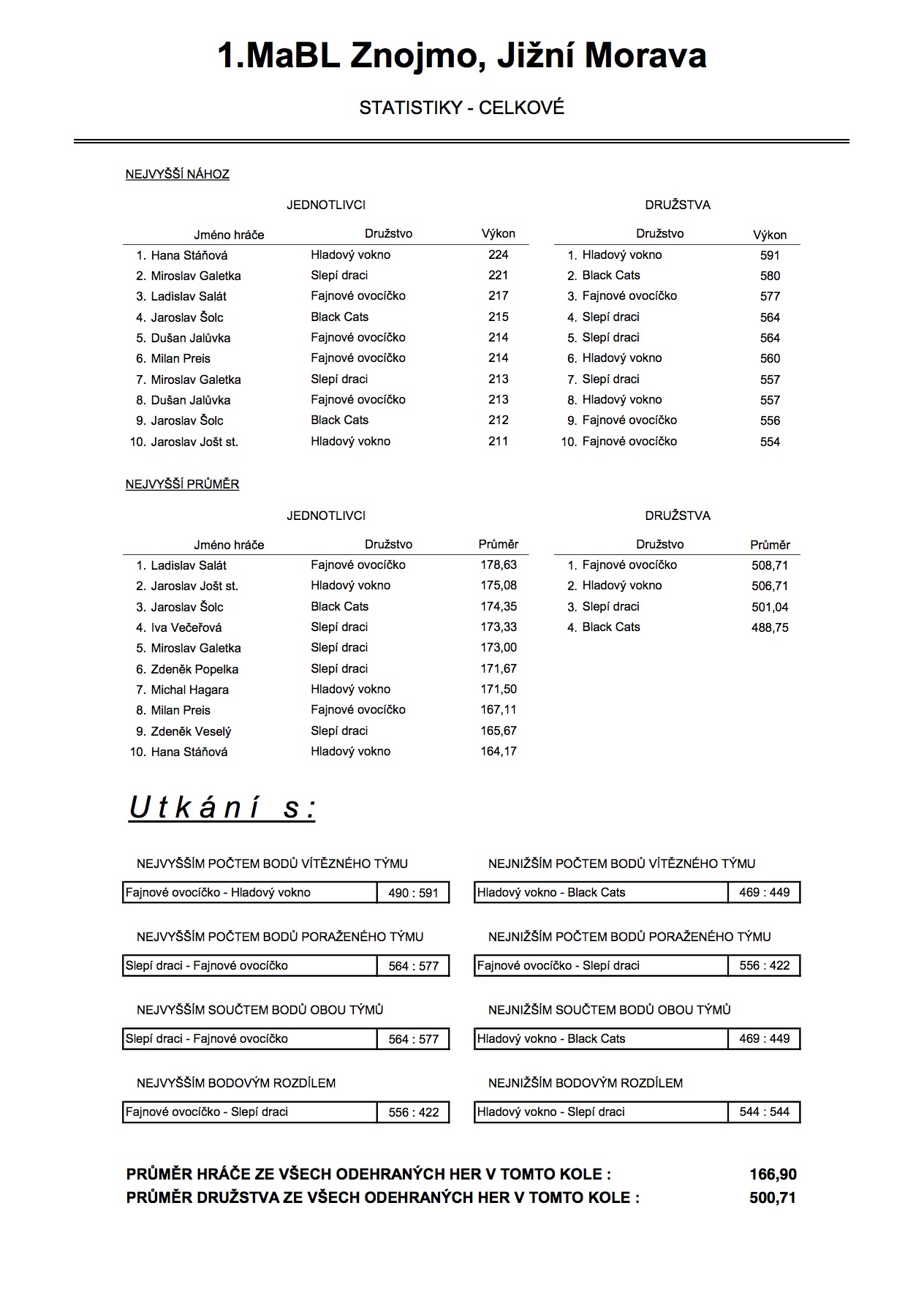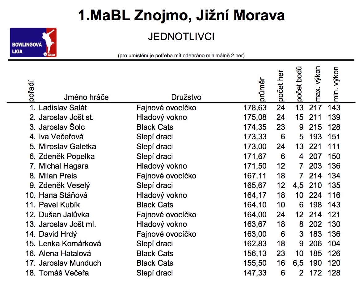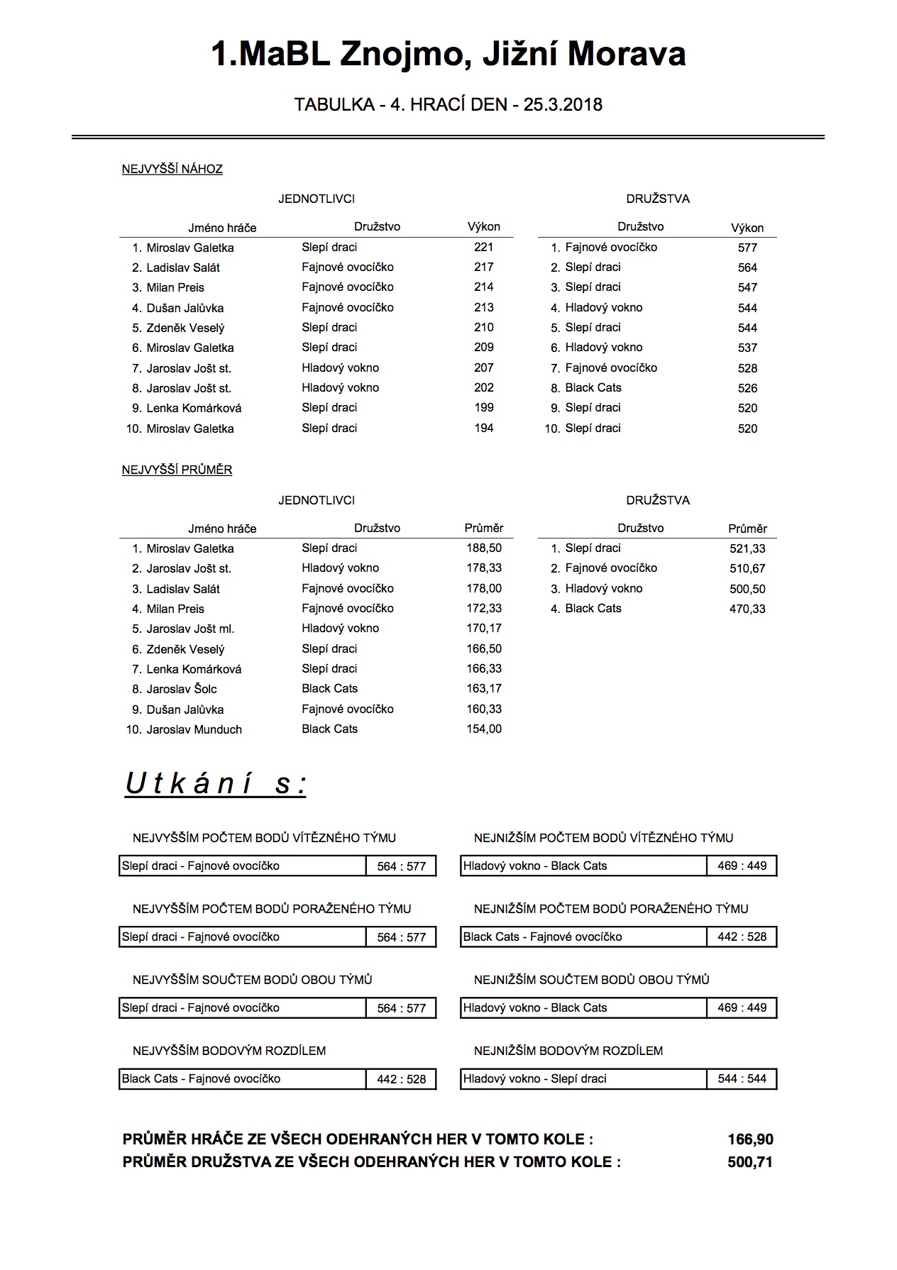 V neděli 25.3.2018 odehrála družstva 1. Městské amatérské bowlingové ligy další, předposlední kolo jarní části ročníku 2017/2018. Výsledky naleznete jako vždy v článku.