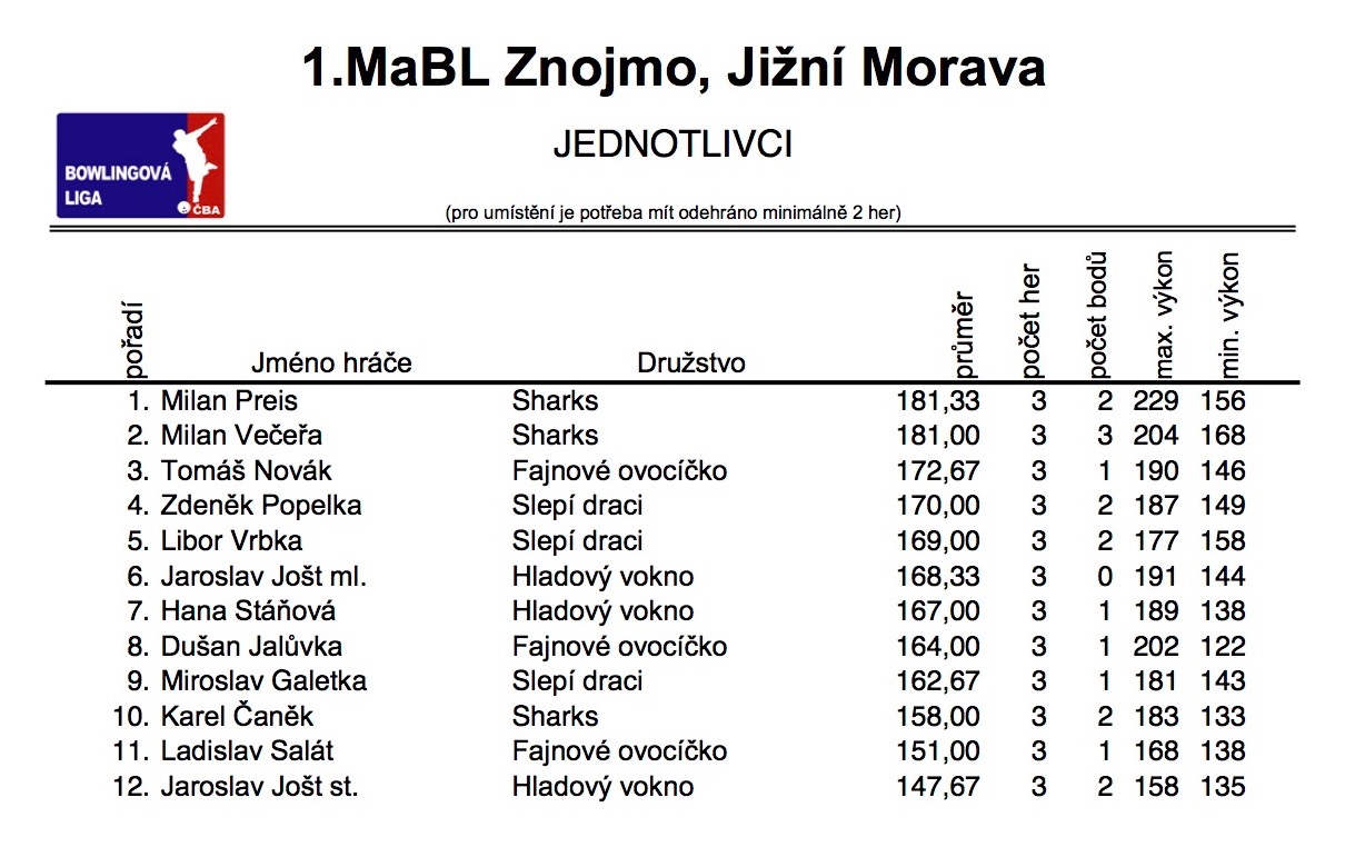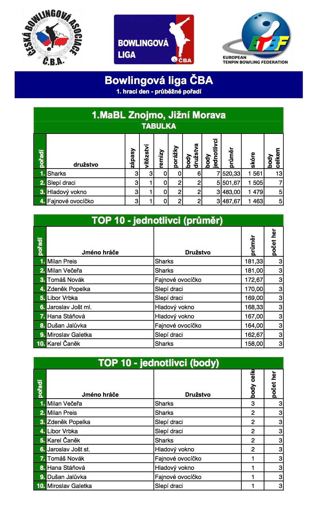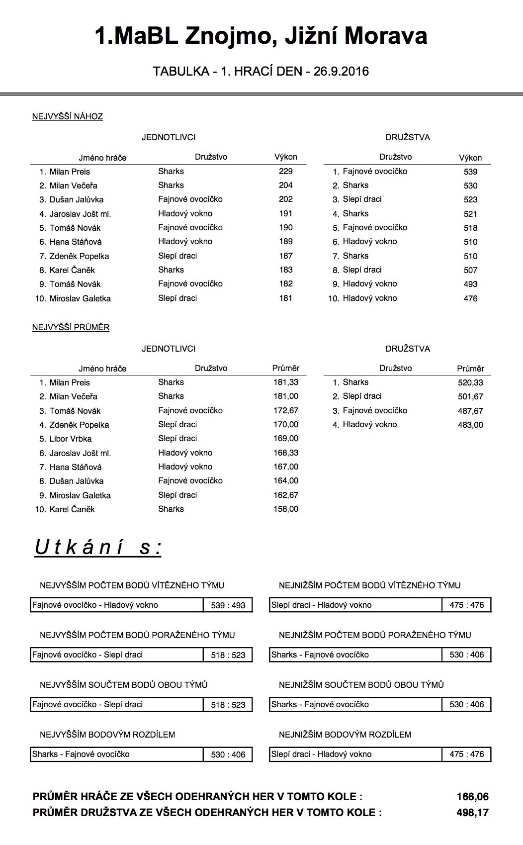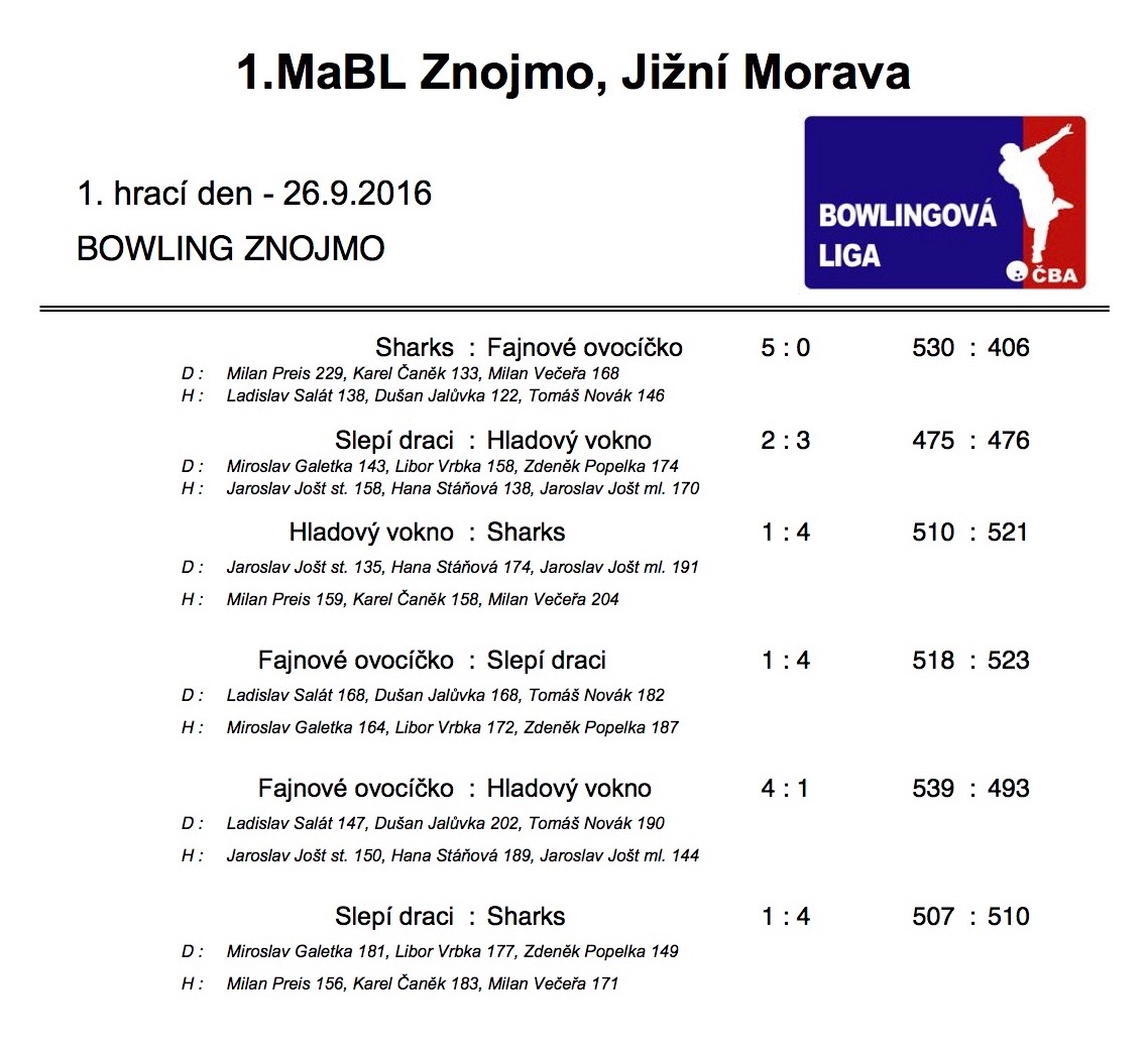 V pondělí 26.9.2016 odehrála družstva 1. Městské amatérské bowlingové ligy první kolo a zahajila tak podzimní část ligy roku 2016. Výsledky naleznete jako vždy v článku.