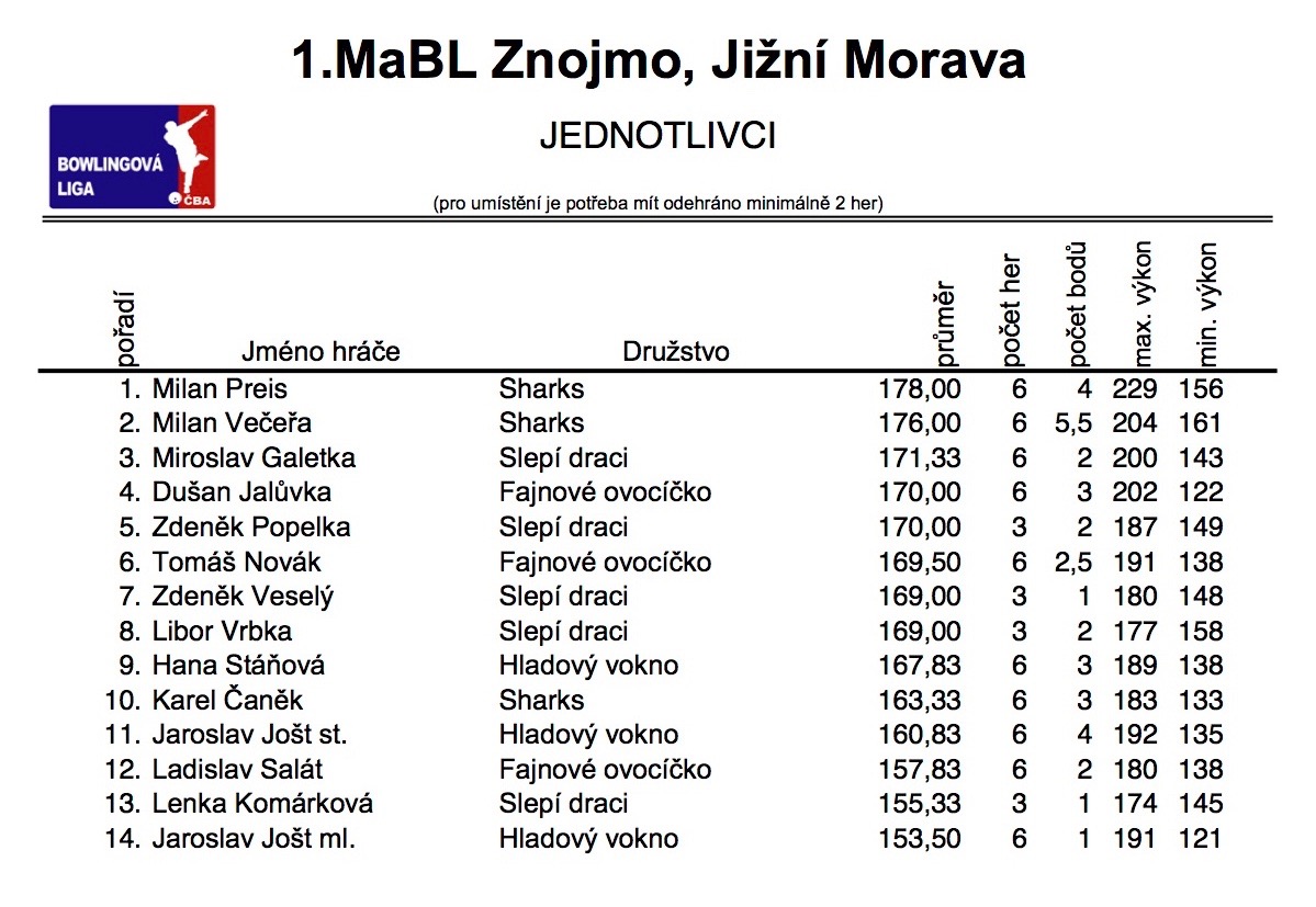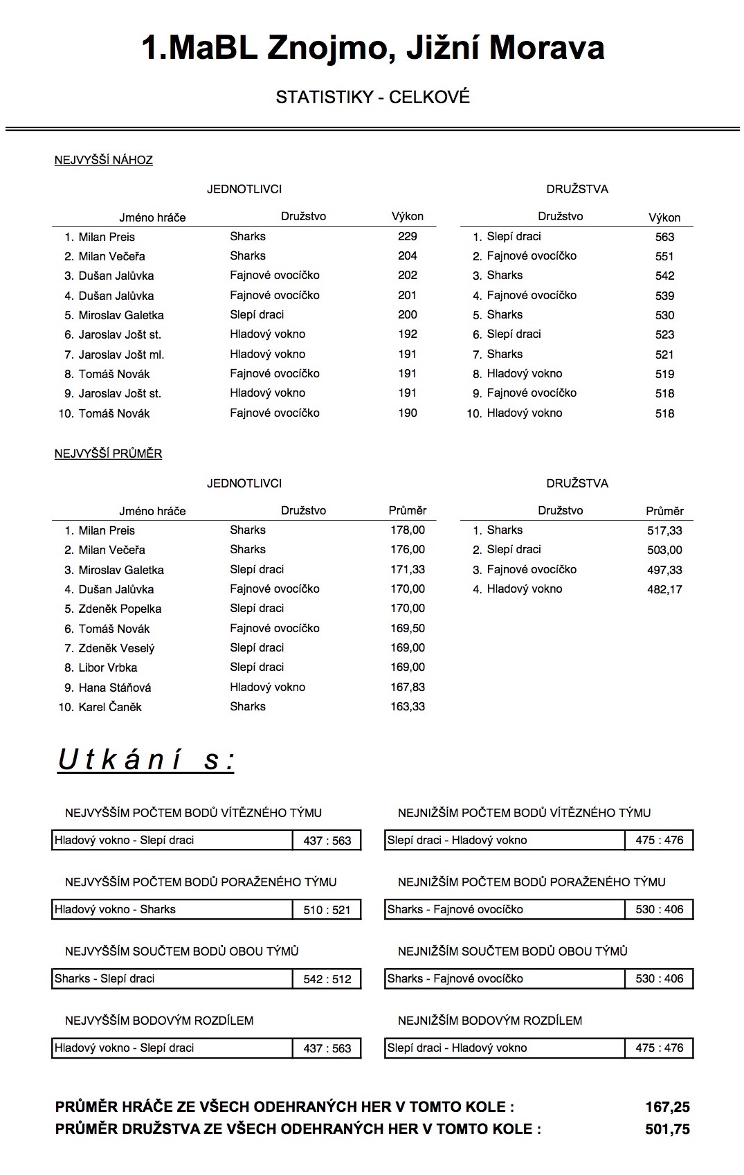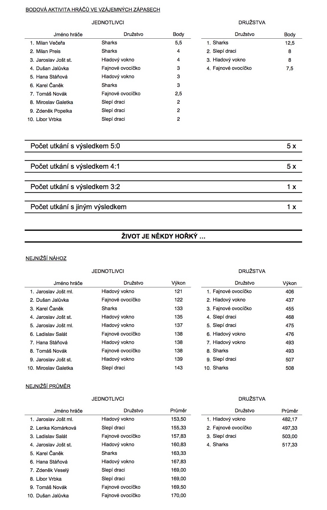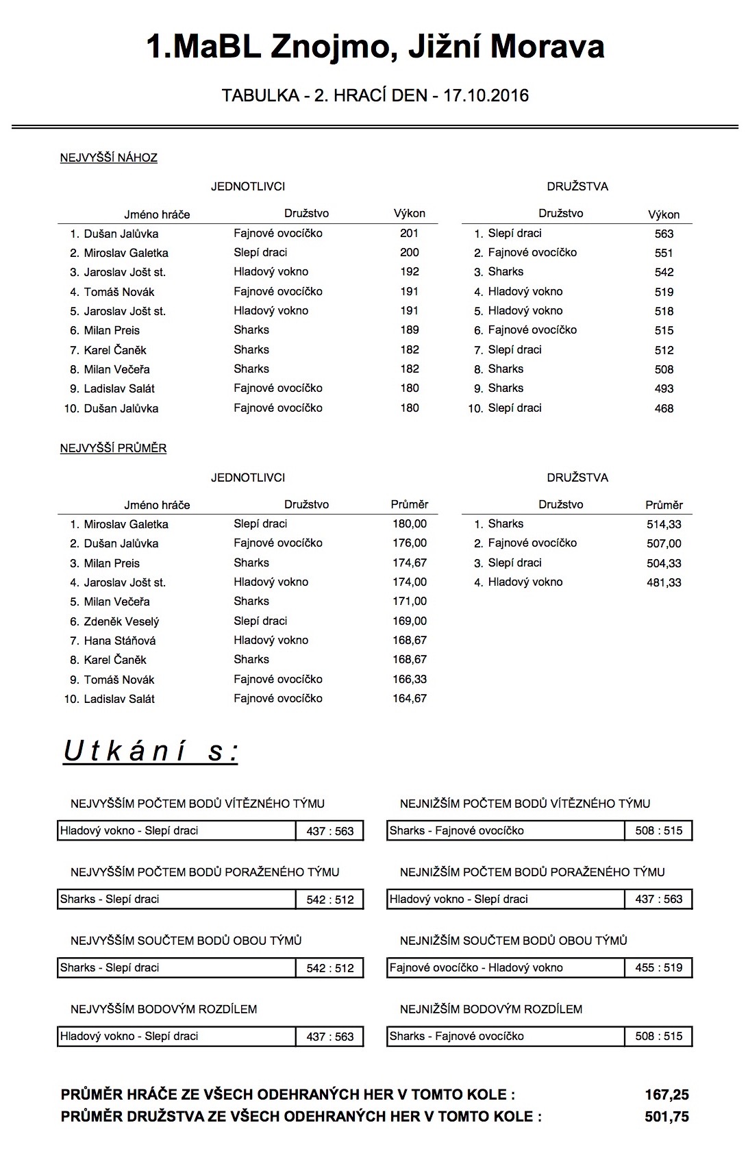 V pondělí 17.10.2016 odehrála družstva 1.Městské amatérské bowlingové ligy druhé kolo podzimní části ročníku 2016. Výsledky naleznete jako vždy v článku.