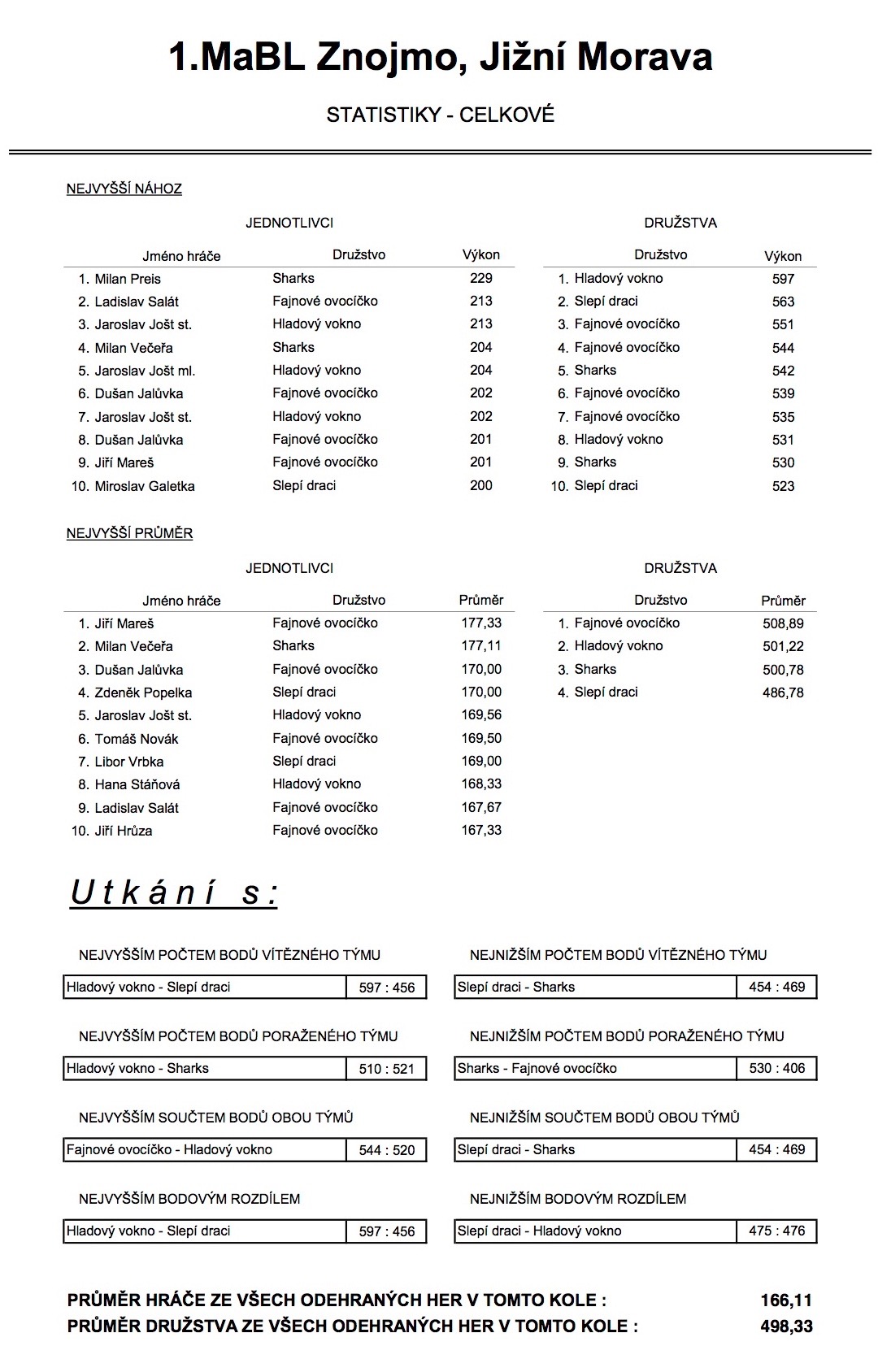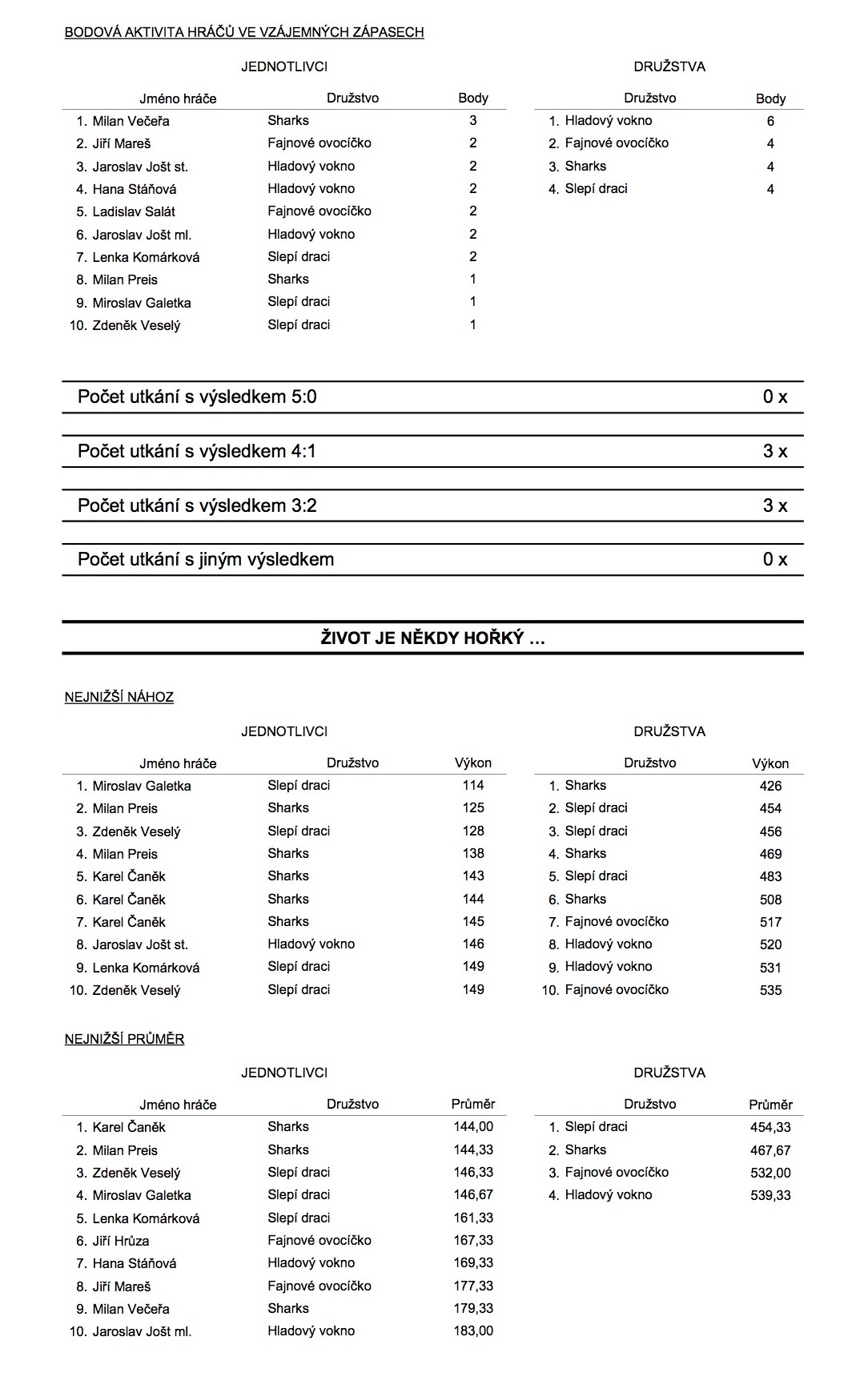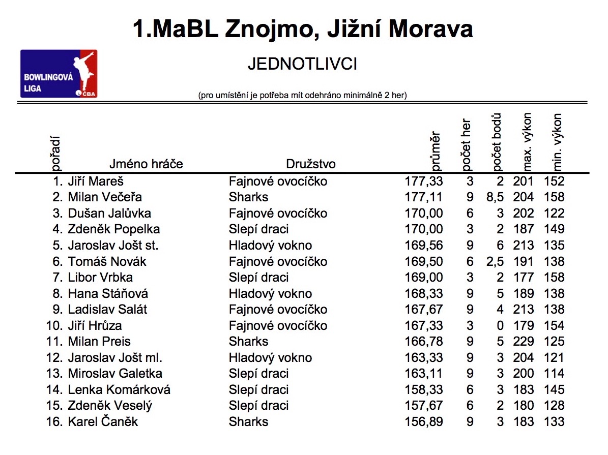 V úterý 1.11.2016 odehrála družstva 1.Městské amatérské bowlingové ligy třetí kolo podzimní části ročníku 2016. Výsledky naleznete jako vždy v článku.