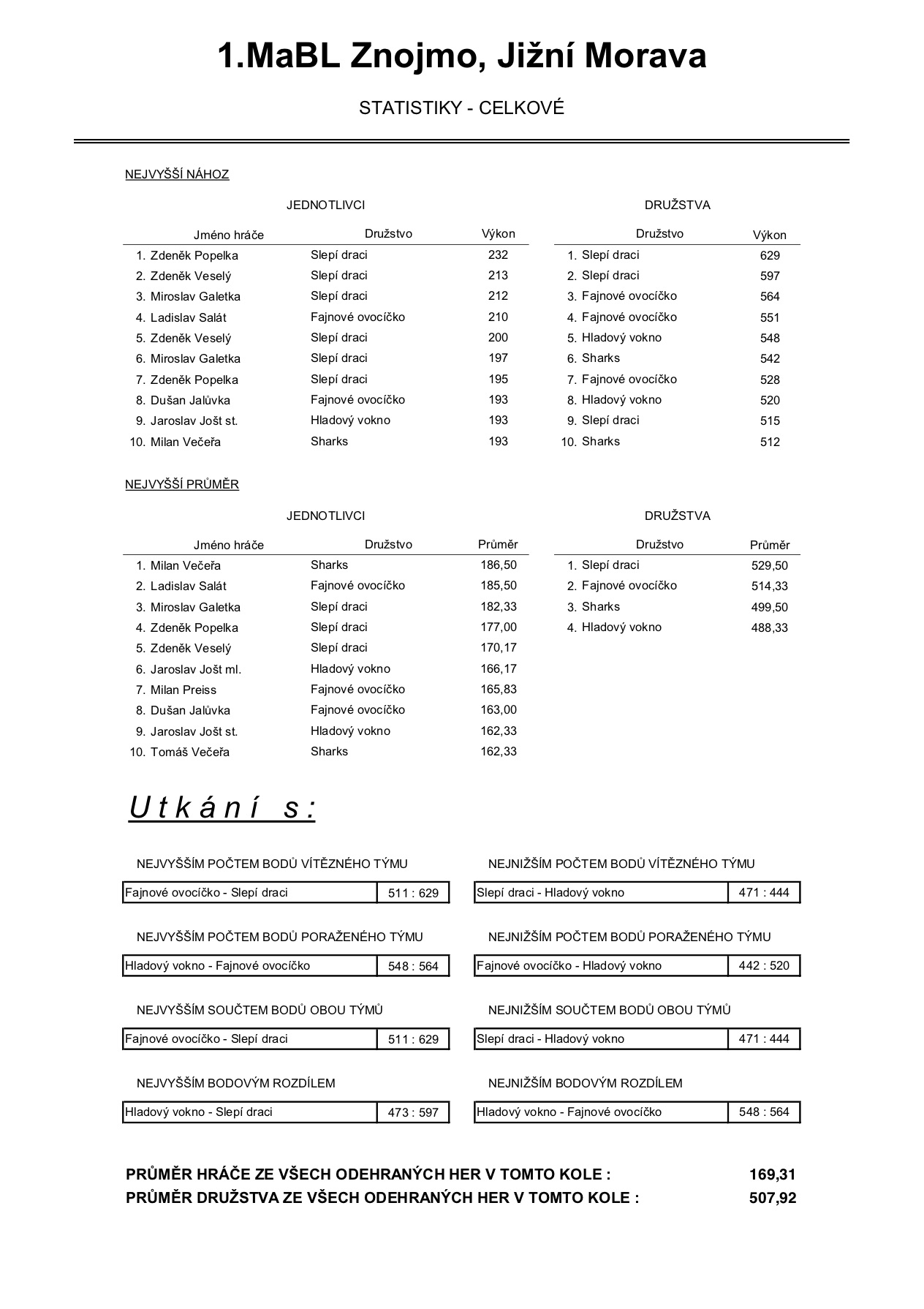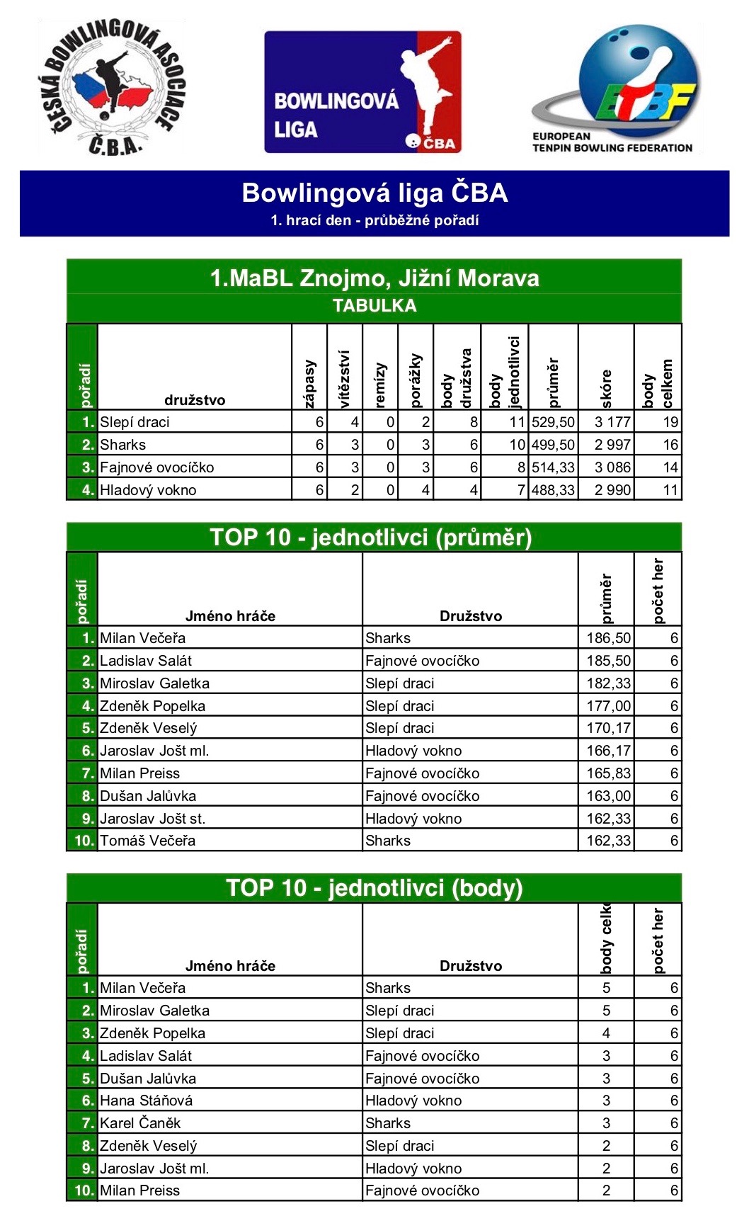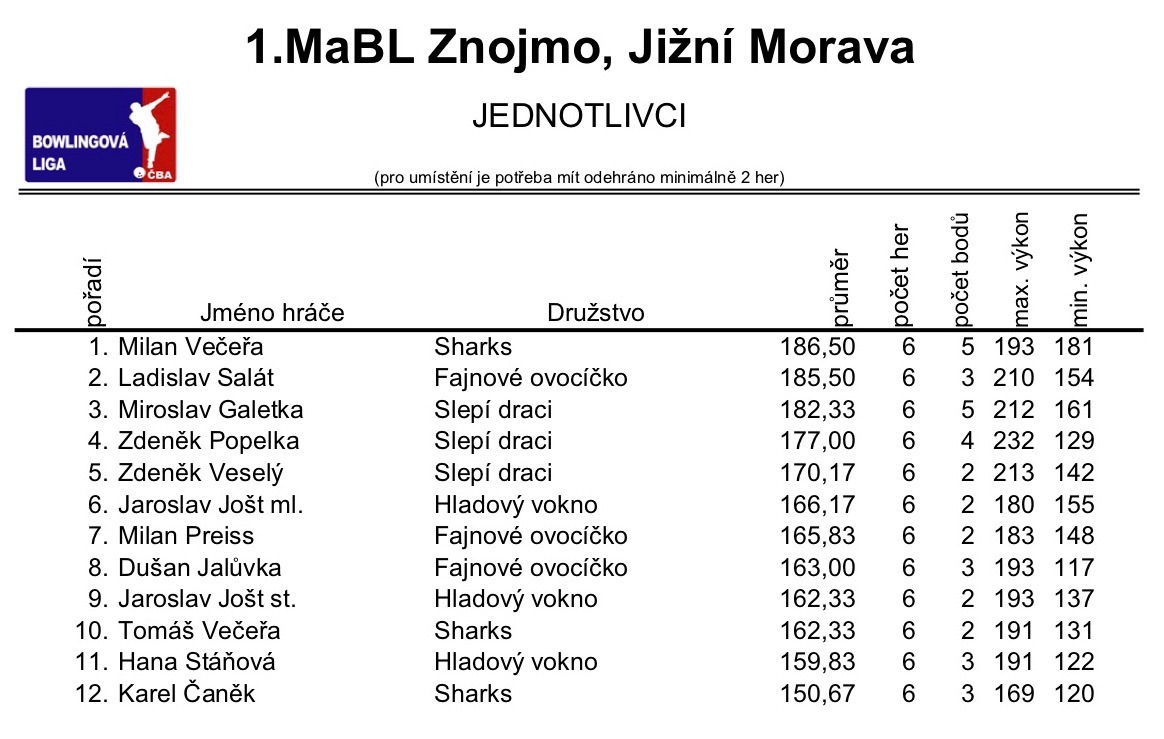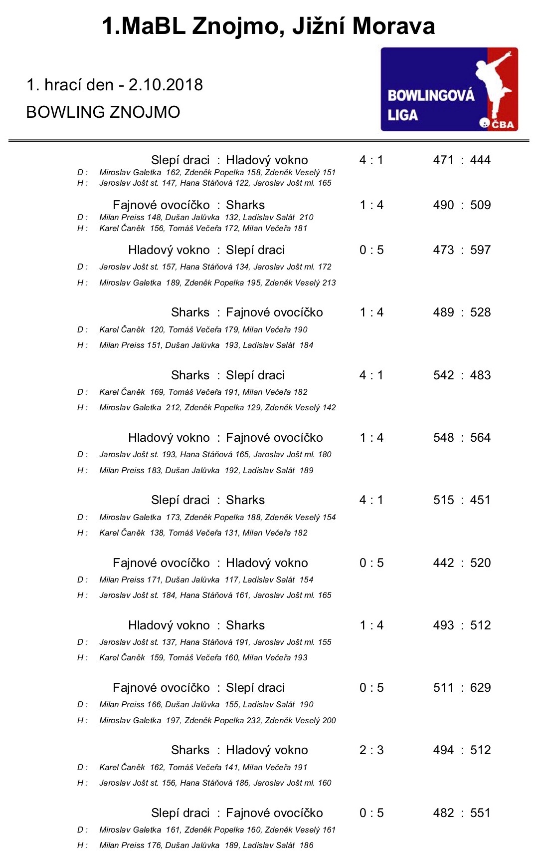 1. MABL podzim 2018 - 1. kolo