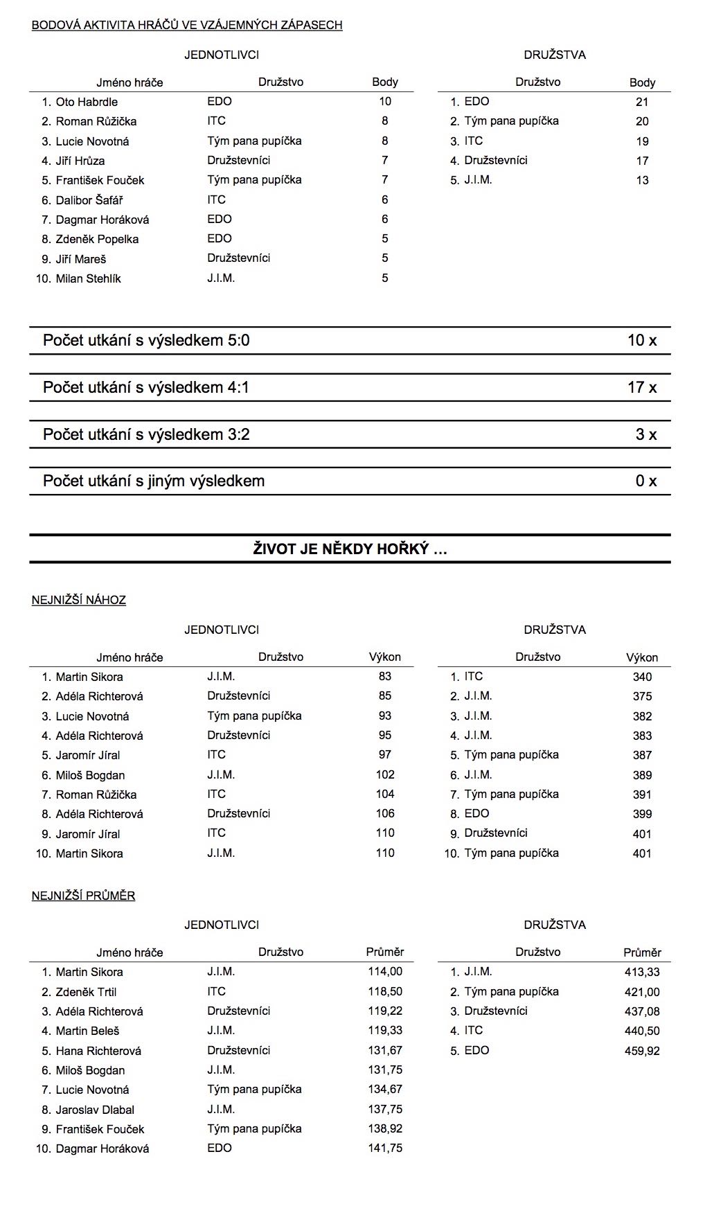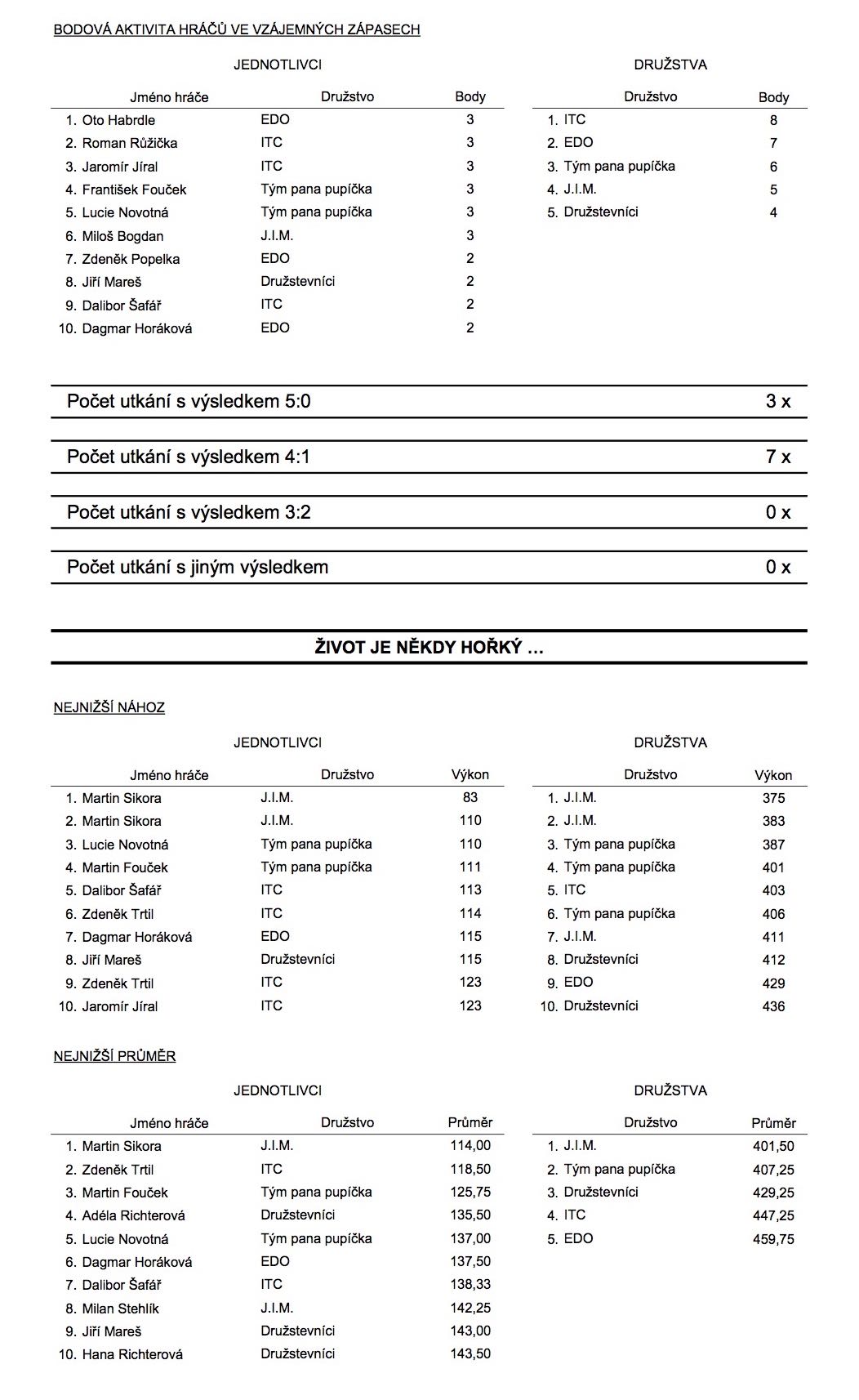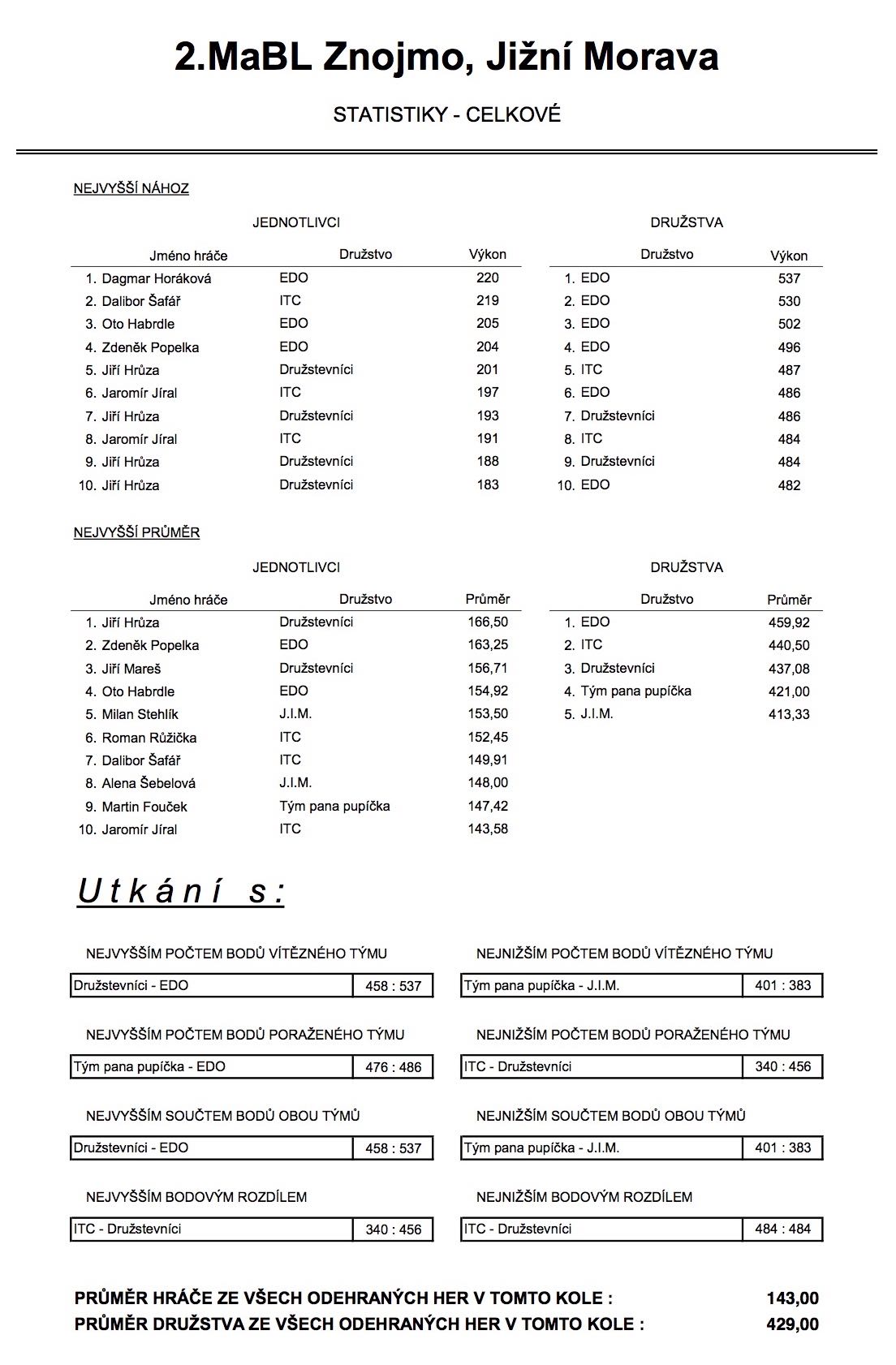 4.11.2014 odehrála družstva 2. Městské amatérské bowlingové ligy třetí kolo a má odehráno polovinu počtu kol podzimní části. Výsledky již začínají naznačovat jak skončí podzimní část. Jak ale známe z předchozích ročníků, konečný výsledek může dopadnout úplně jinak.