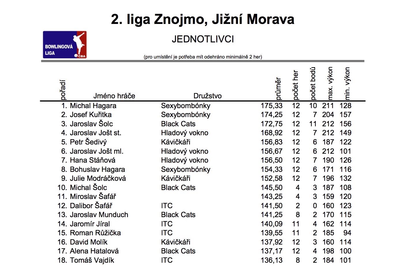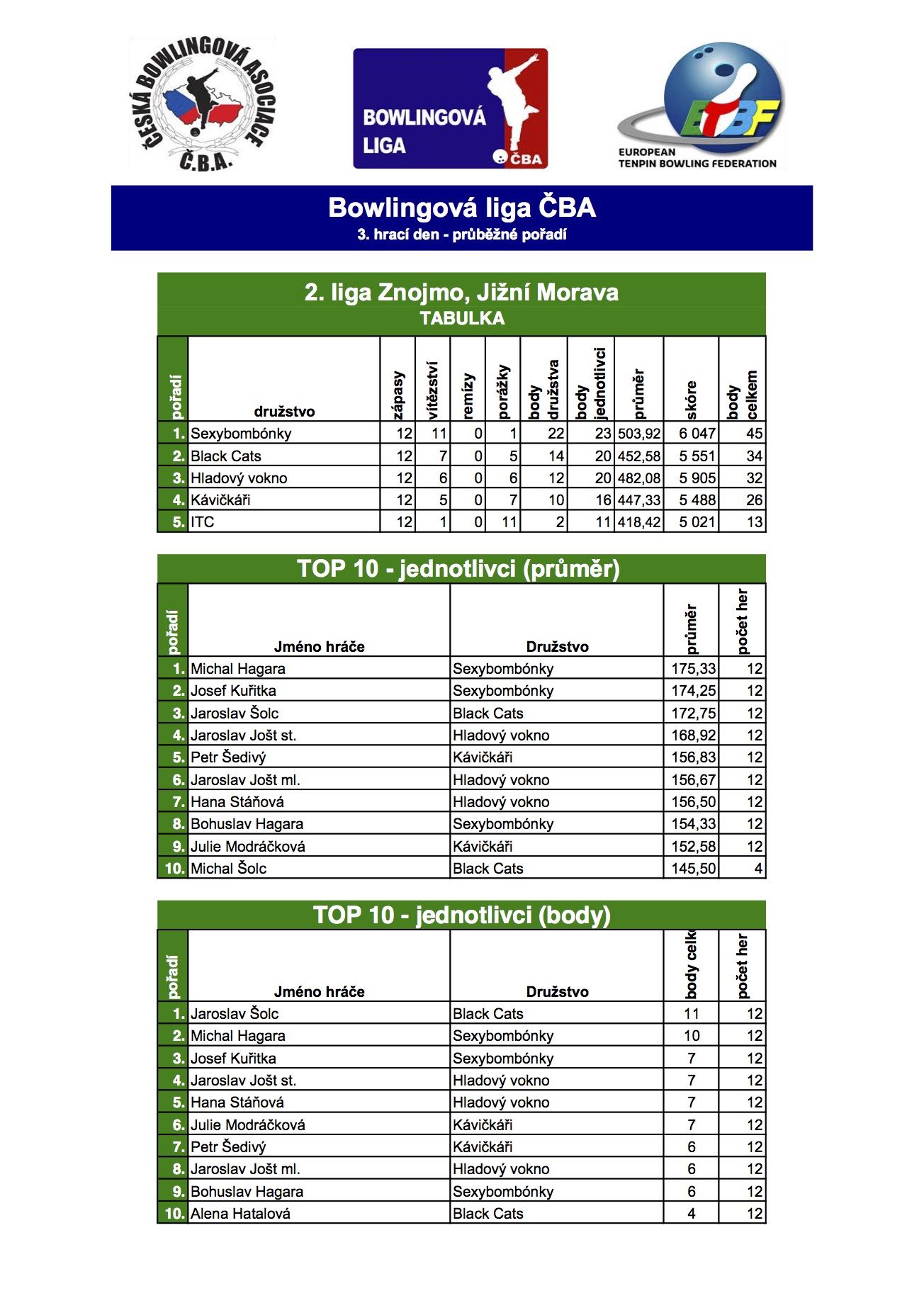 Statisktika po třech kolech: