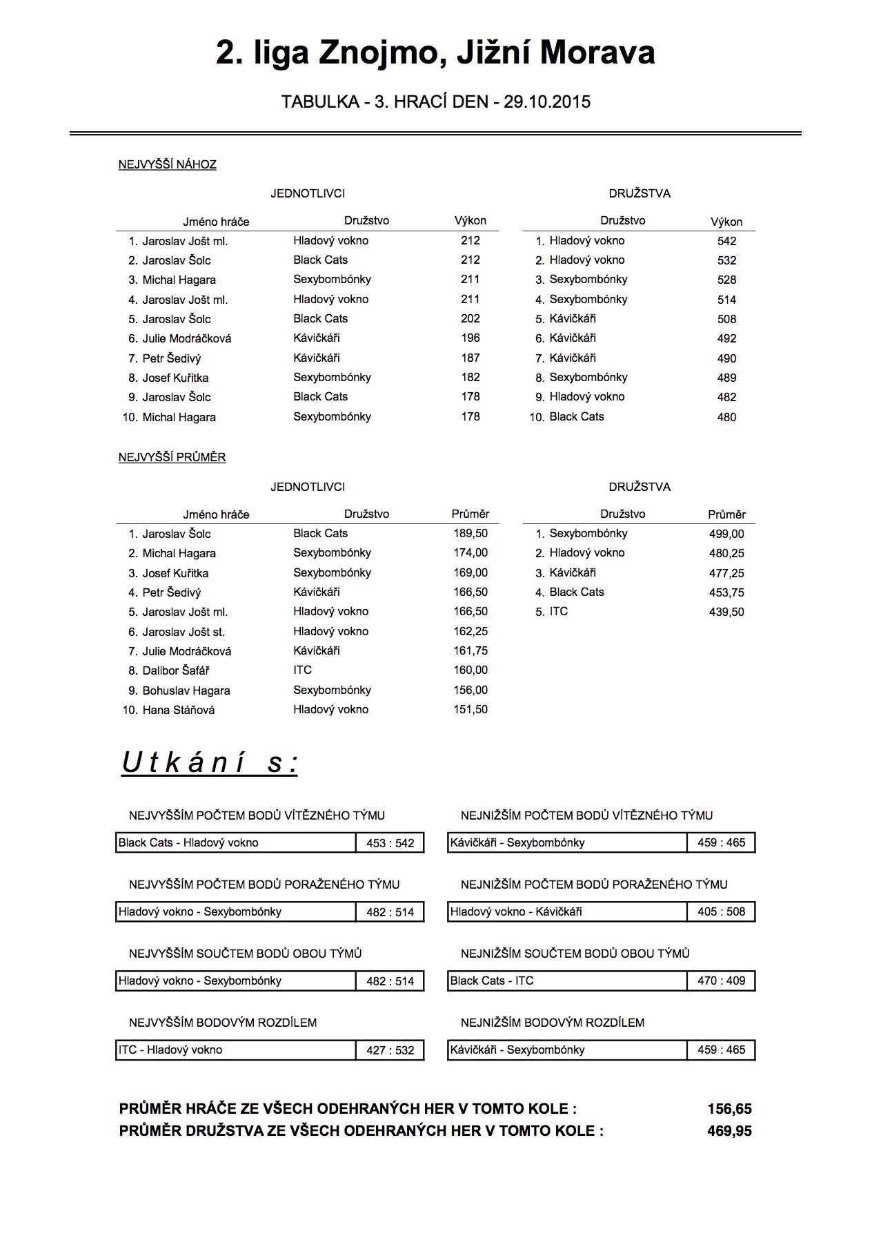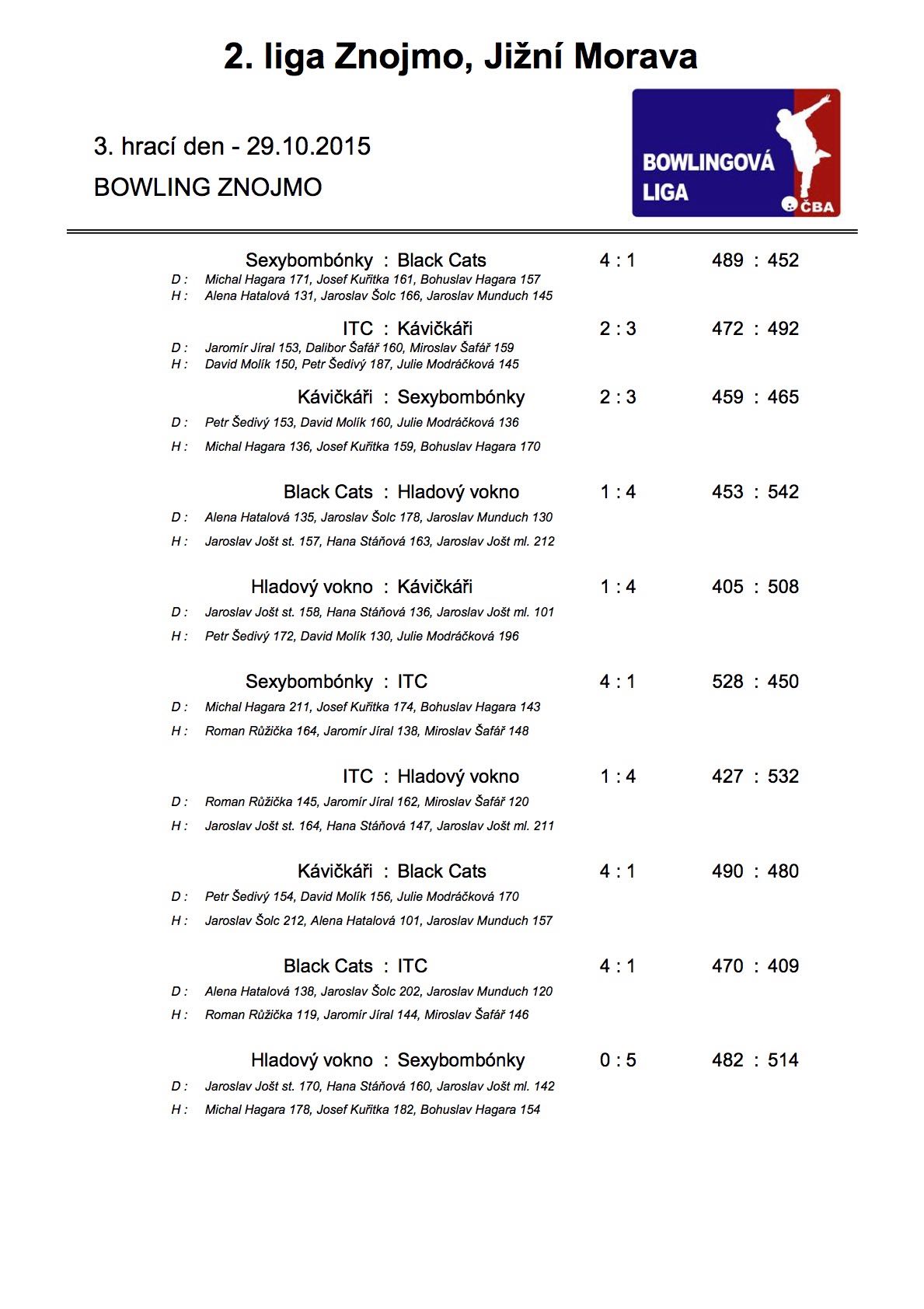 29.10.2015 odehrála družstva 2. ligy již třetí kolo a přehoupla se tak do druhé poloviny podzimní části. Výsledky jako vždy ...