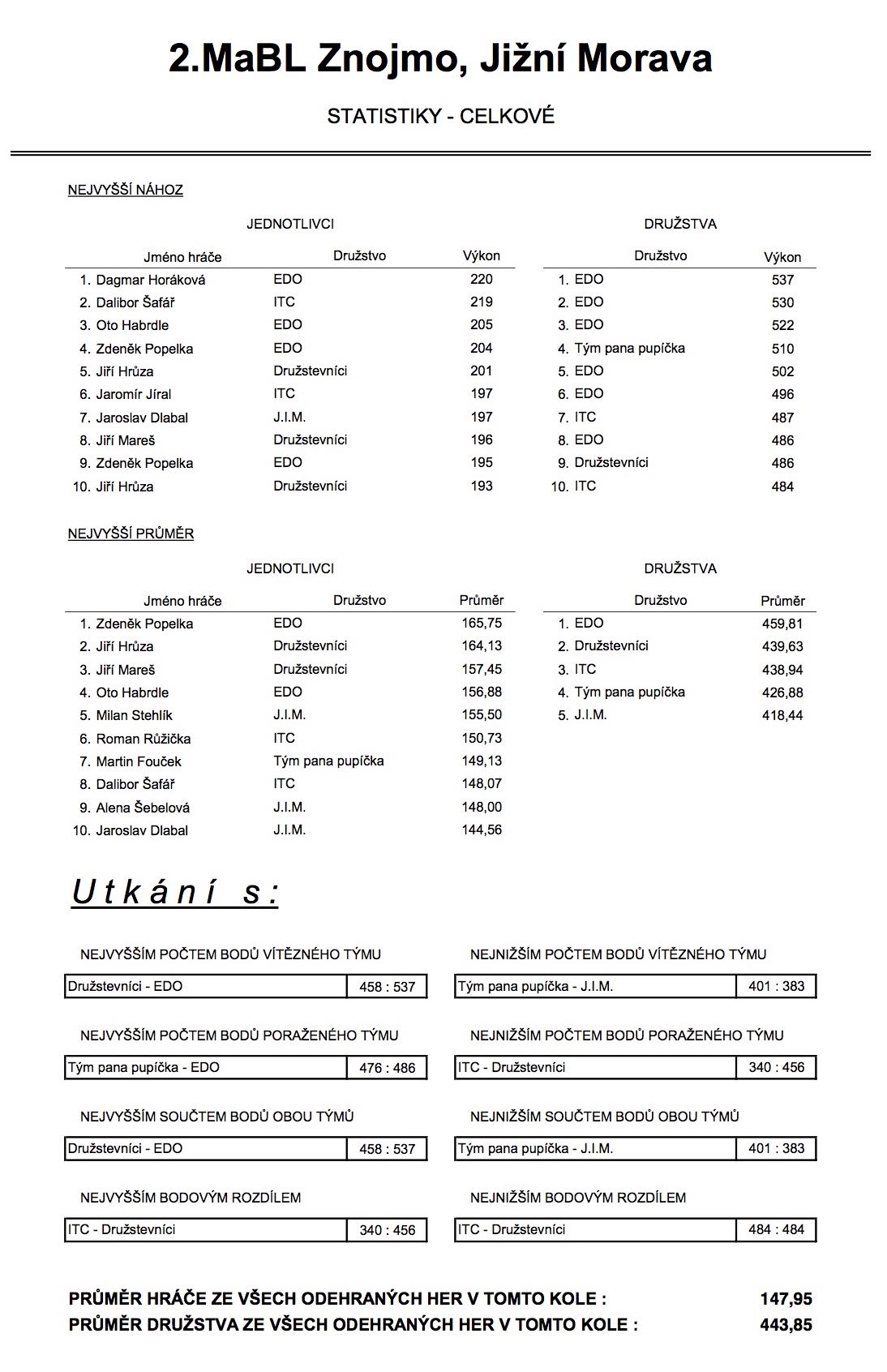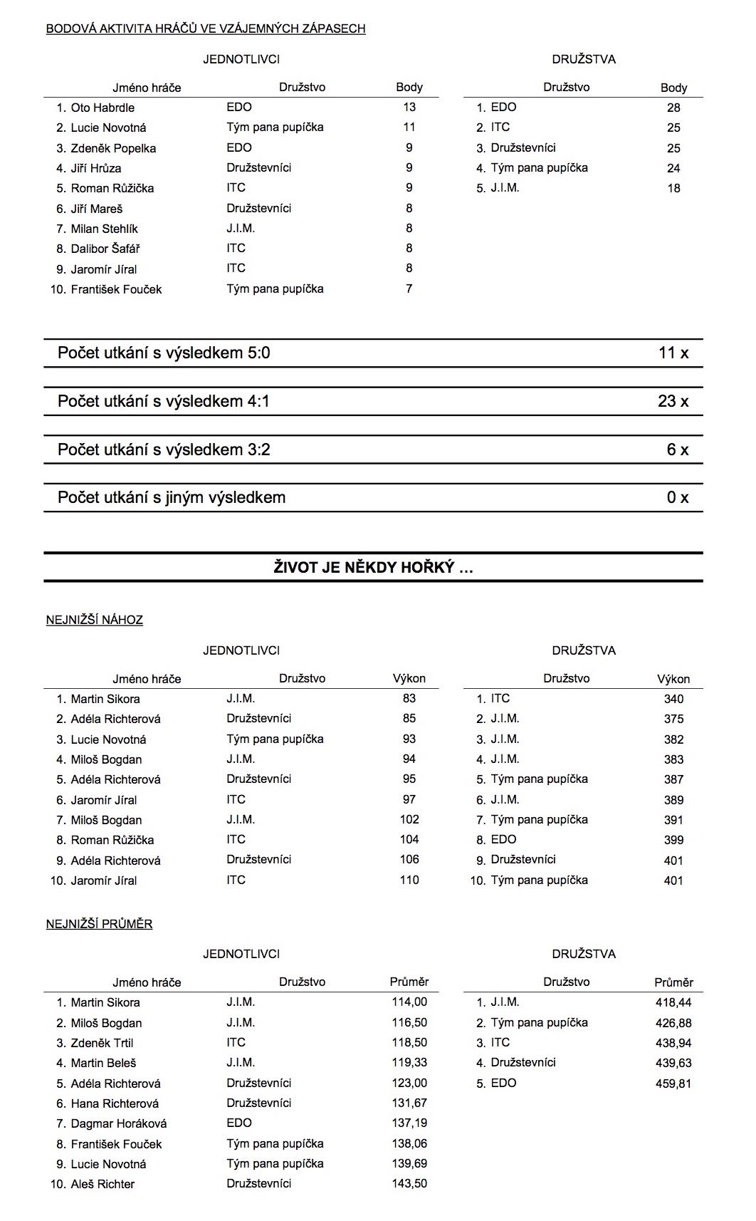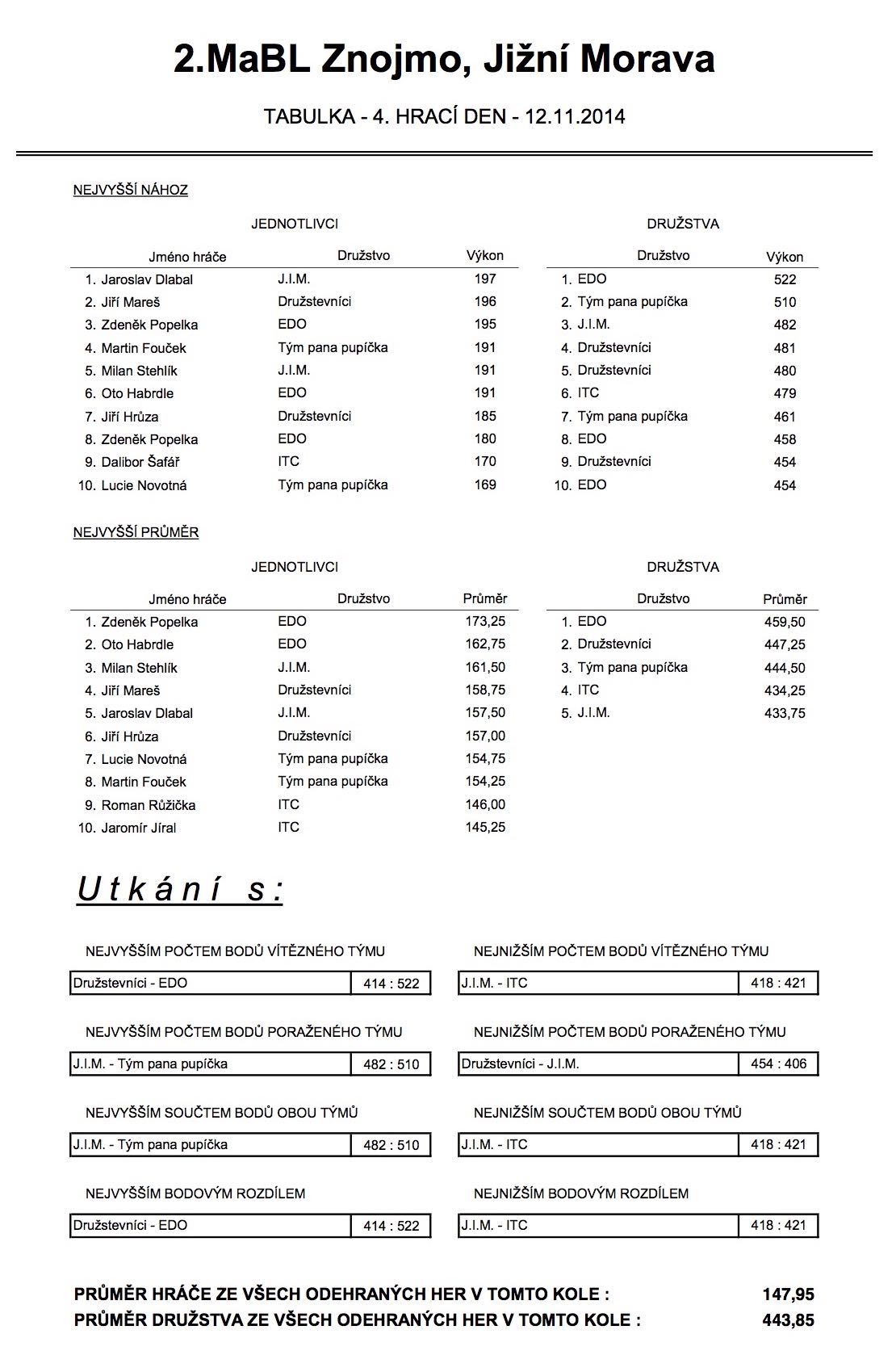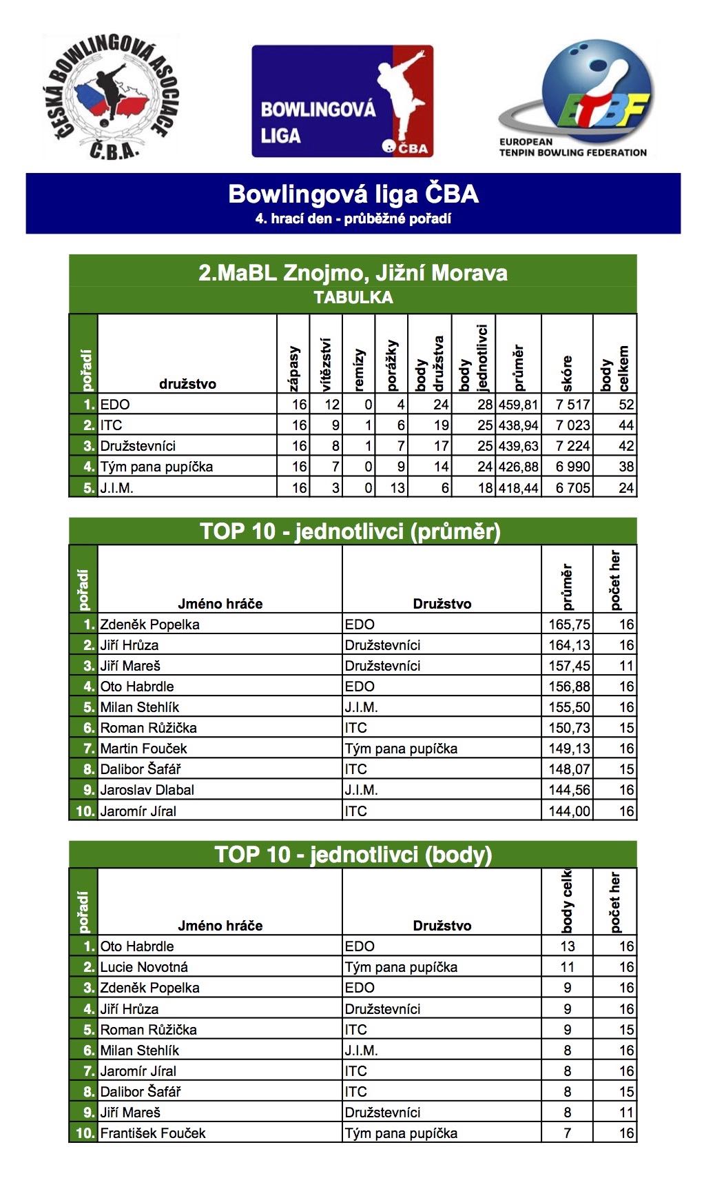 Družstva 2. Městské amaterské bowlingové ligy již mají za sebou 4. kolo. Výsledky jako vždy příkládáme.