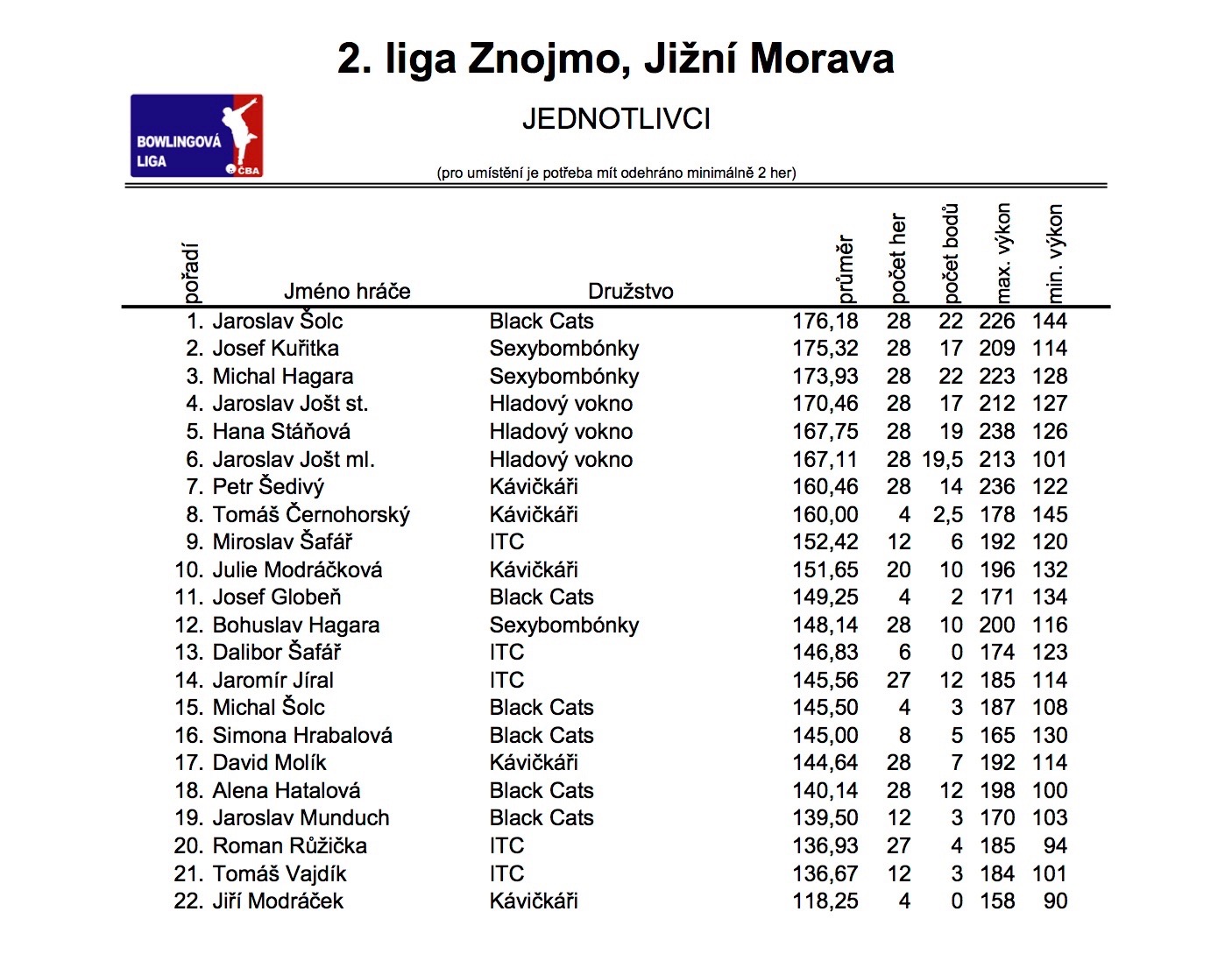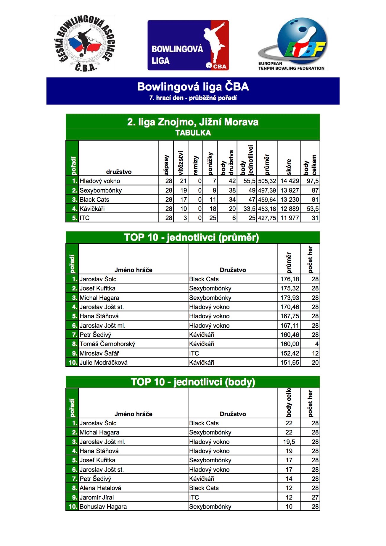 A celková statistika po sedmém kole: