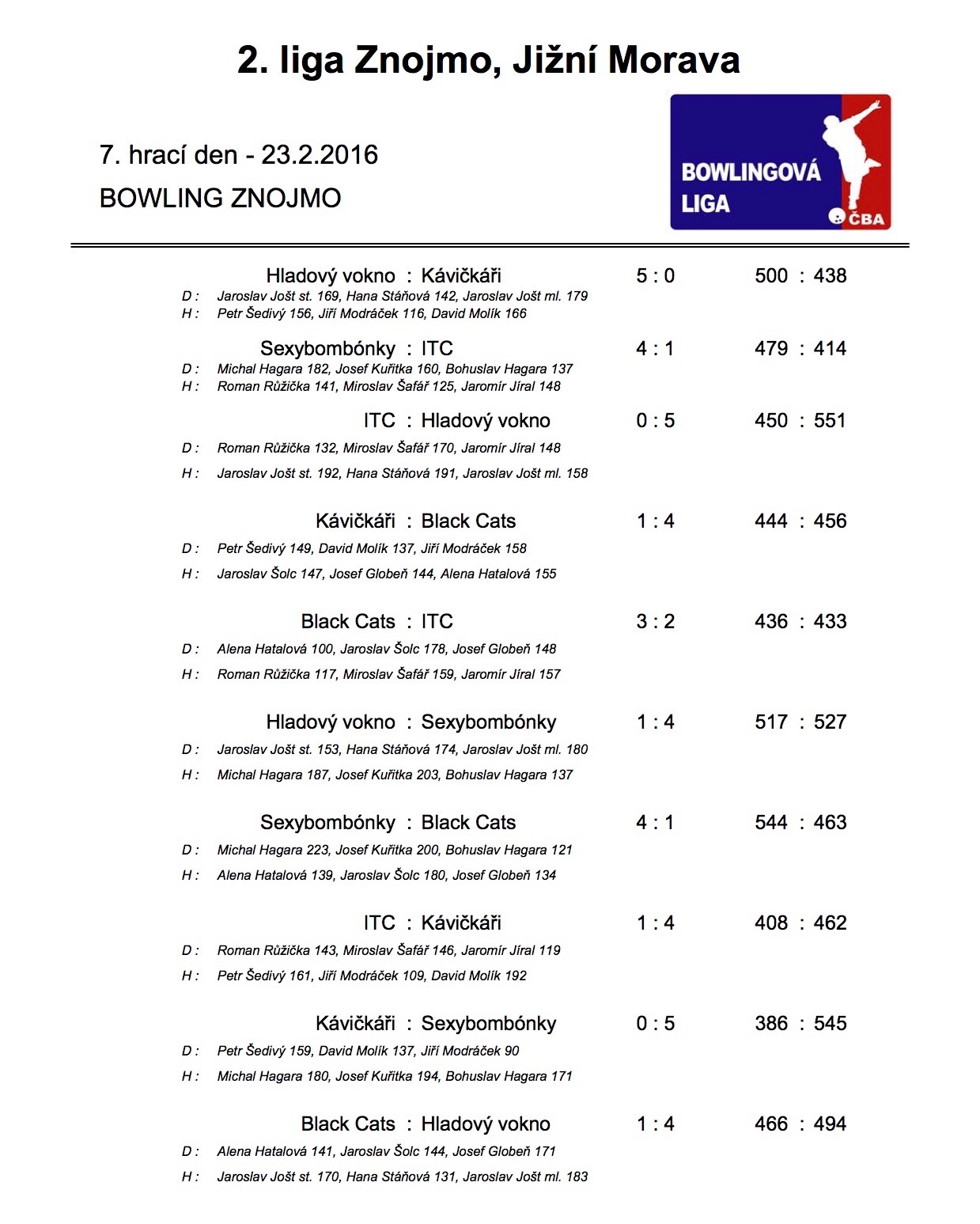 23.2.2016 odehrála družstva druhé ligy první kolo jarní části ročníku 2015/2016. Výsledky opět naleznete dále.