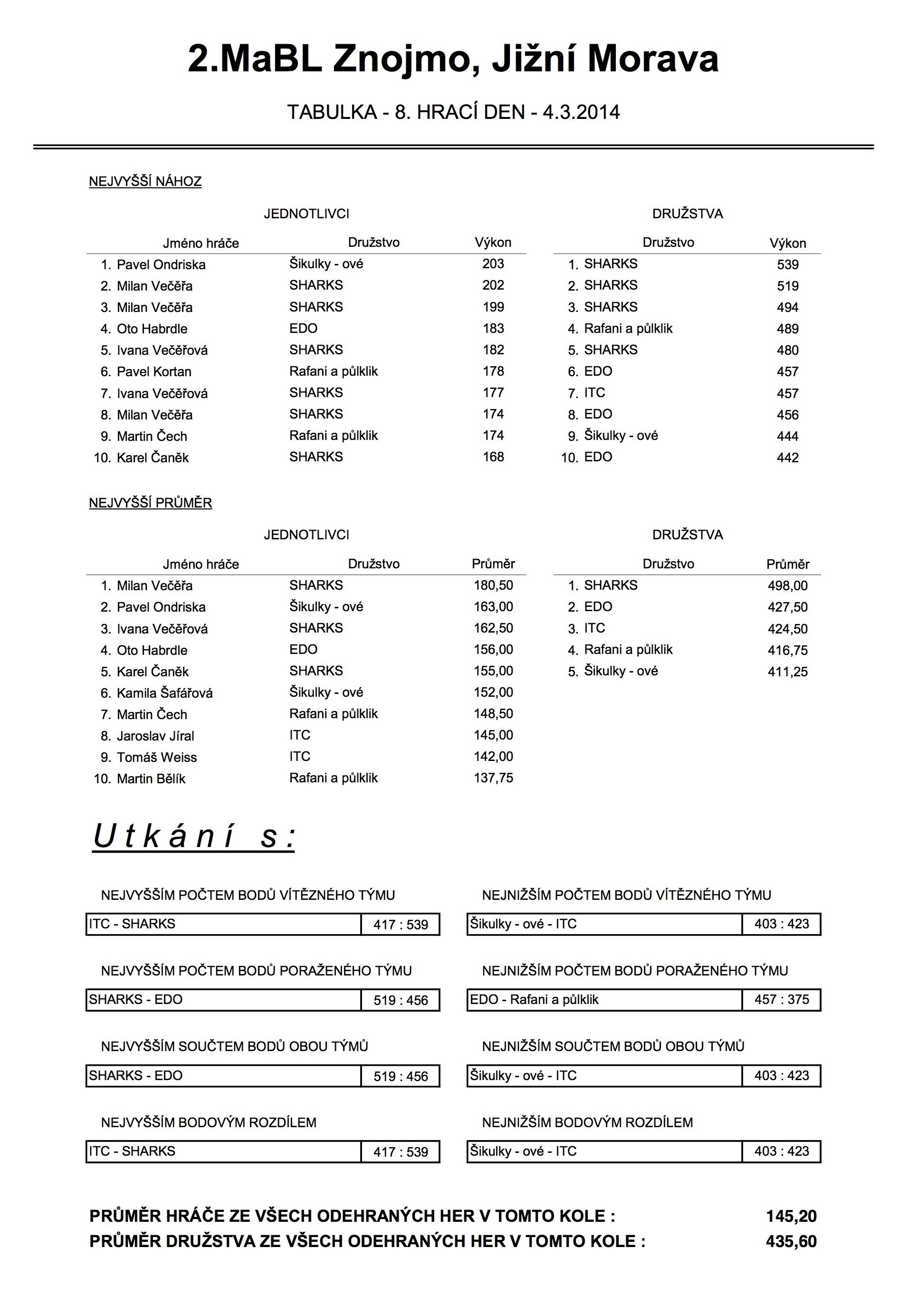 2. MABL - 8. kolo ročníku 2013/2014