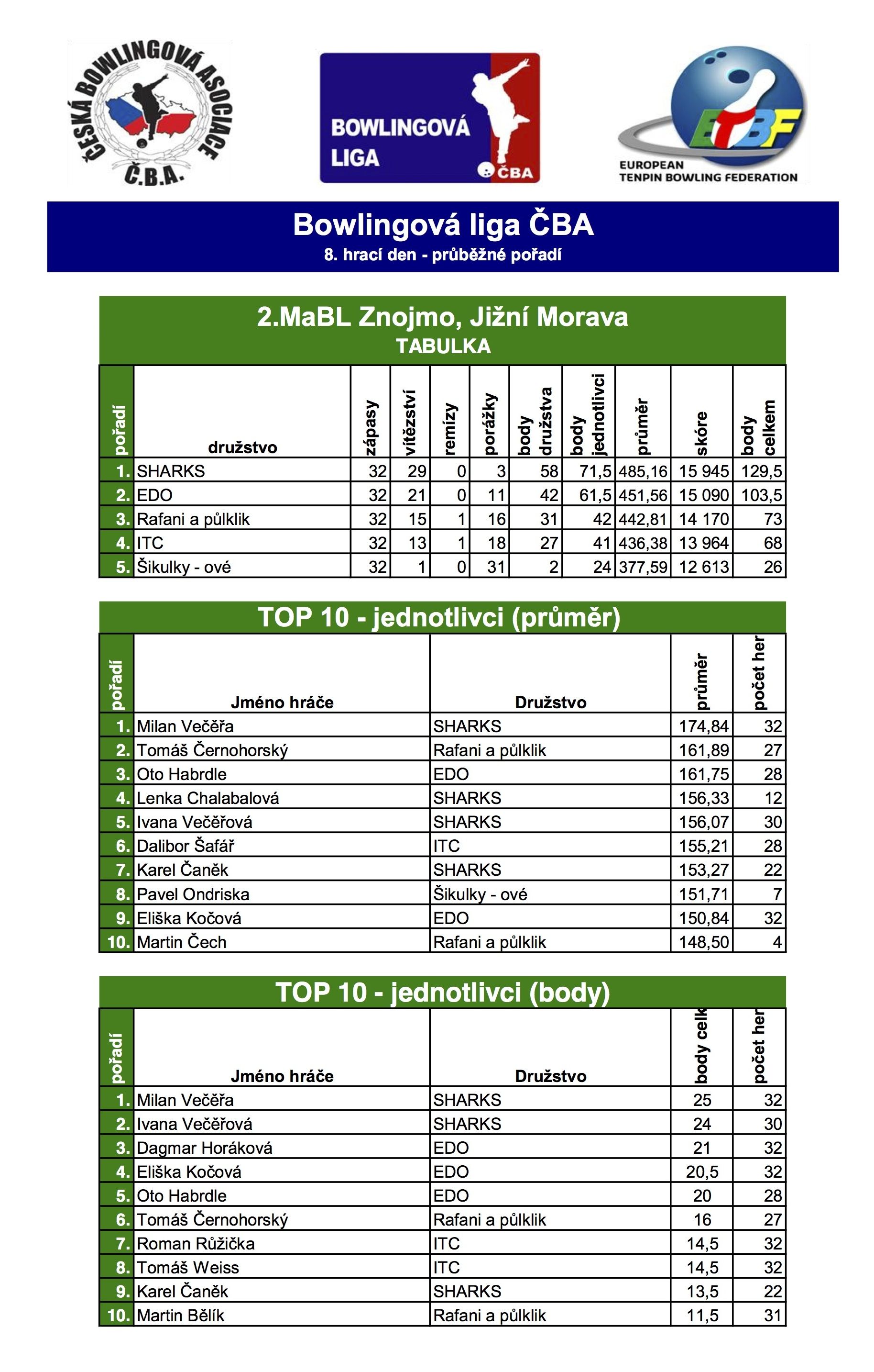 A na závěr celková statistika po 8. kole. ![]()