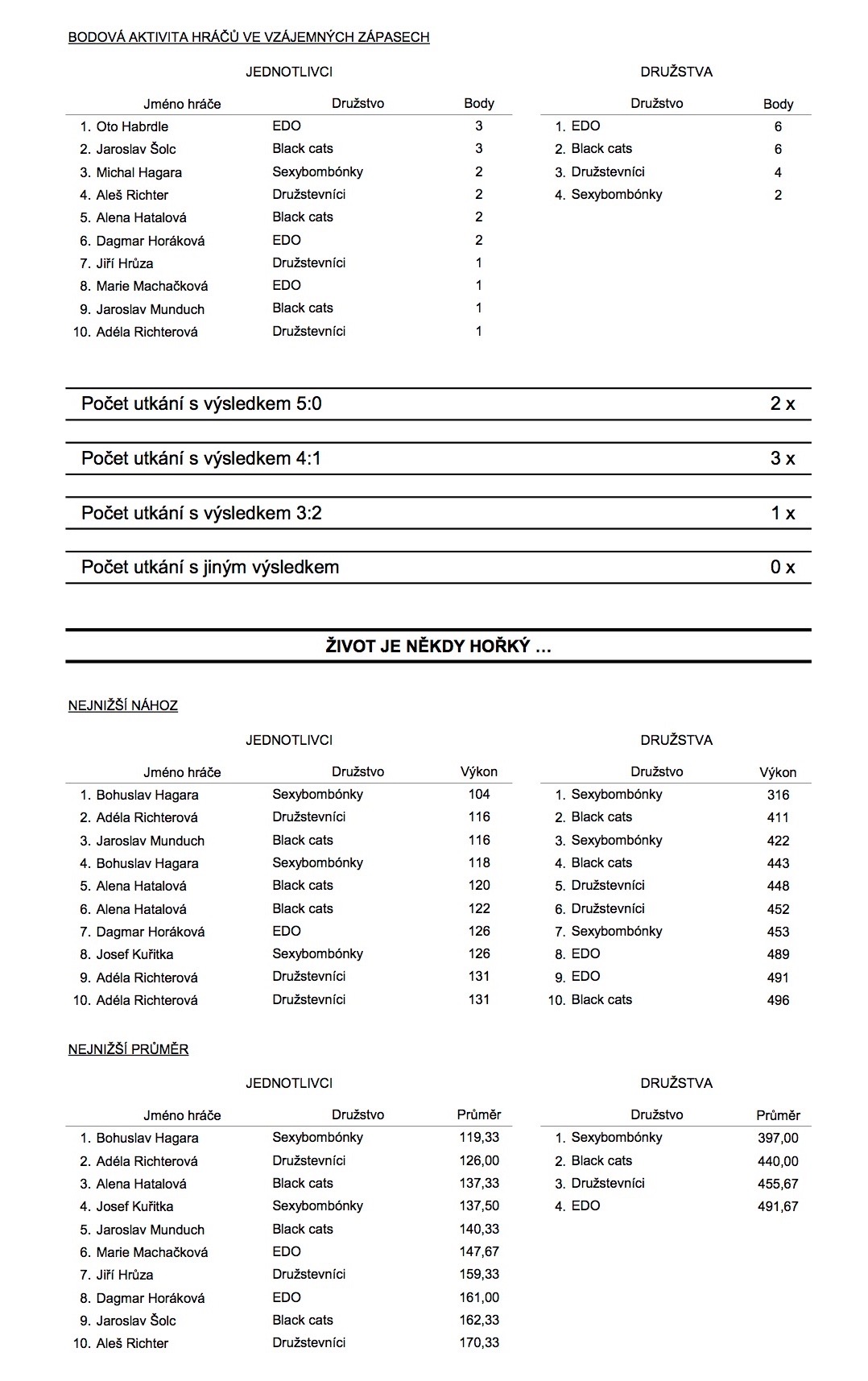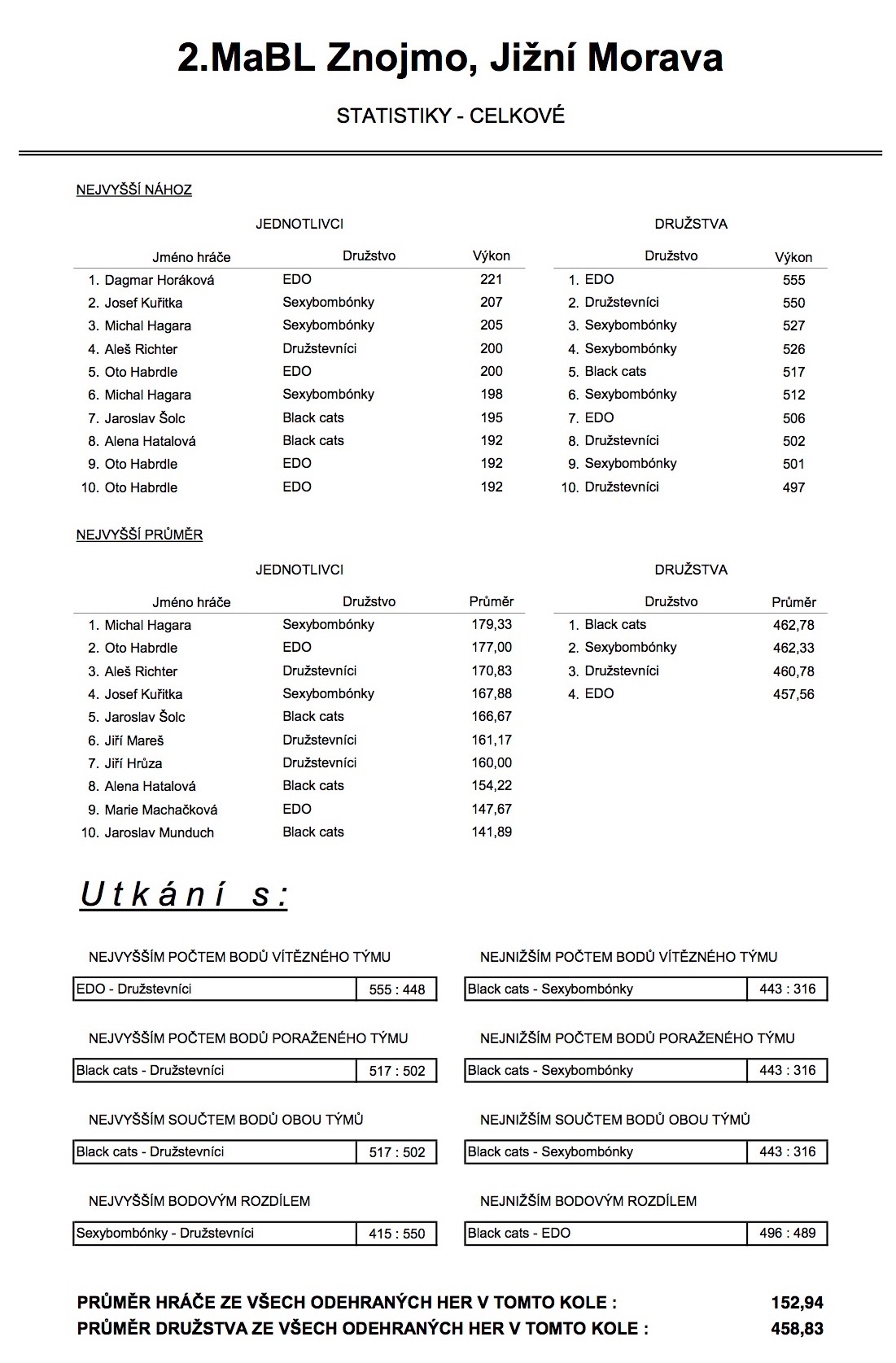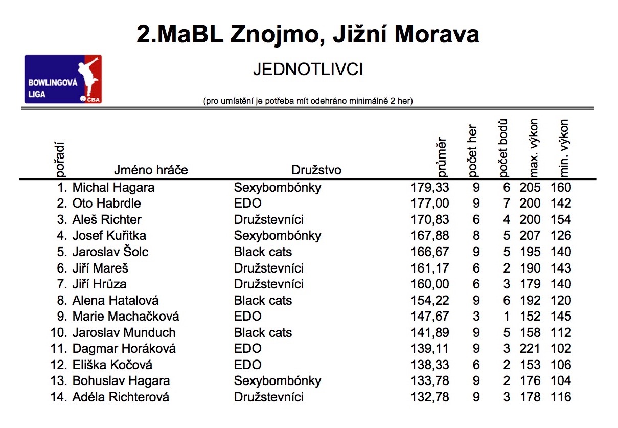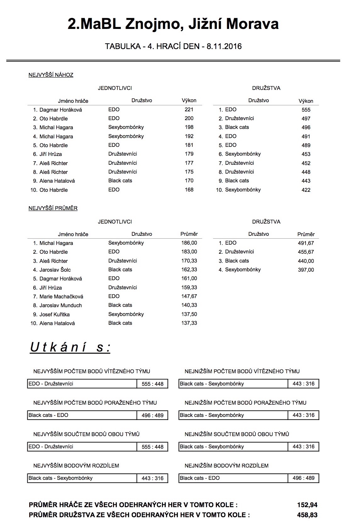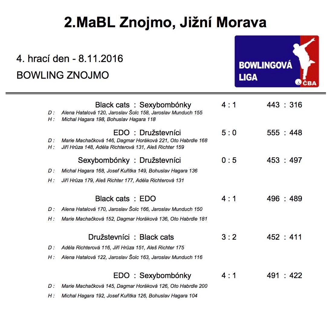 V úterý 8.11.2016 odehrála družstva 2.Městské amatérské bowlingové ligy třetí kolo podzimní části ročníku 2016. Výsledky naleznete jako vždy v článku.