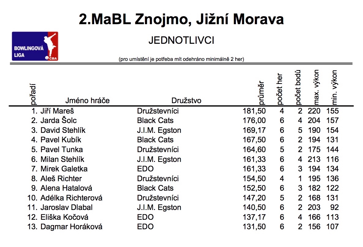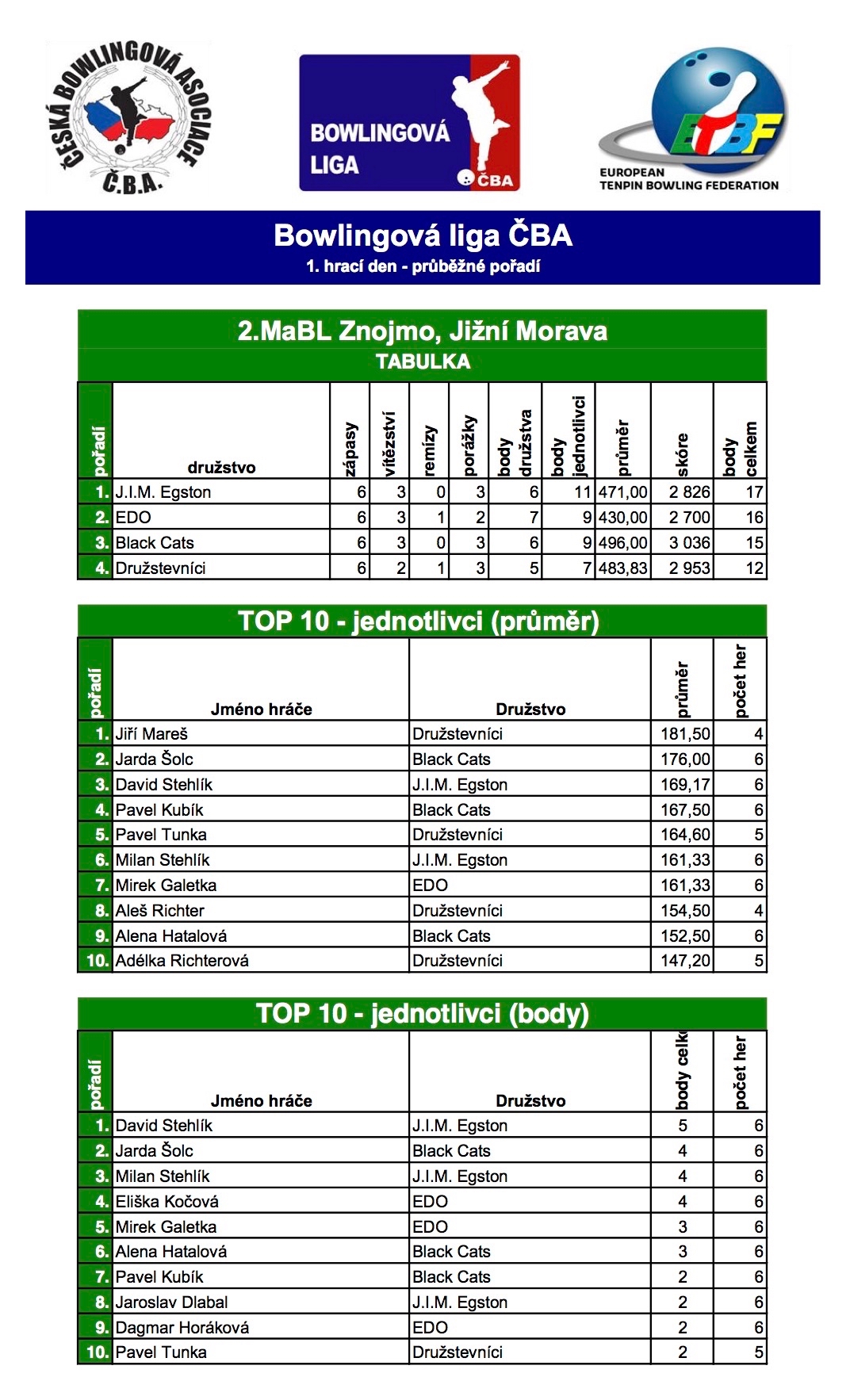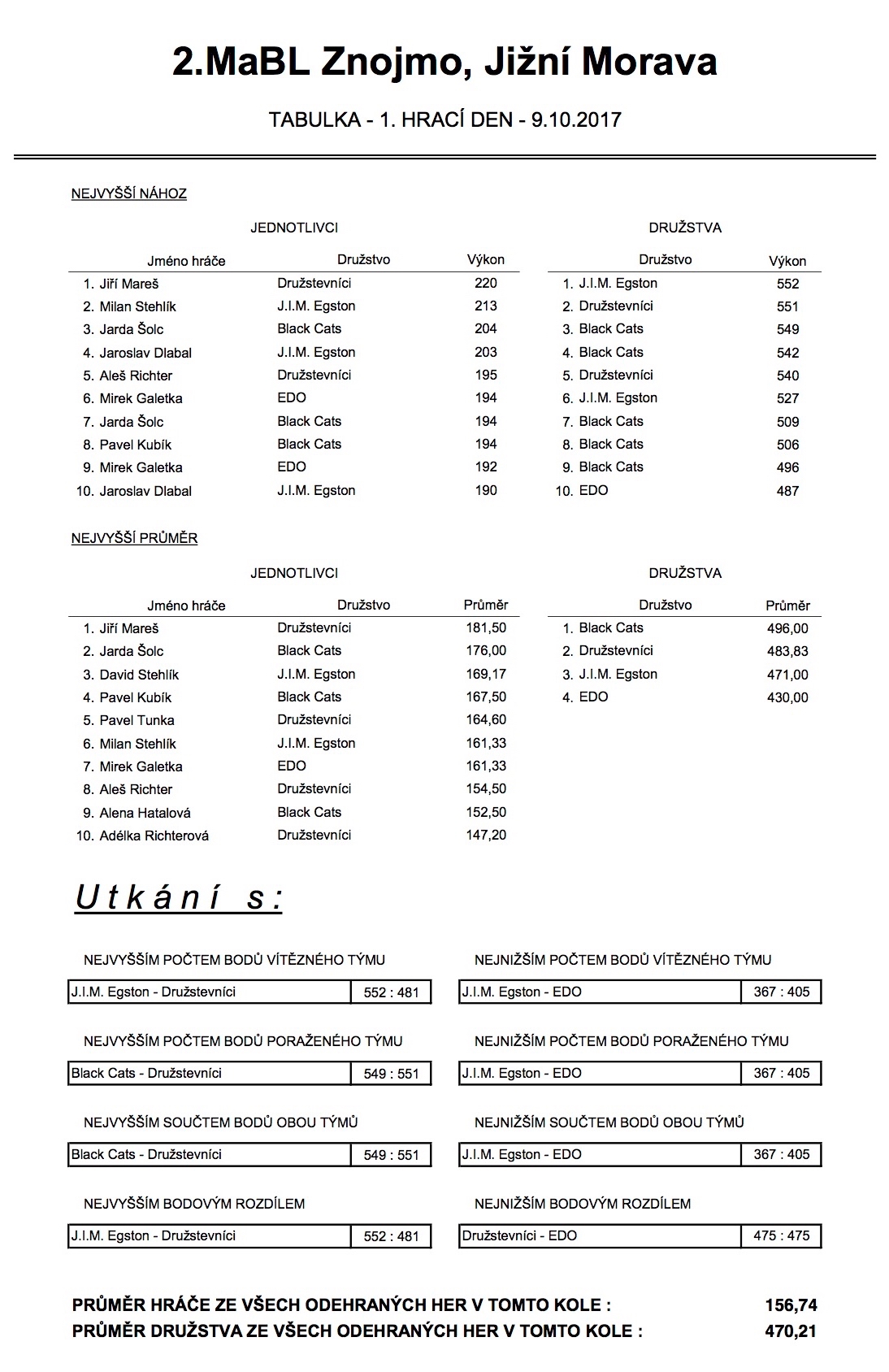 2. MABL podzim 2017 - 1. kolo