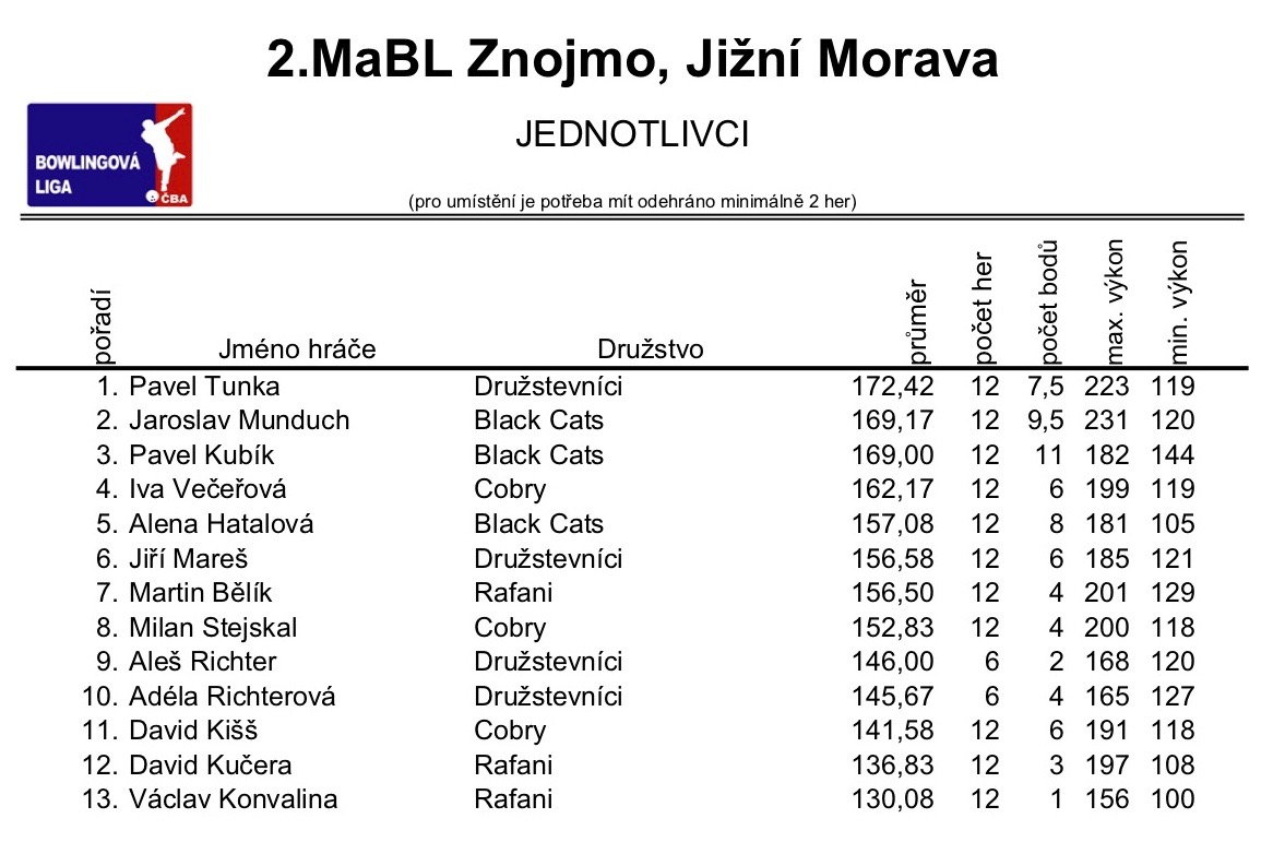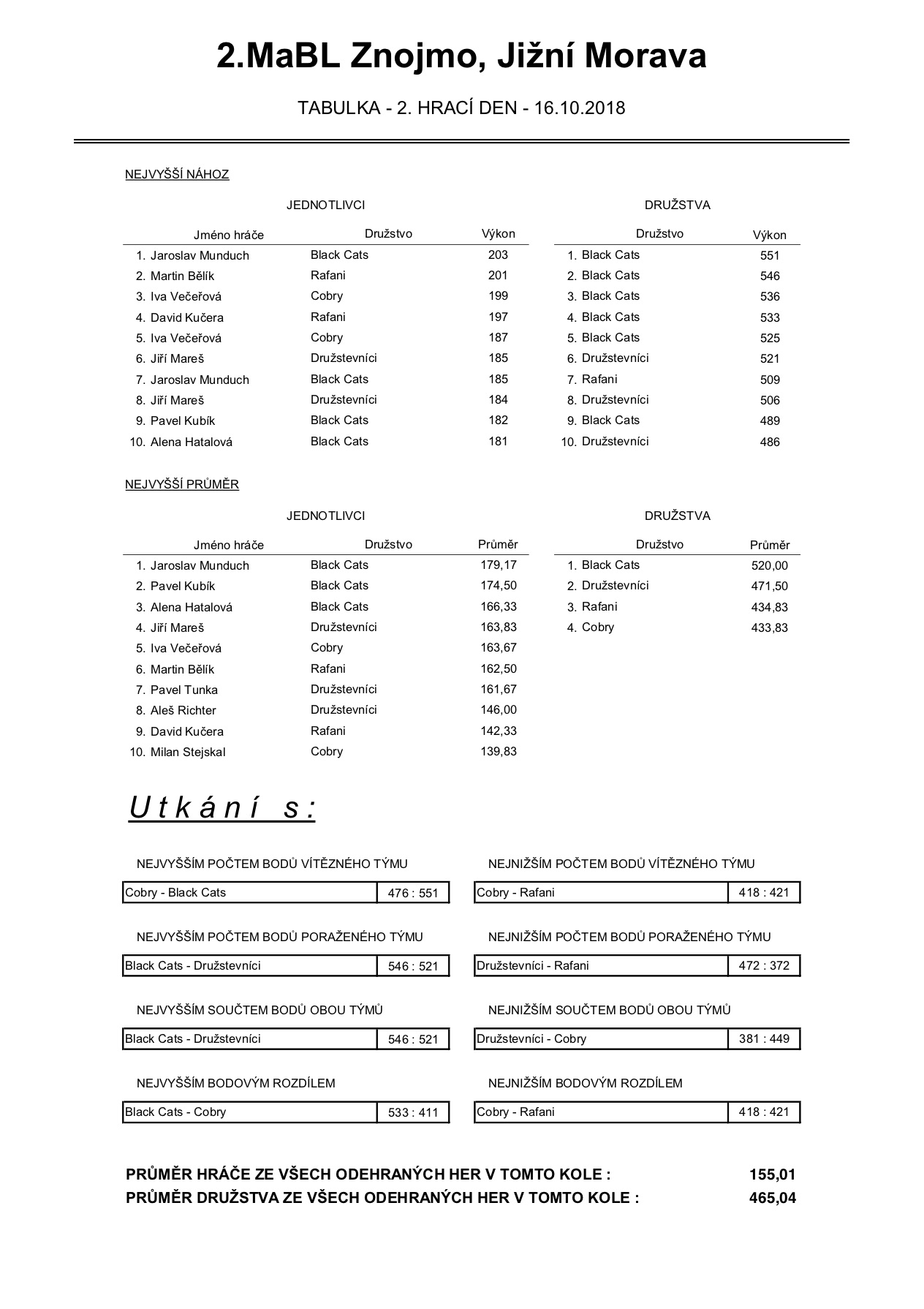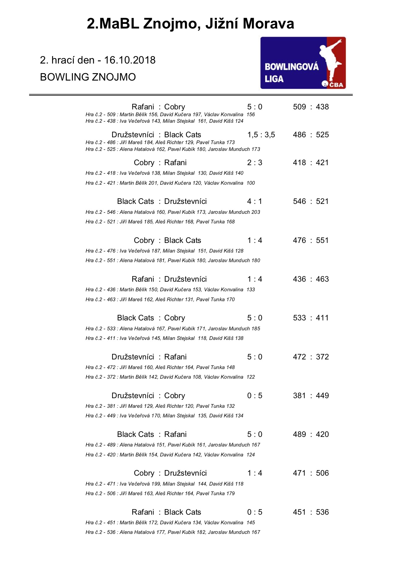 2. MABL podzim 2018 - 2. kolo