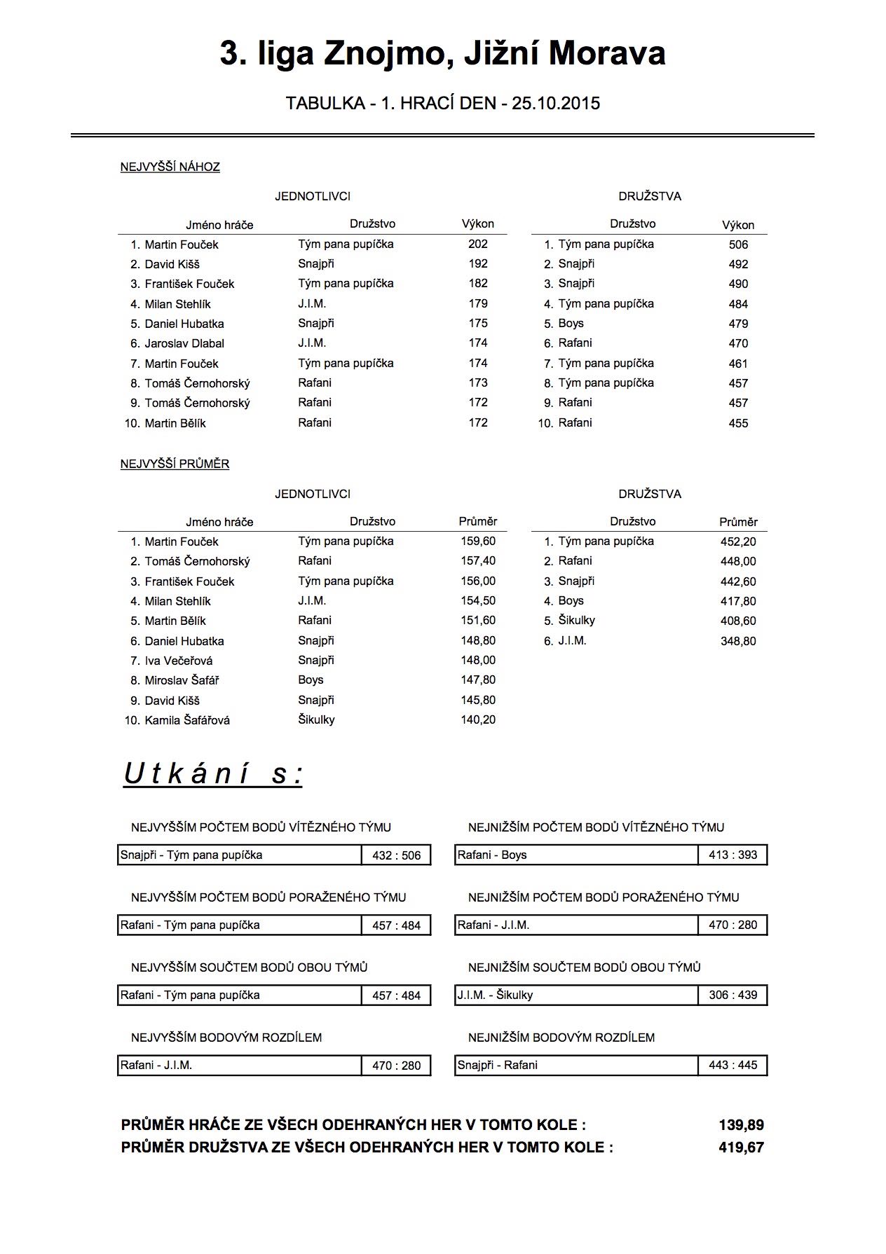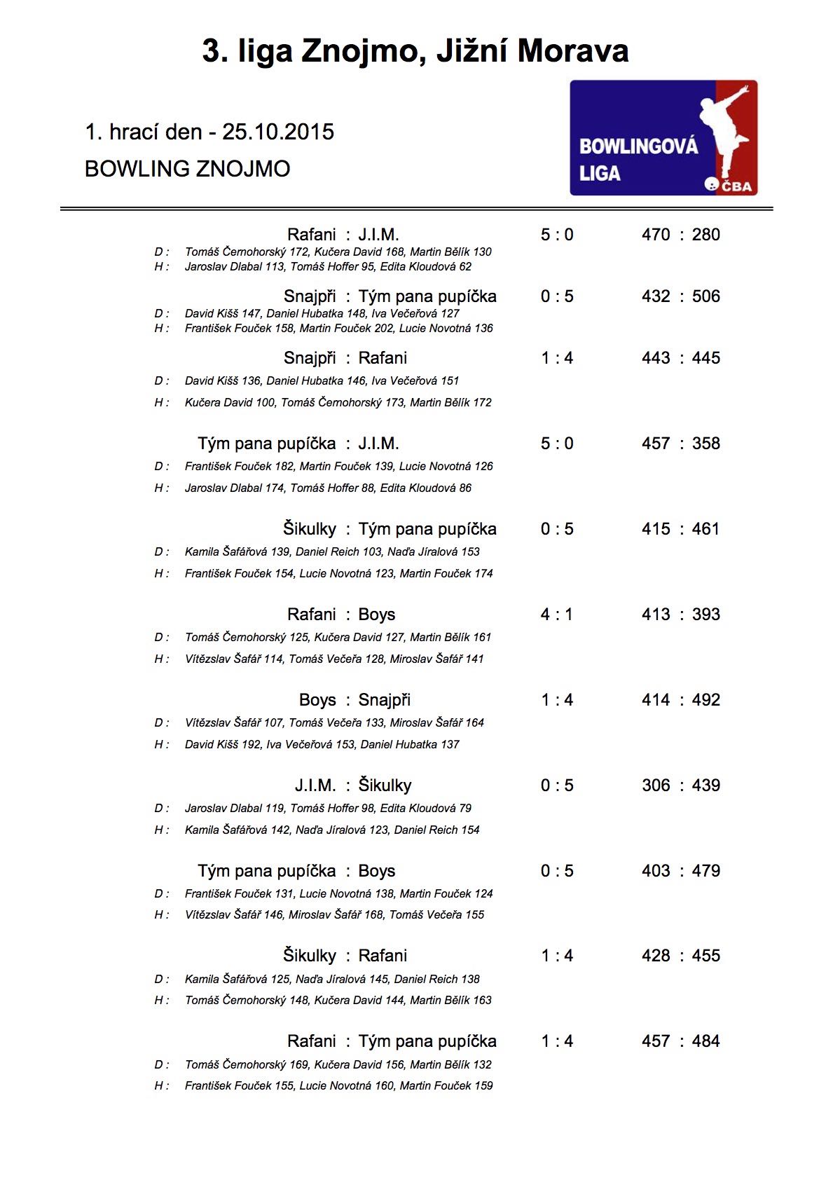 25.10.2015 s malým zpožděním, ale přece, zahájila i družstva 3. ligy nový ročník 2015/2016. Výsledky jako vždy naleznete dále.