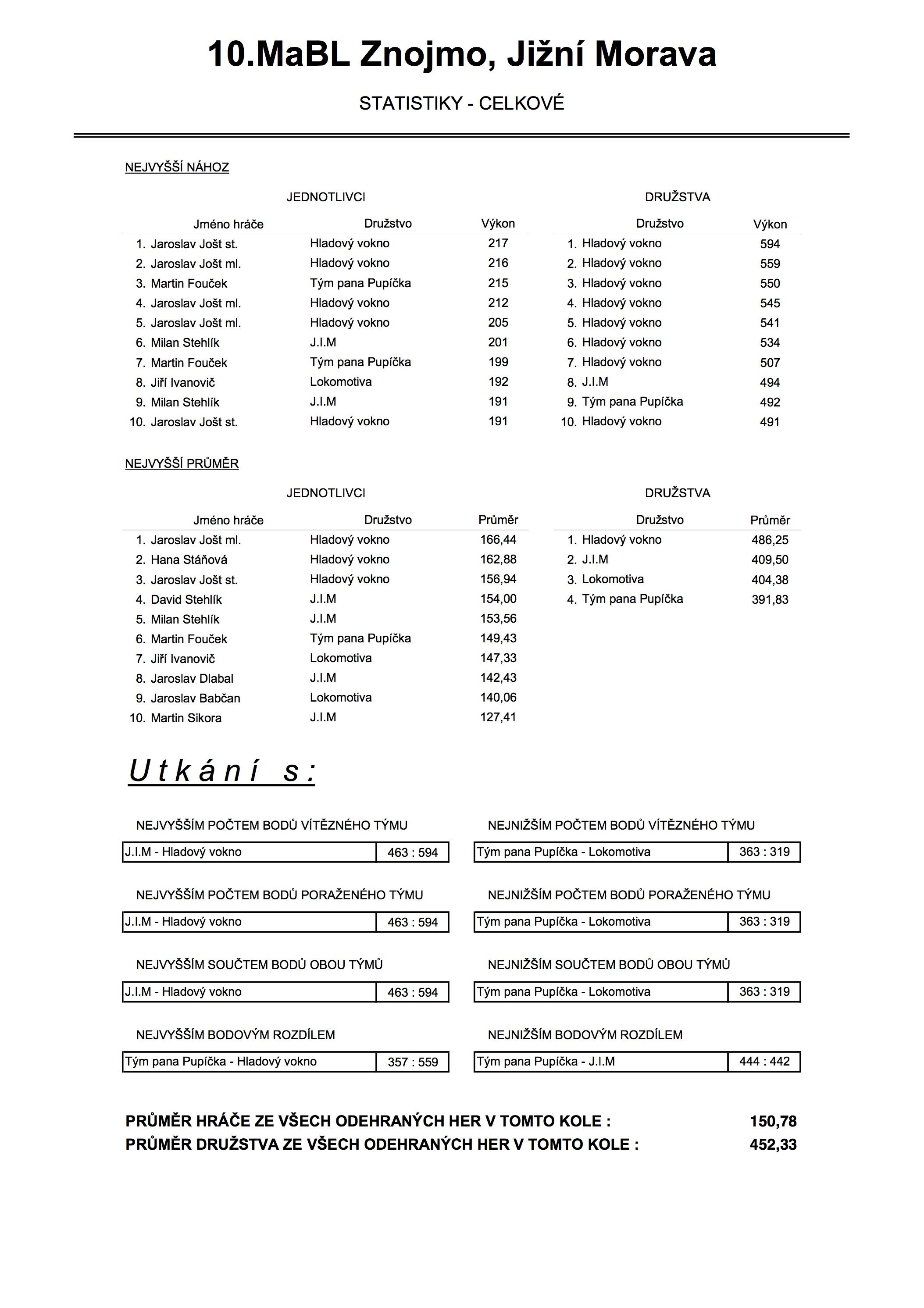 A na závěr statistika po 10. kole:
