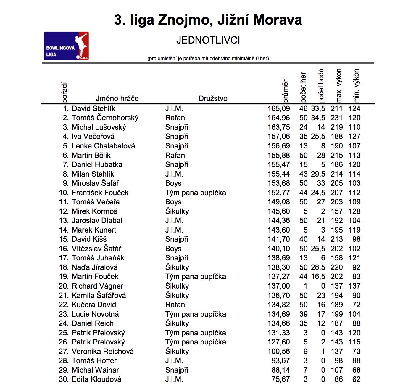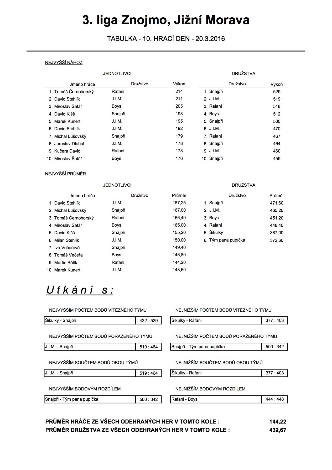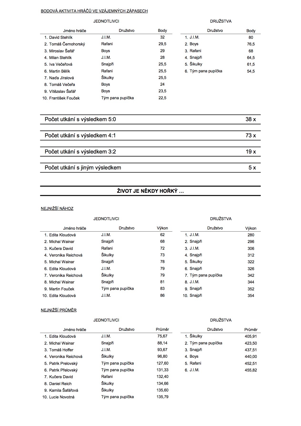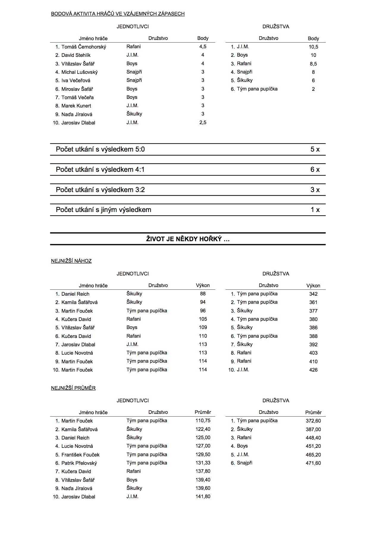A na závěr statistika po 10. kolech. :)