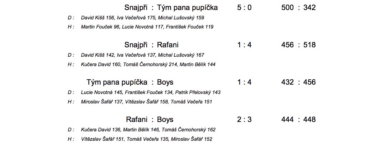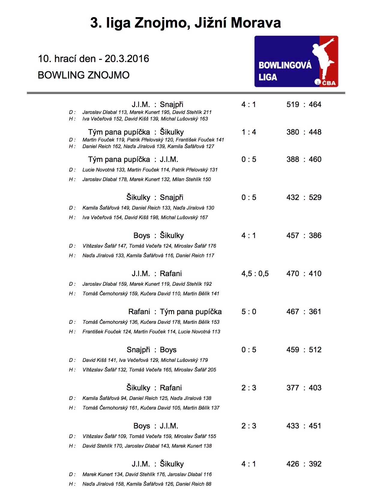V neděli 3.dubna odehrála družstva 3. Městské amatérské bowlingové ligy desáté kolo. Výsledky naleznet v článku.