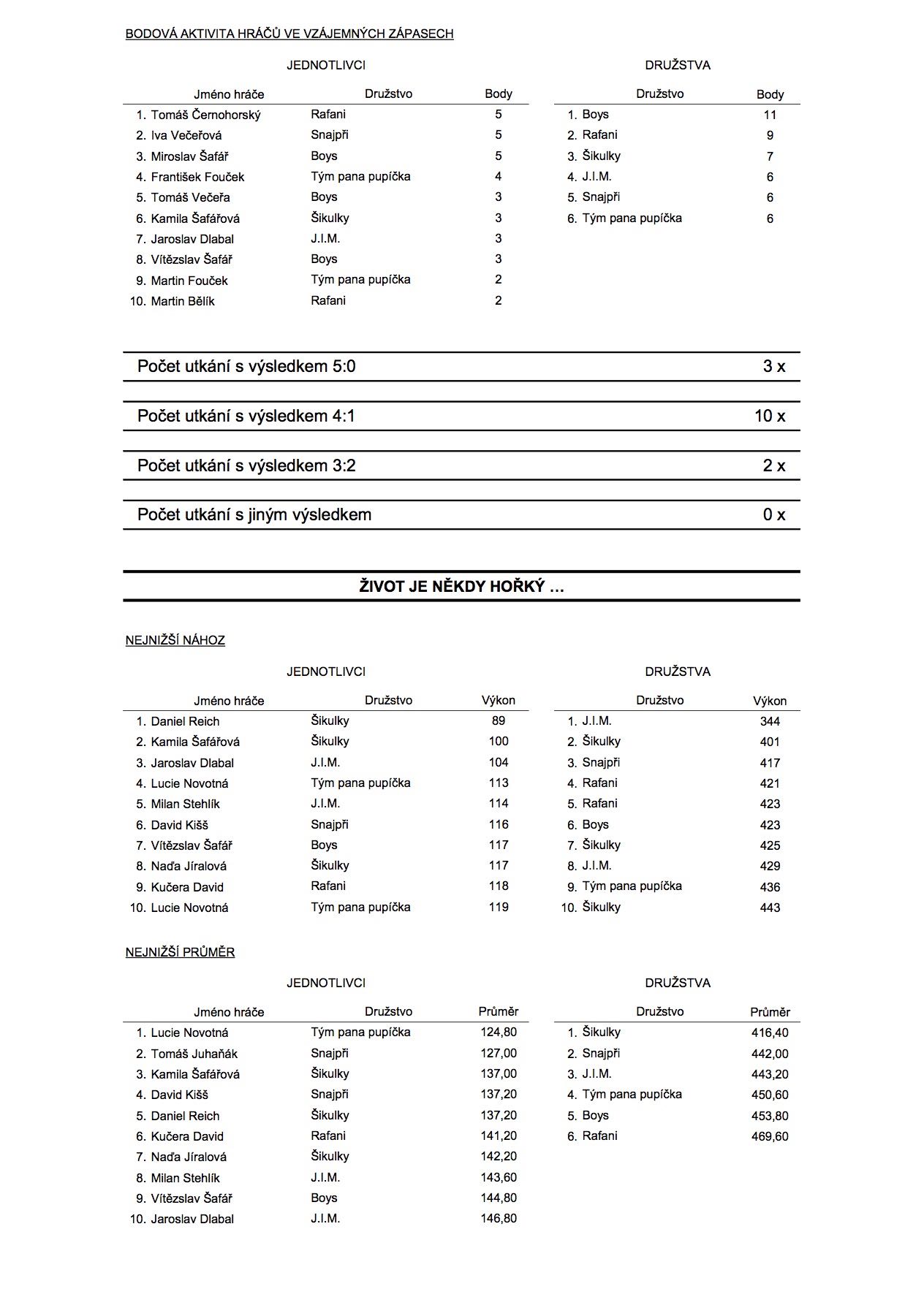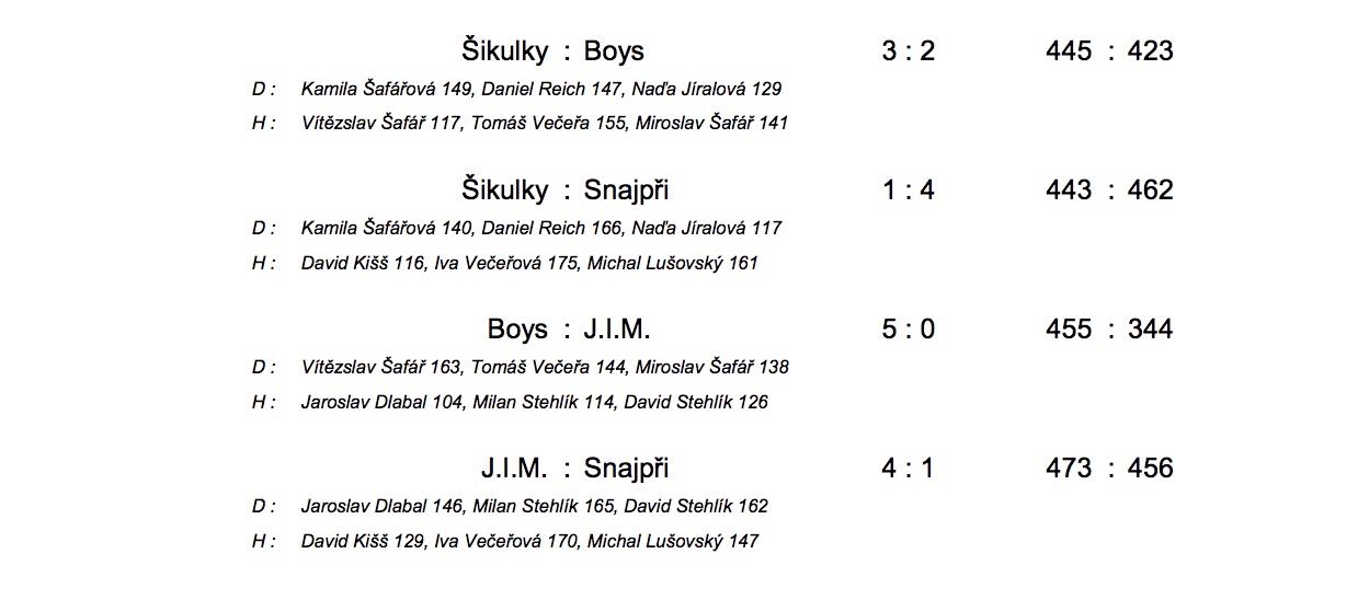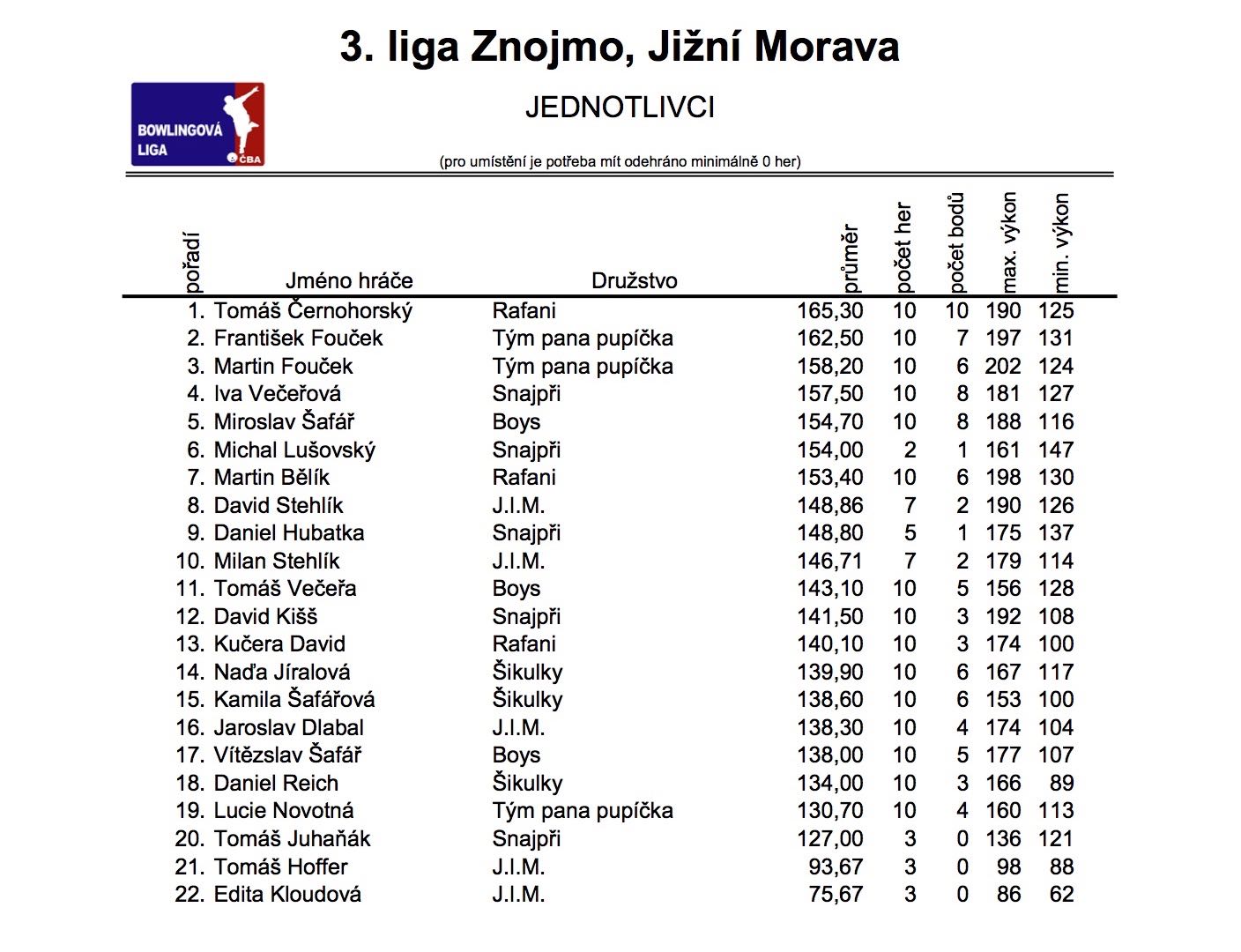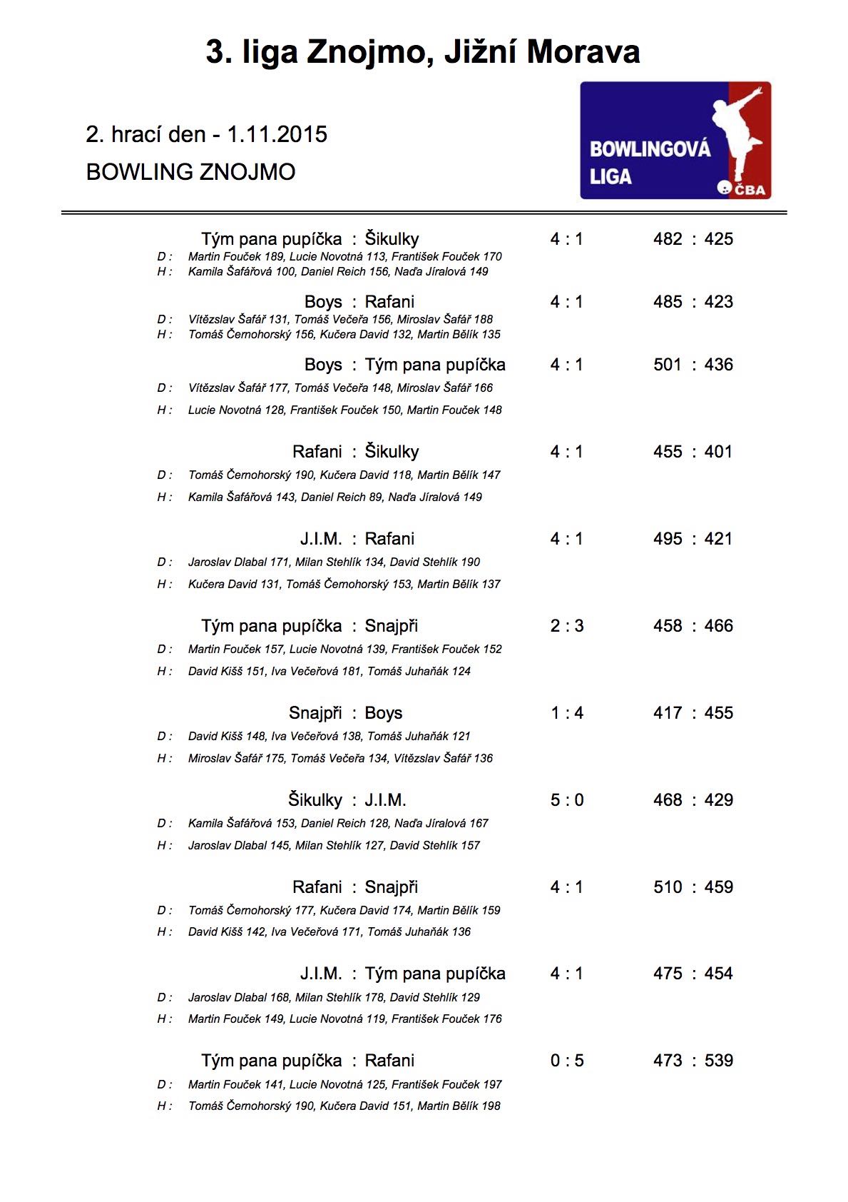 V neděli 1.11.2015 odehrála družstva třetí ligy další kolo Městské amatérské bowlingové ligy 2015/2016. Výsledky naleznete dále.