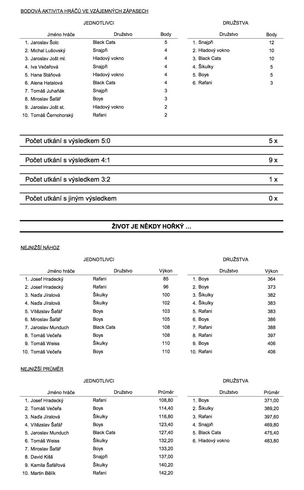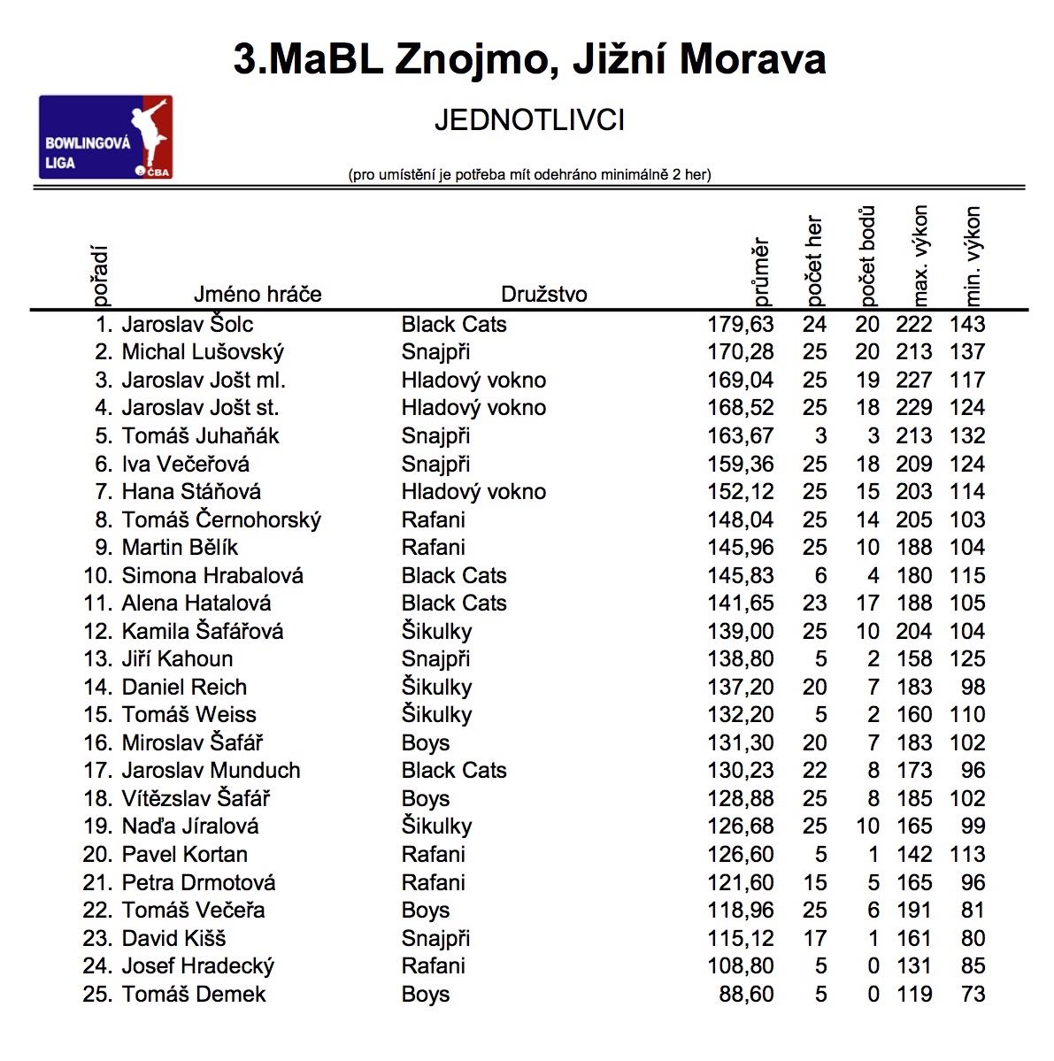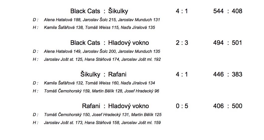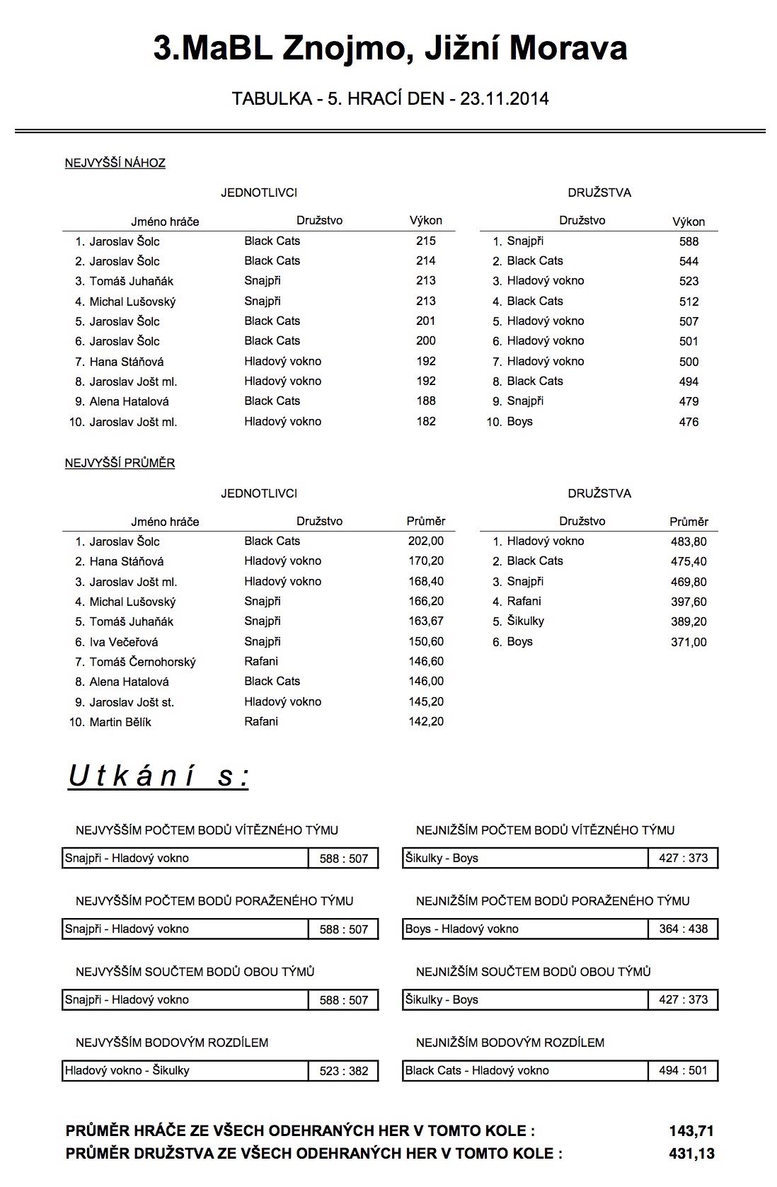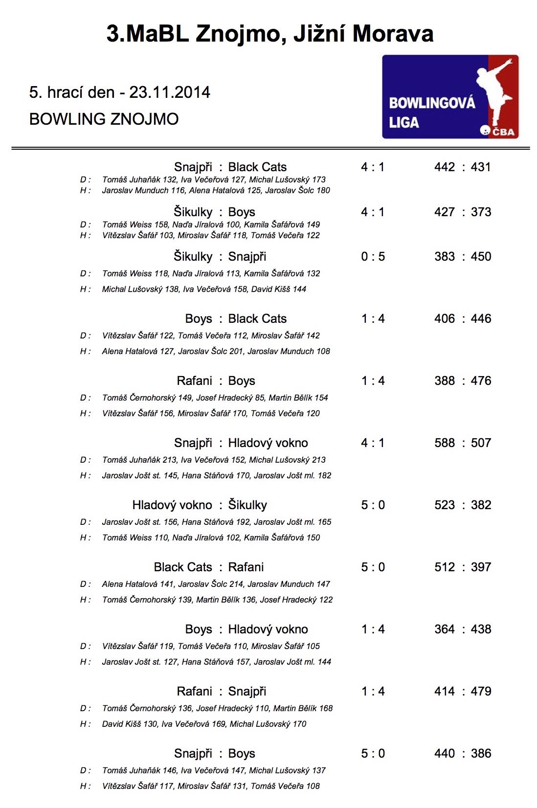 V neděli 23.11.2014 odehrála družstva 3. Městské amatérské bowlingové ligy již páté, předposlední kolo.
