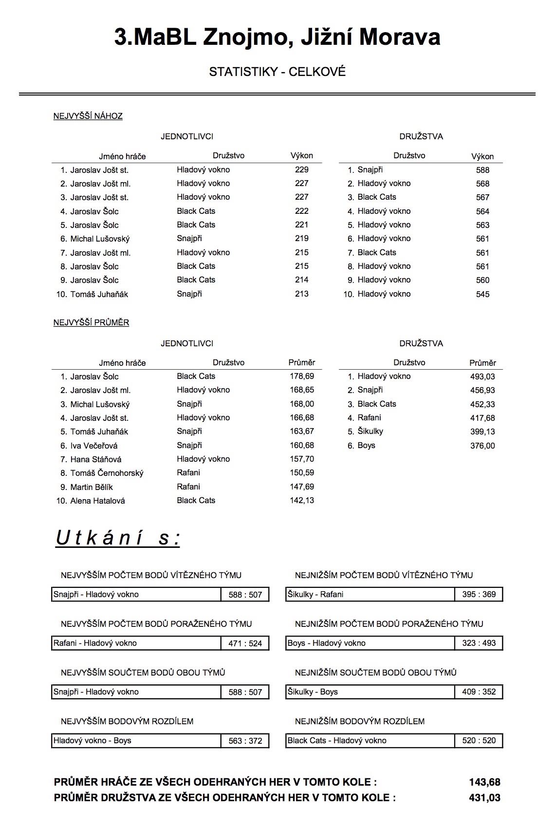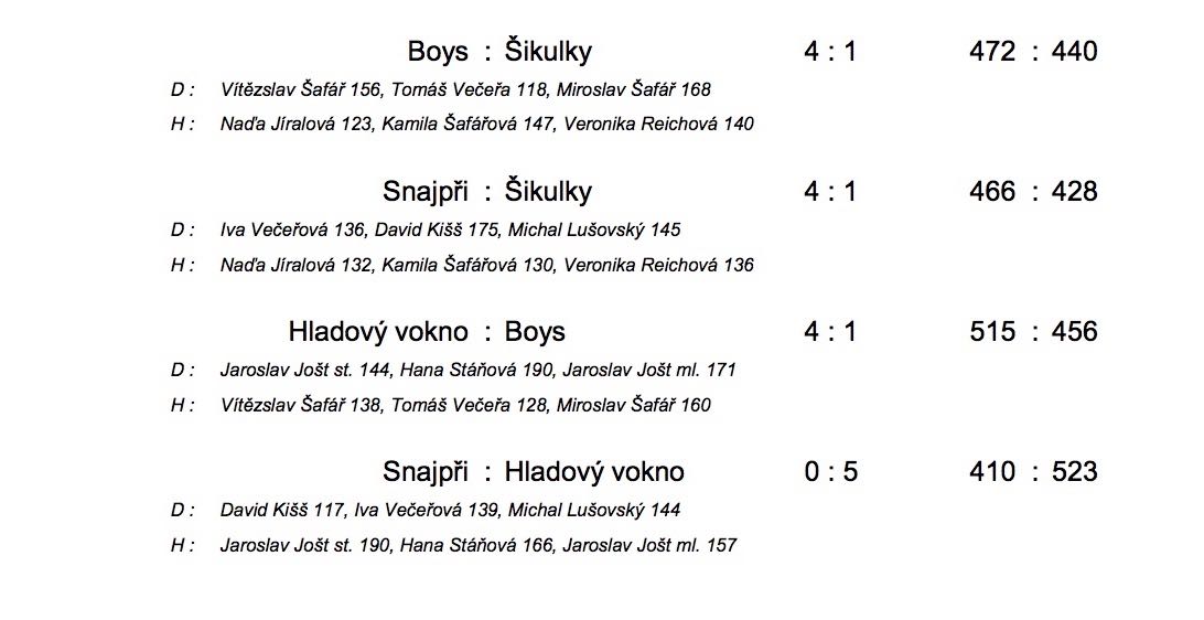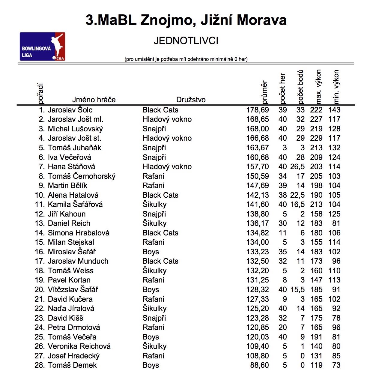 V neděli 8.3.2015 odehrála družstva 3. Městské amatérské bowlingové ligy osmé kolo ročníku 2014/2015. Výsledky naleznete v článku.