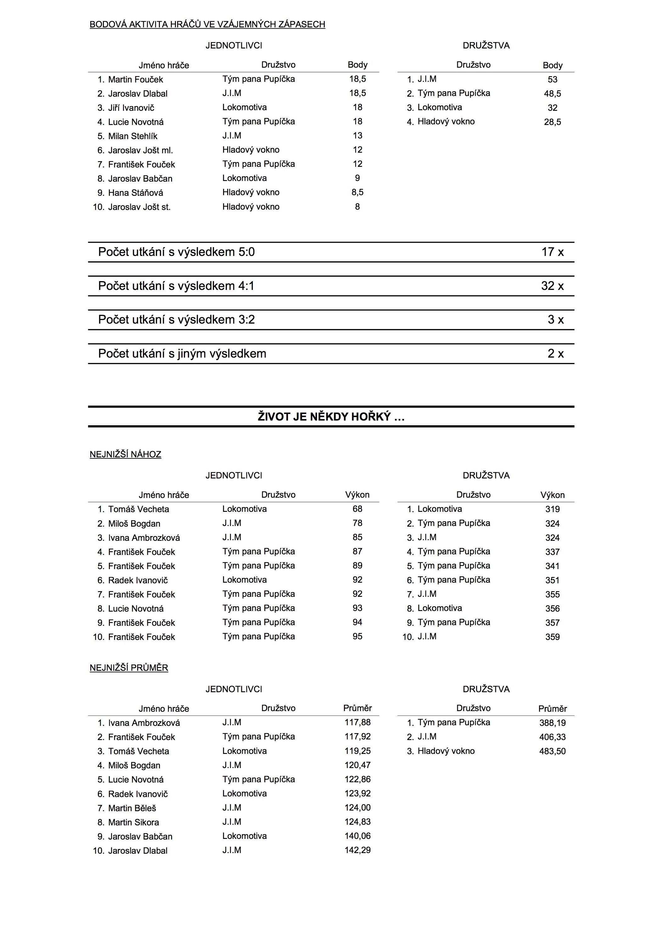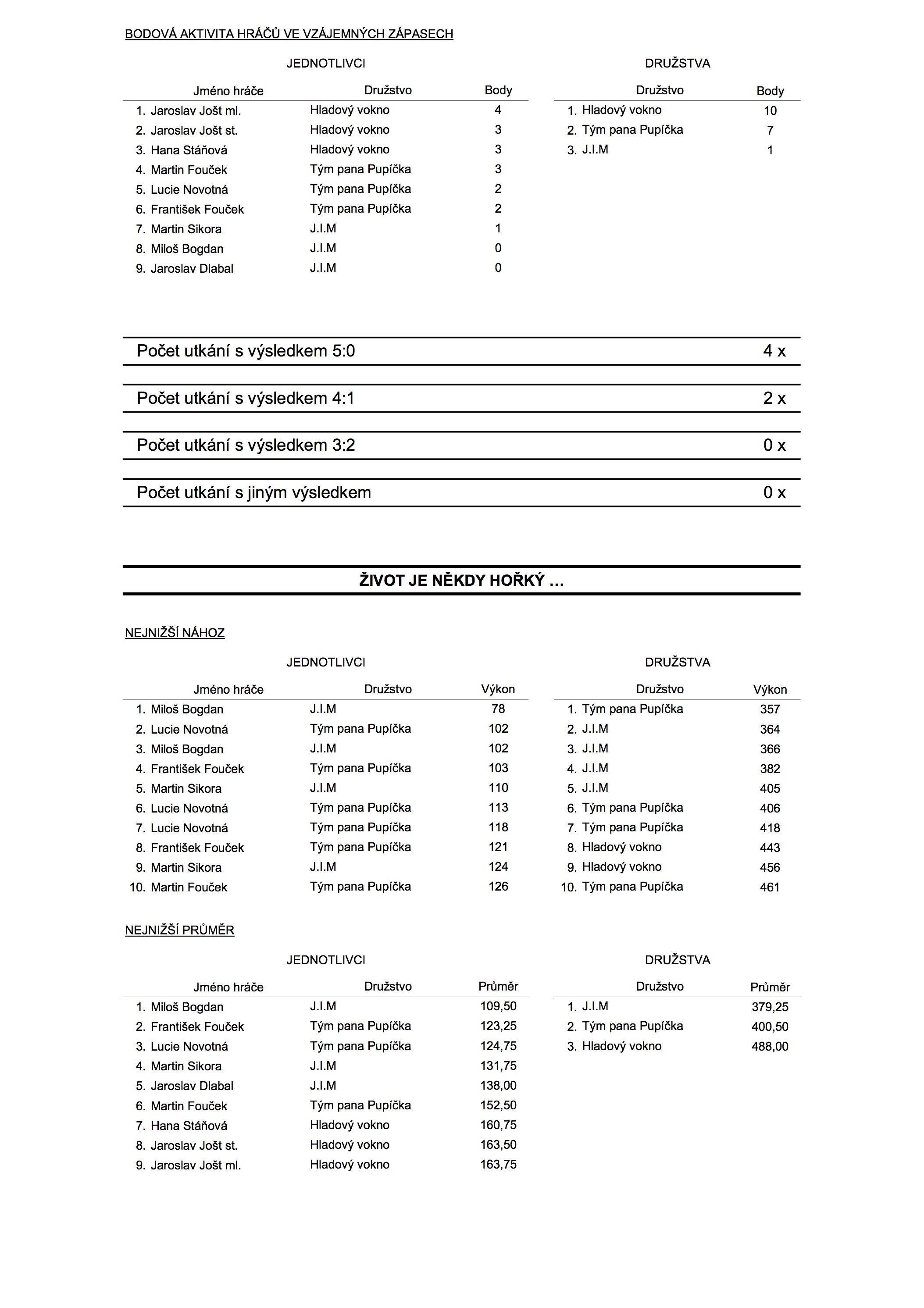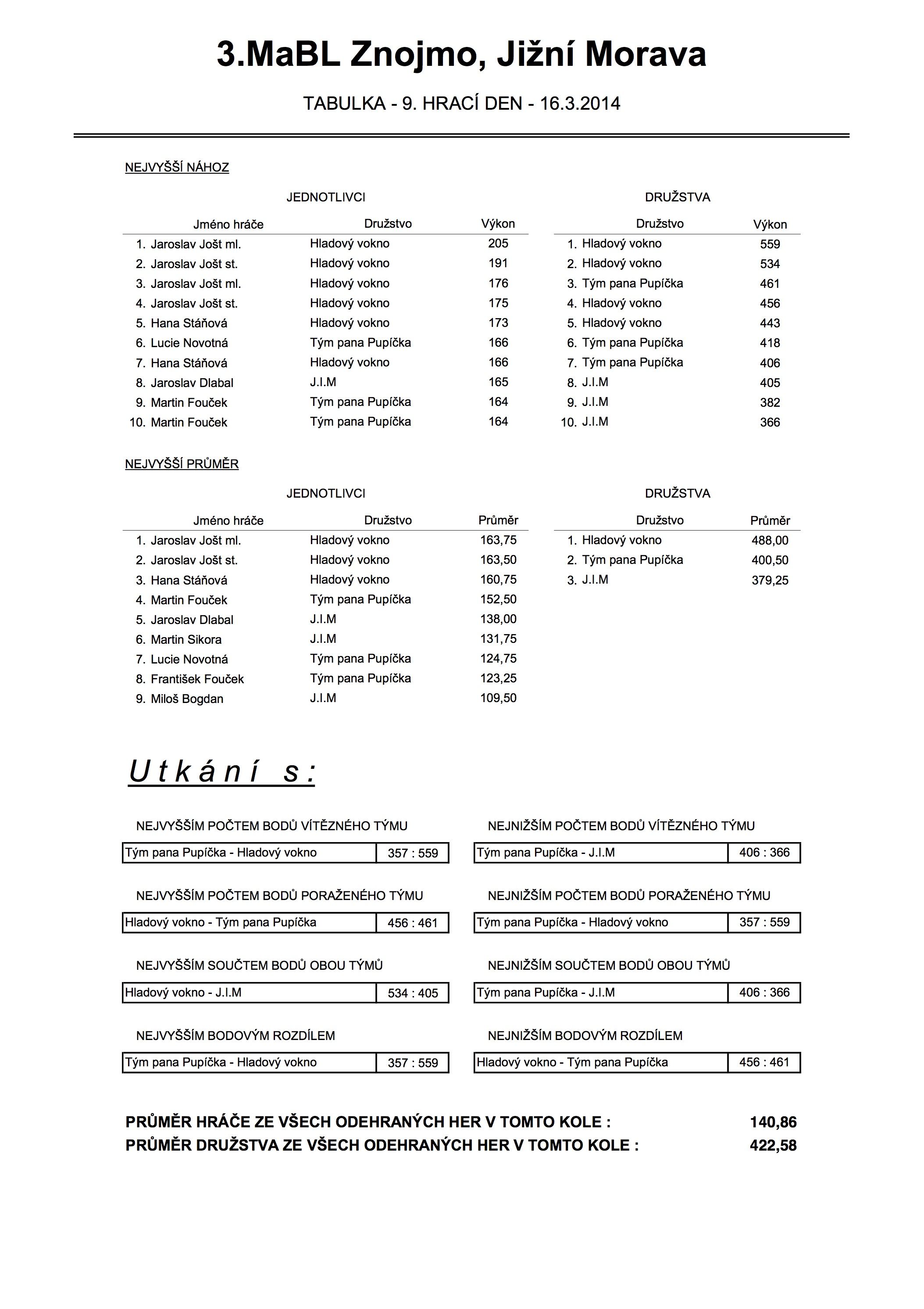 V neděli 16.3.2014 se odehrálo deváté kolo 3. Městské amatérské bowlingové ligy. Výsledky Vám jako vždy přinášíme touto cestou.