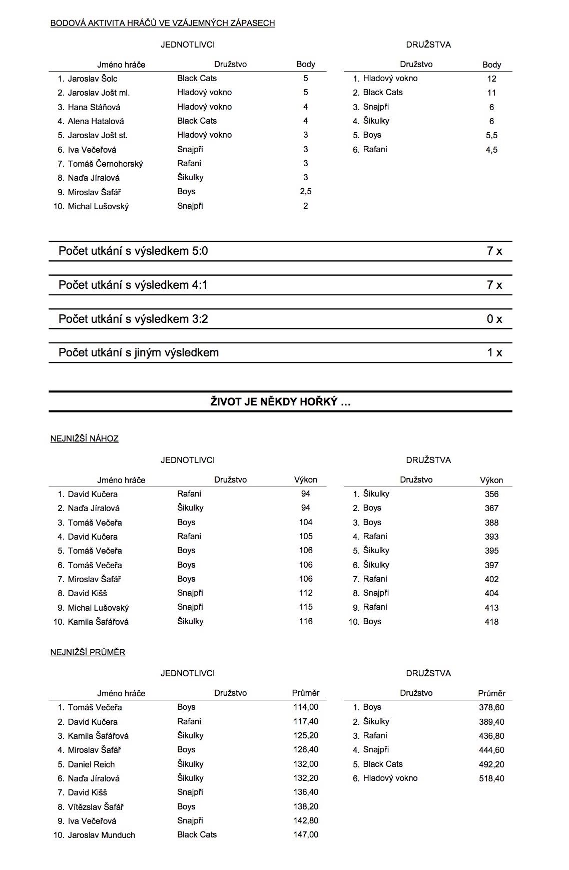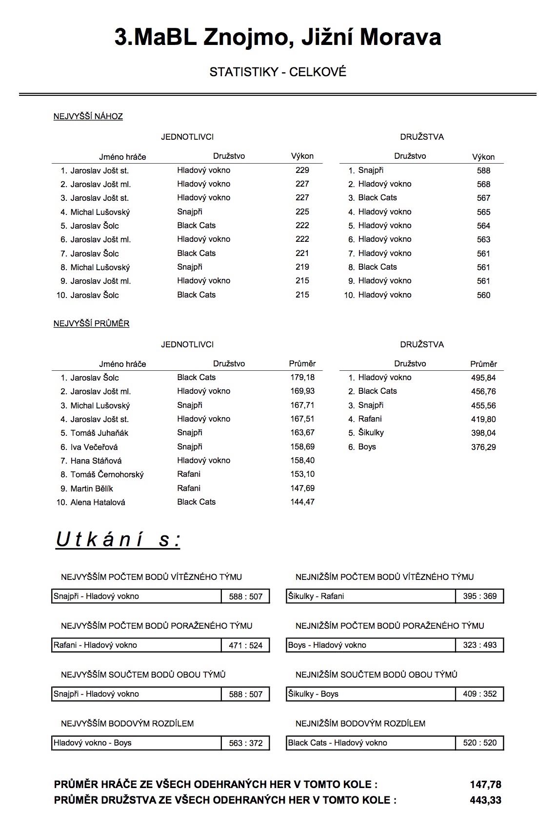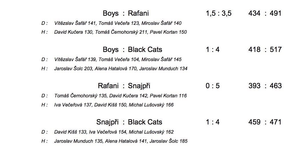 V neděli 15.3.2015 odehrála družstva 3. Městské amatérské bowlingové ligy deváté kolo ročníku 2014/2015. Výsledky naleznete v článku.