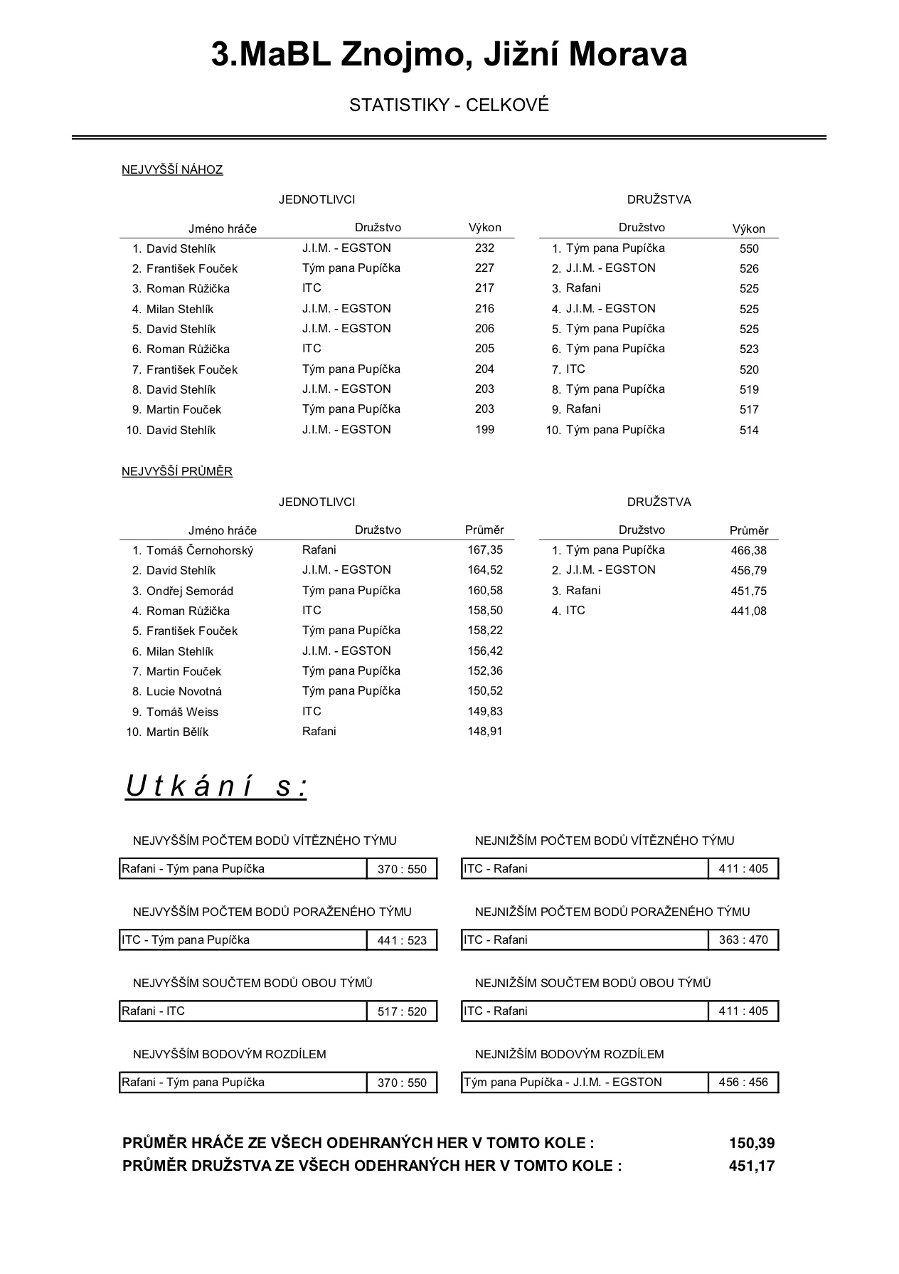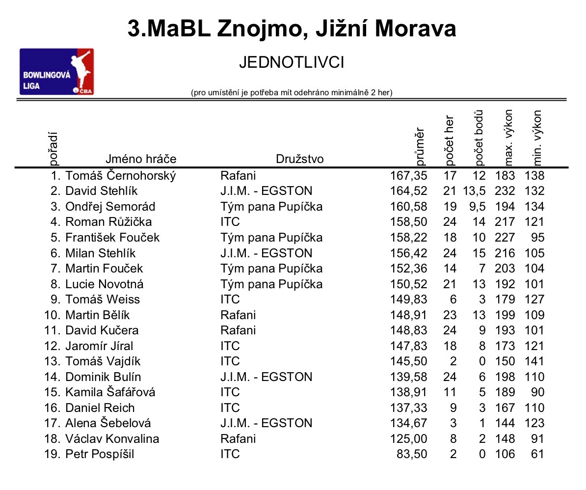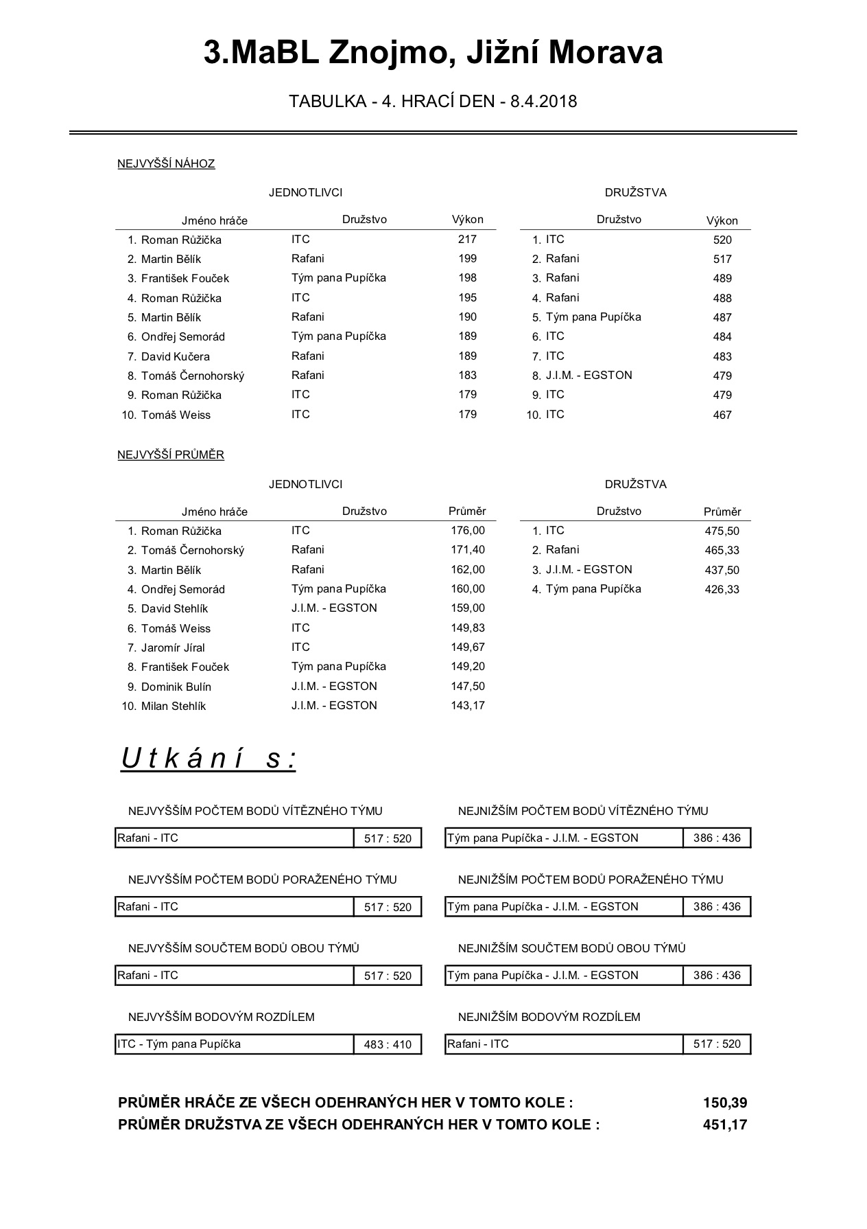 V neděli 8.4.2018 zahájila družstva 3. Městské amatérské bowlingové ligy další, již předposlední kolo jarní části ročníku 2017/2018. Výsledky naleznete jako vždy v článku.