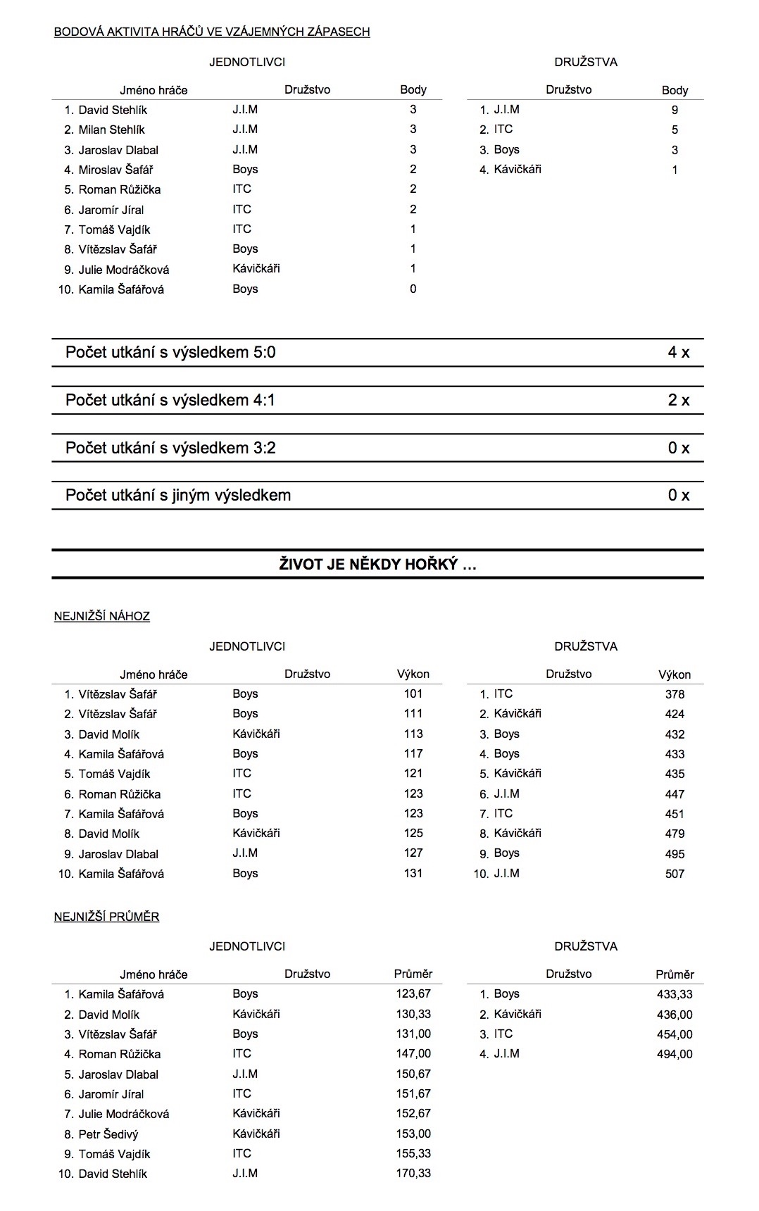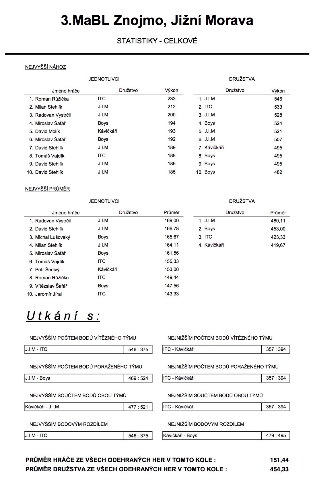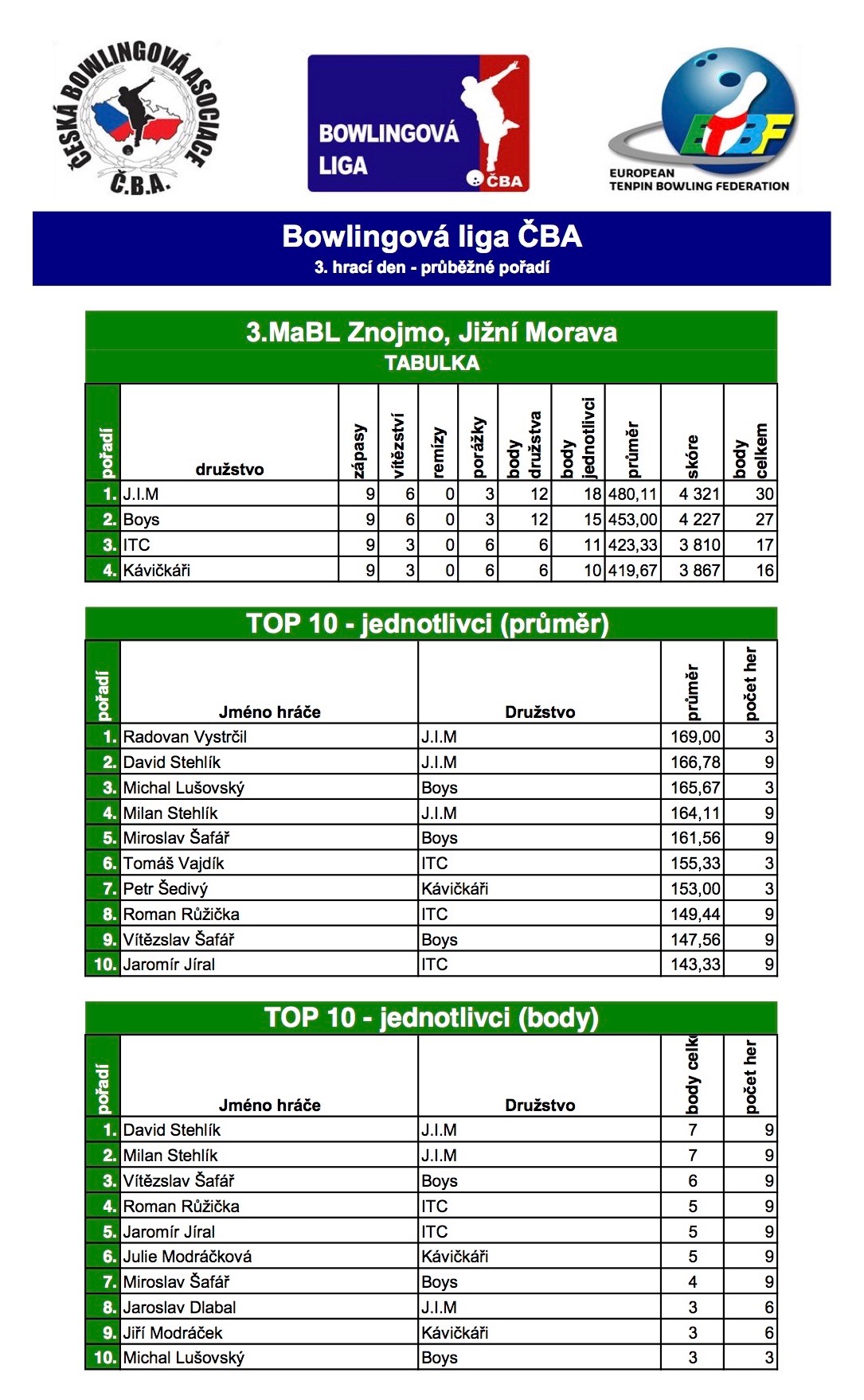 V pondělí 31.10.2016 odehrála družstva 3. Městské amatérské bowlingové ligy již třetí kolo poodzimní části ročníku 2016. Výsledky naleznete jako vždy v článku.