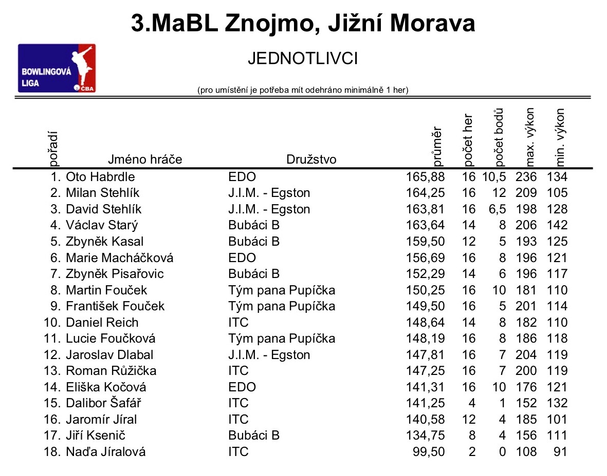 3. MABL podzim 2018 - 4. kolo