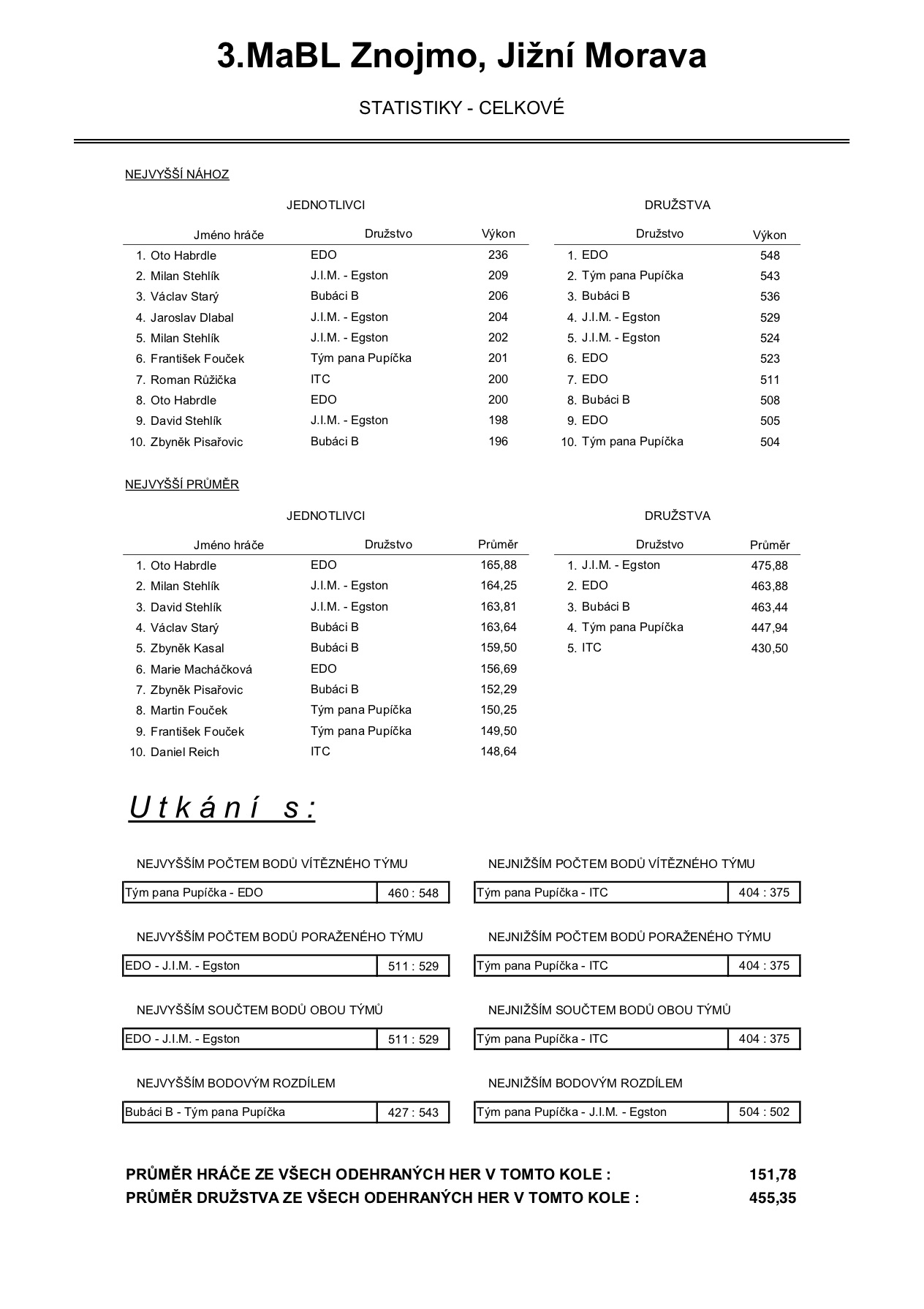 Celková statistika po čtvrtém kole: