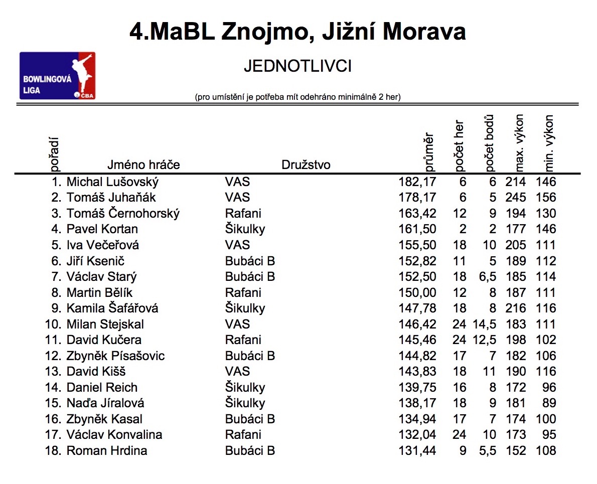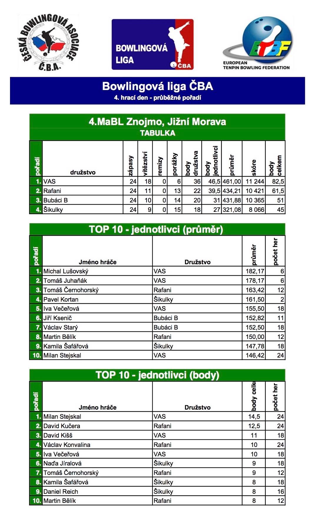 V pondělí 10.4.2017 odehrála družstva 4. Městské amatérské bowlingové ligy již čtvrté, předposlední kolo jarní části ročníku 2017. Výsledky naleznete jako vždy v článku.