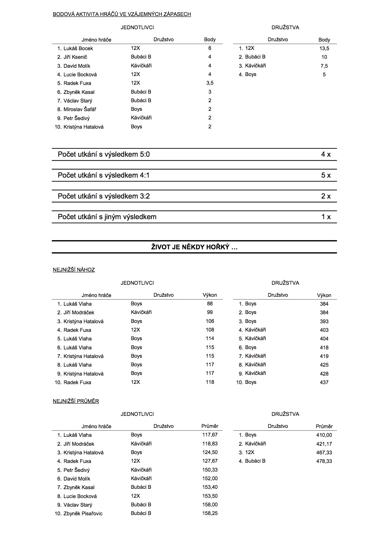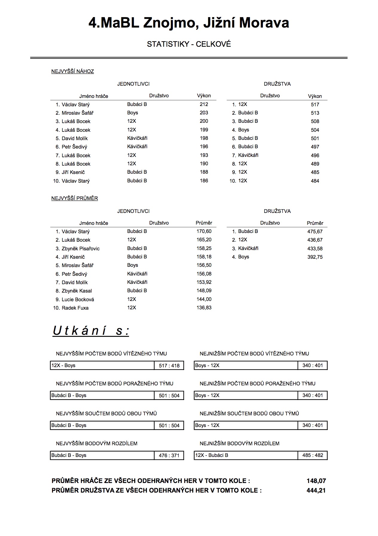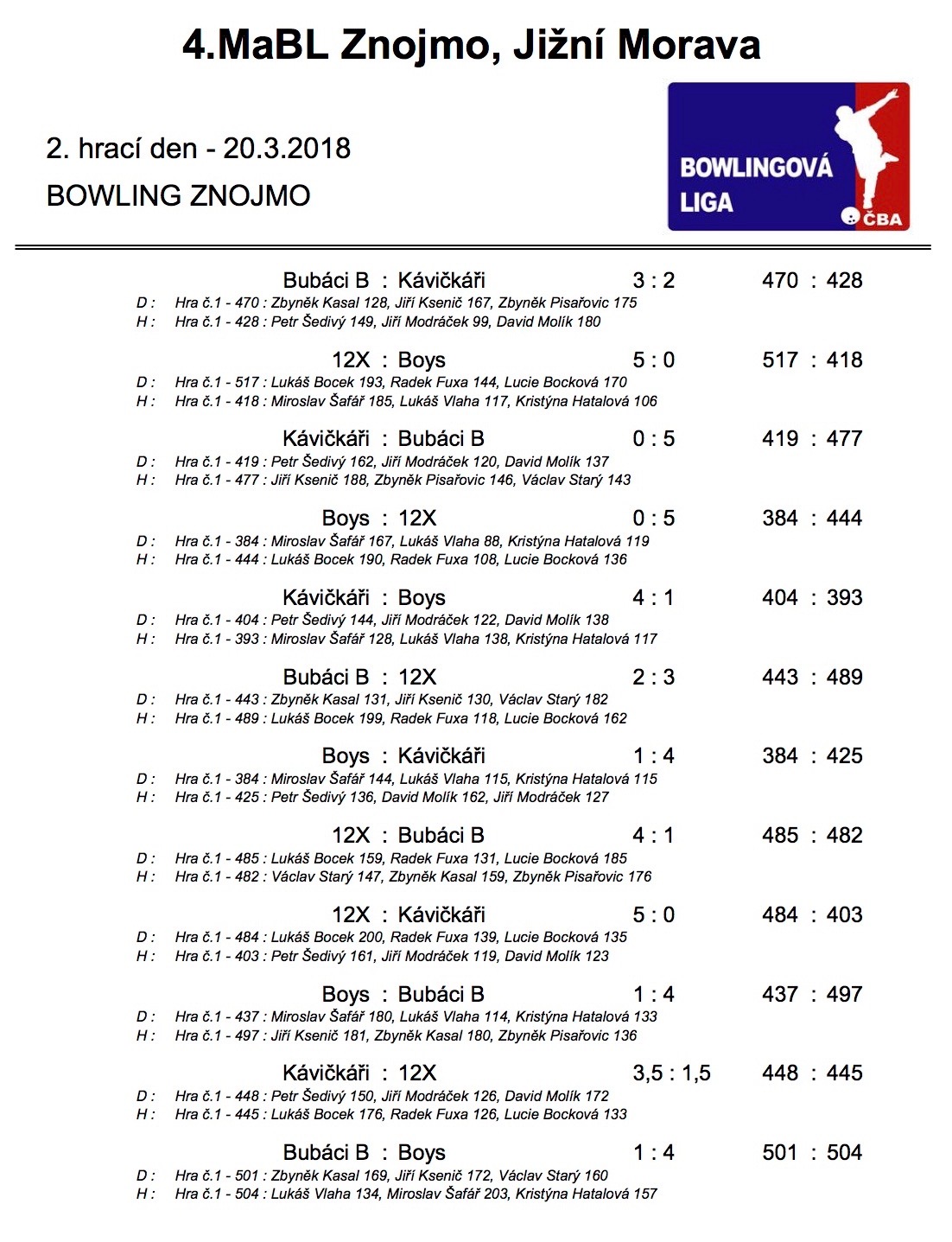 V úterý 20.3.2018 zahájila už i družstva 4. Městské amatérské bowlingové ligy další kolo jarní části ročníku 2017/2018. Výsledky naleznete jako vždy v článku.