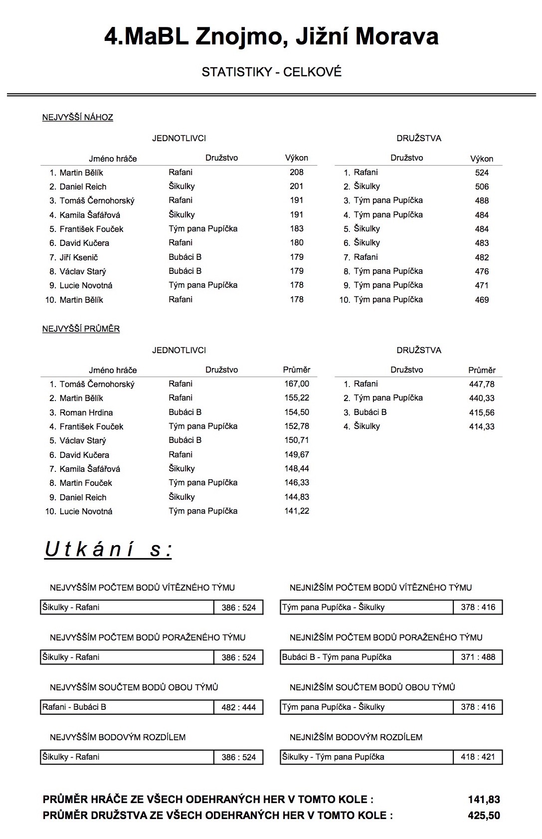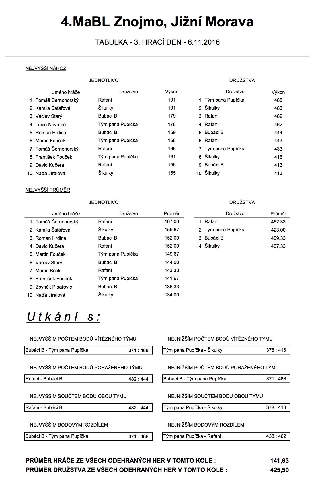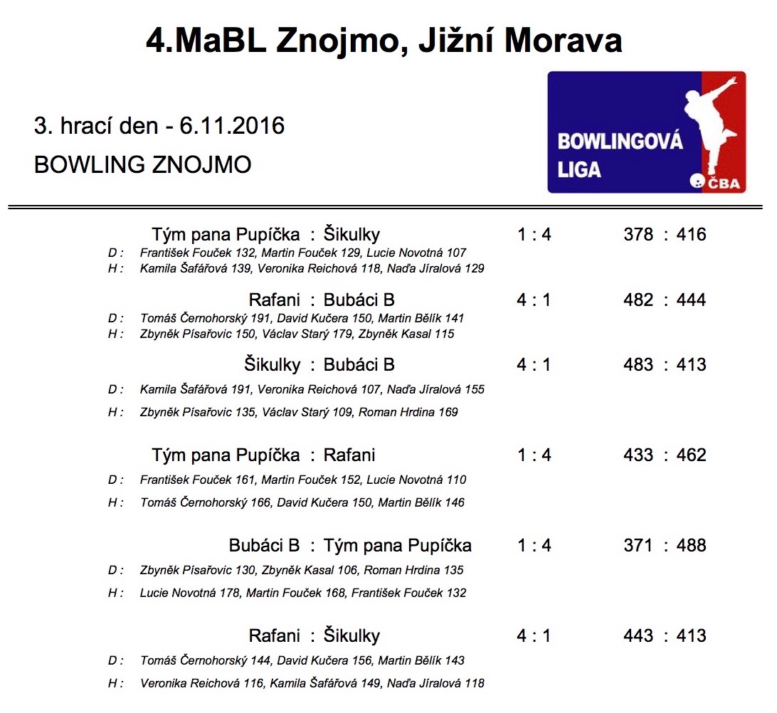 4. MABL podzim 2016 - 3. kolo