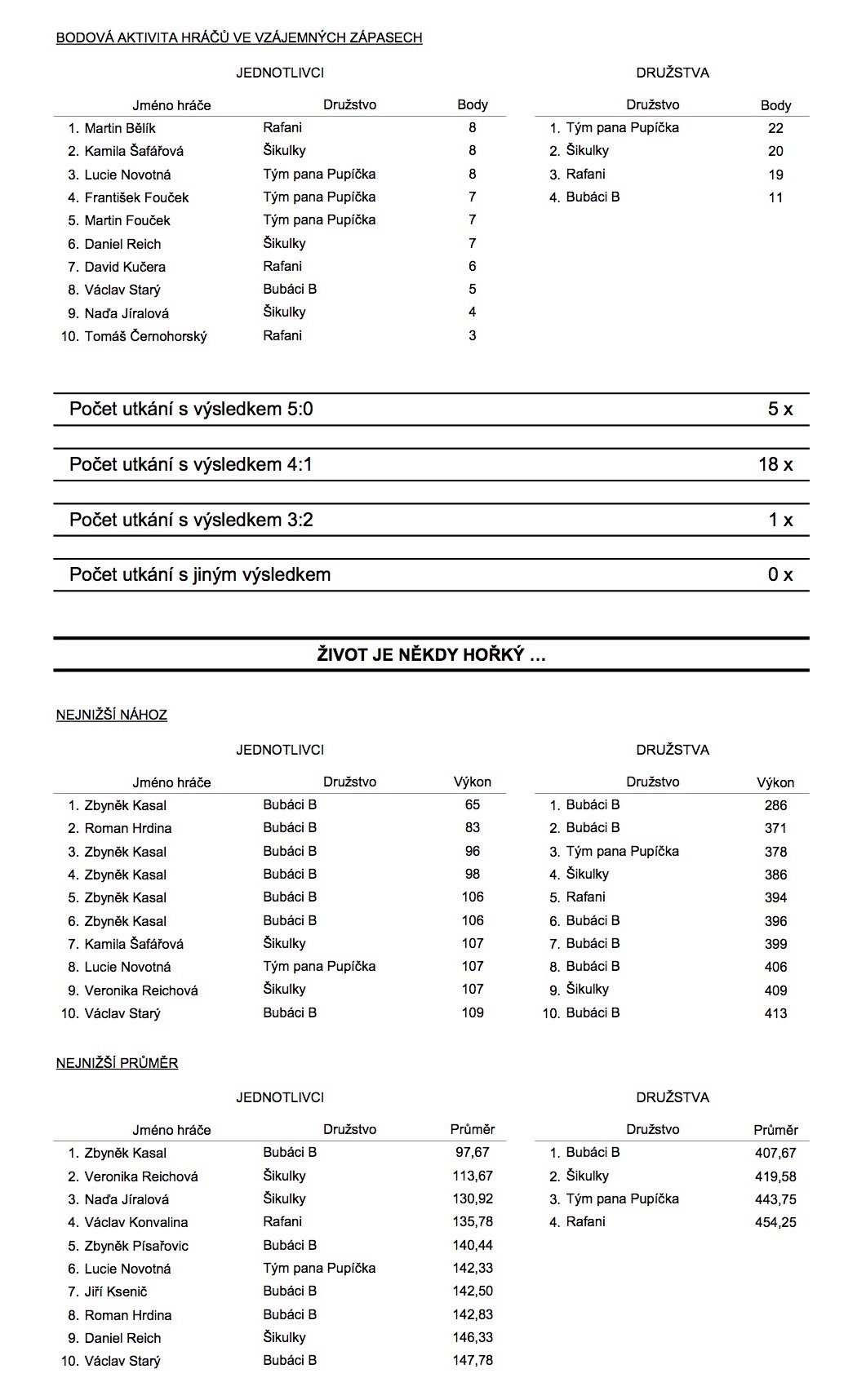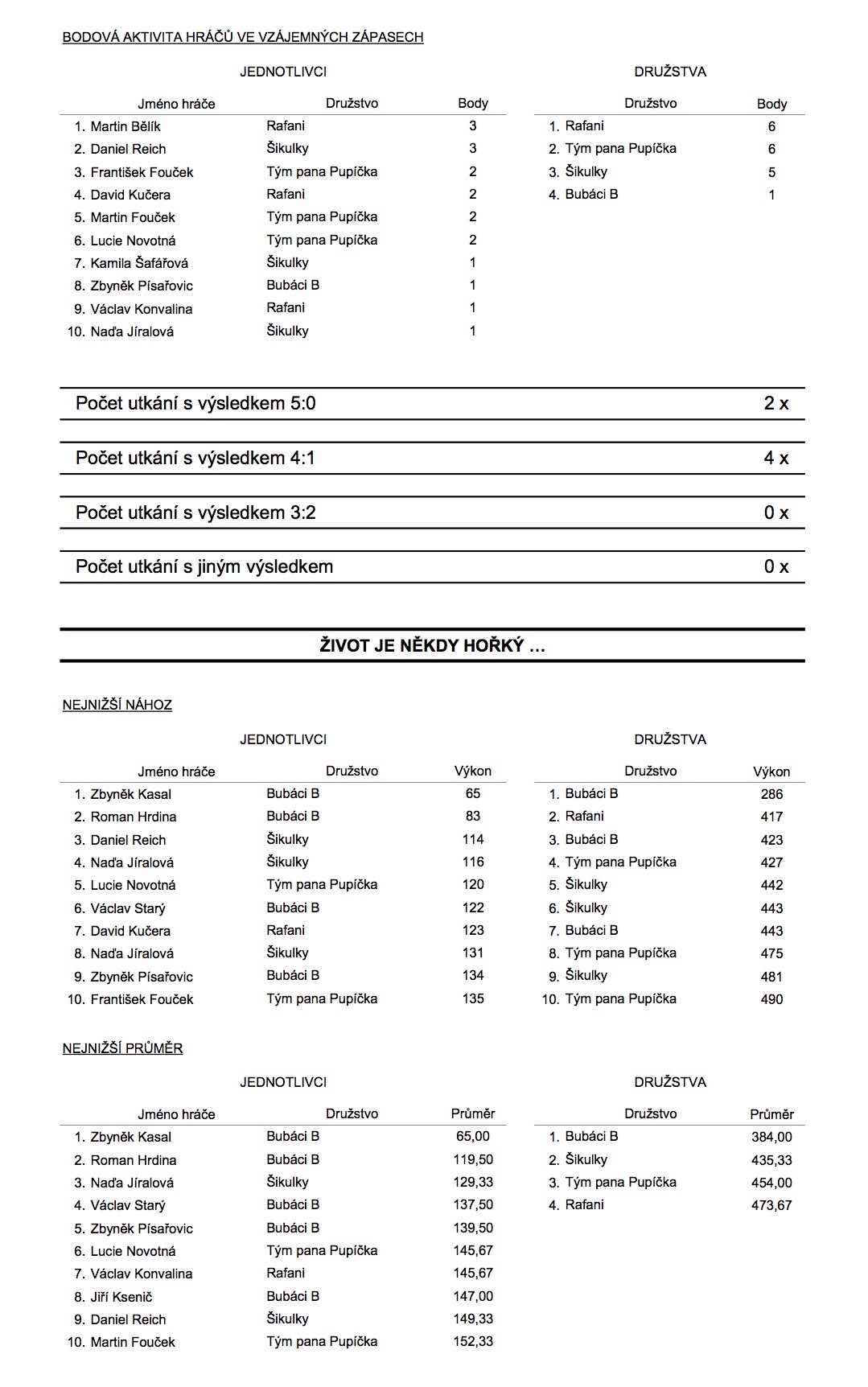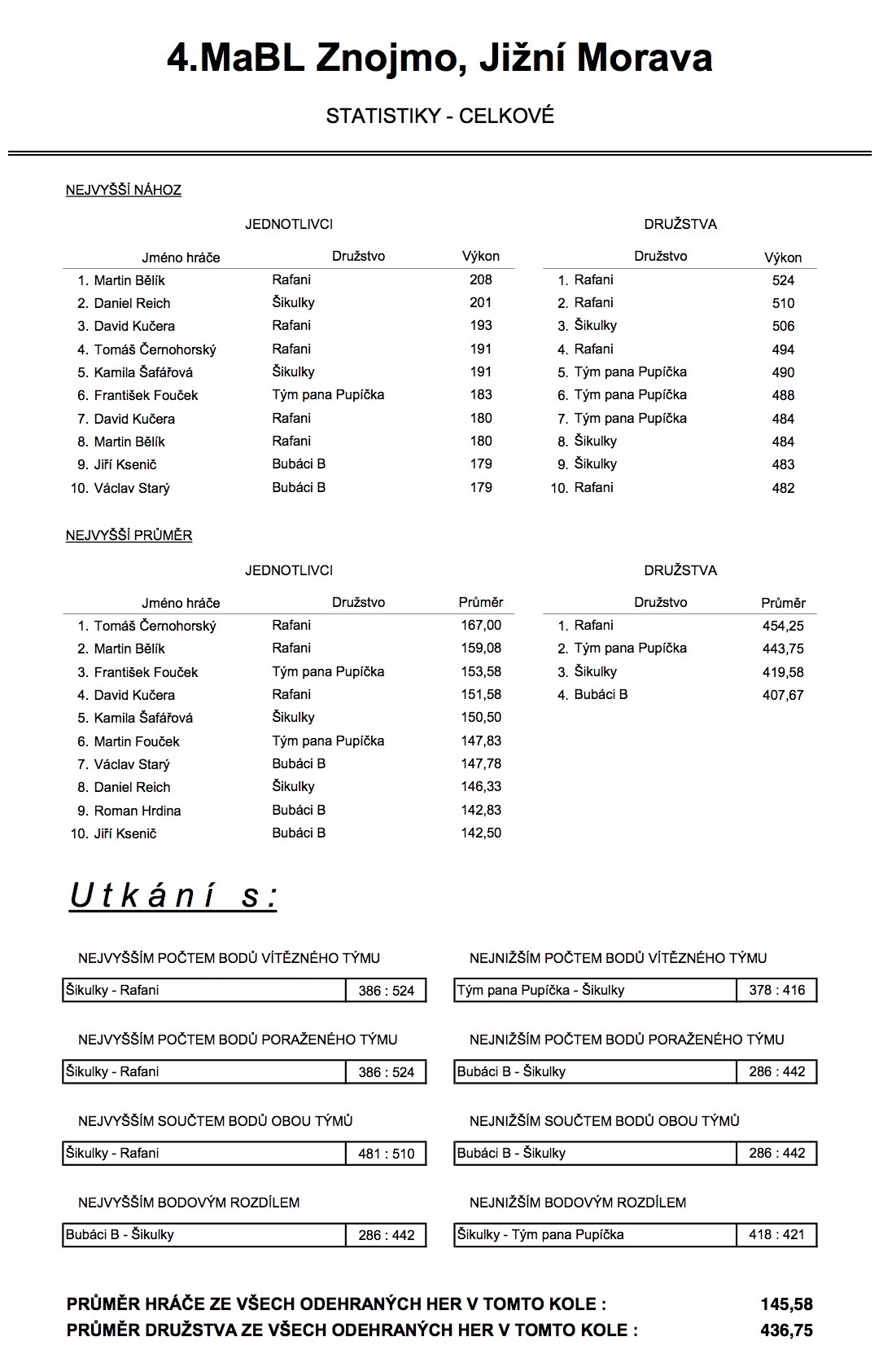 V úterý 15.11.2016 odehrála družstva 4. Městské amatérské bowlingové ligy čtvrté kolo podzimní části ročníku 2016. Výsledky naleznete jako vždy v článku.