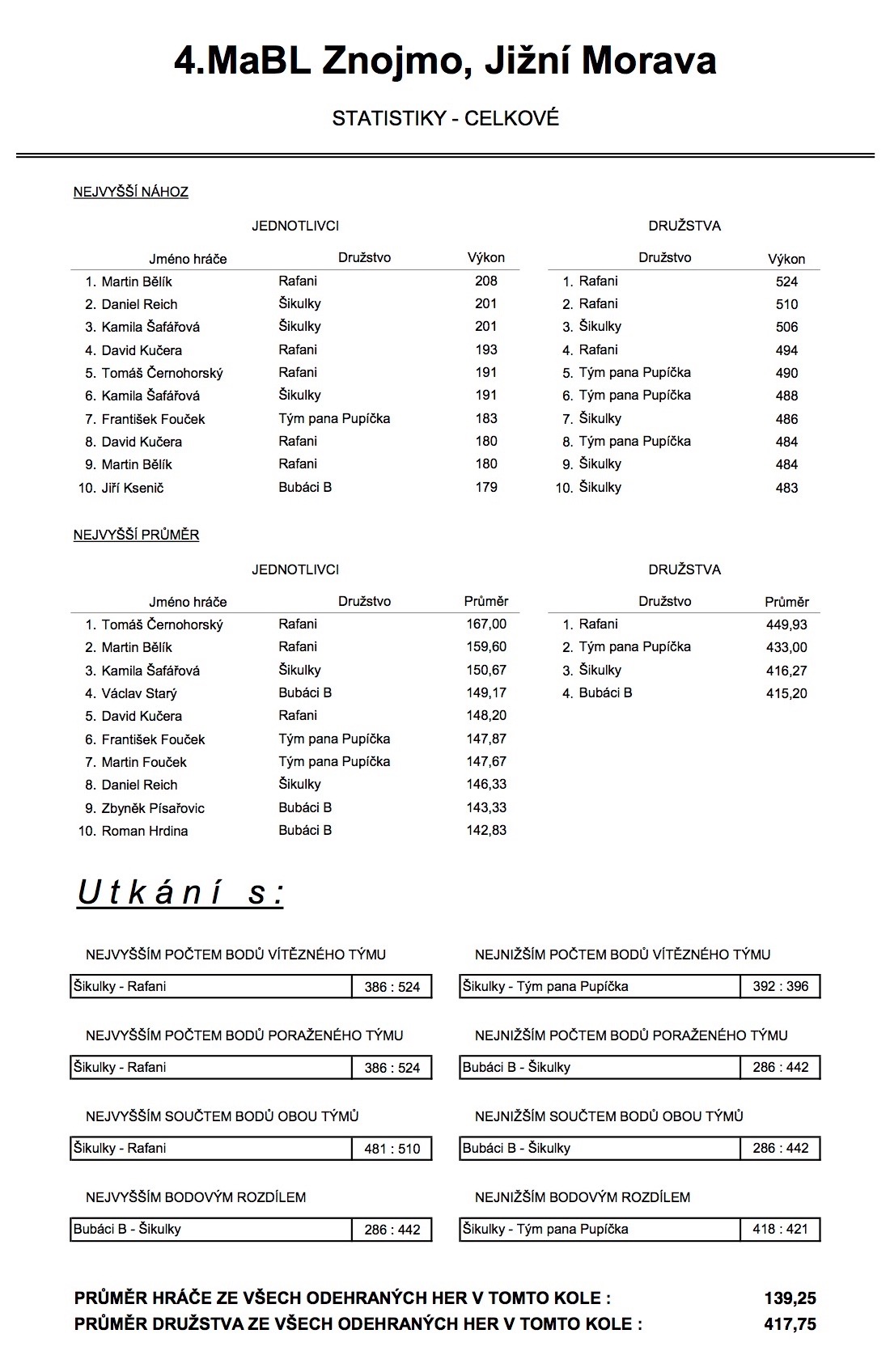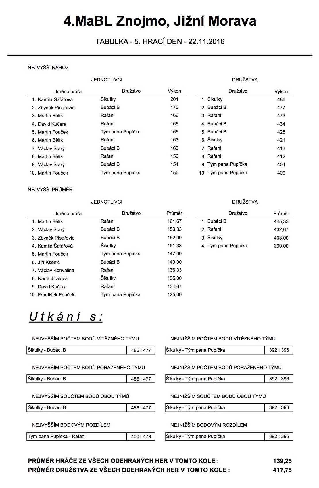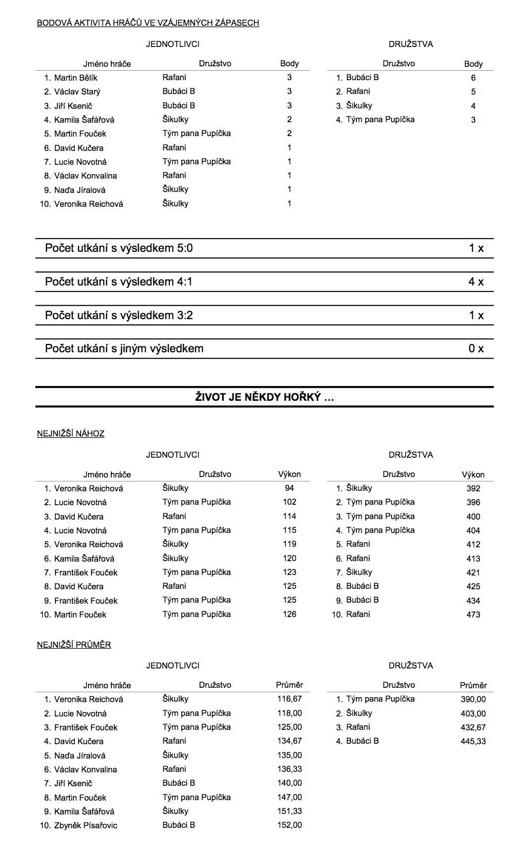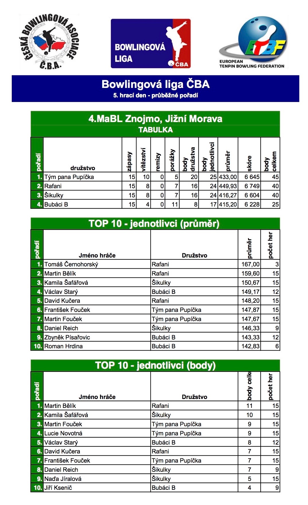 A jako vždy, na závěr celková statistika po 5. kolech: