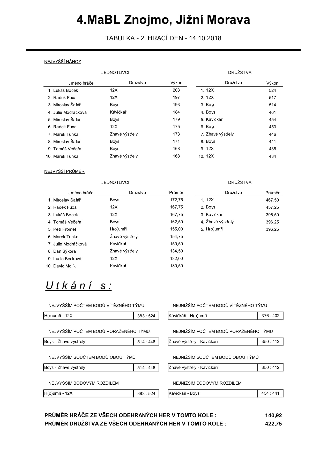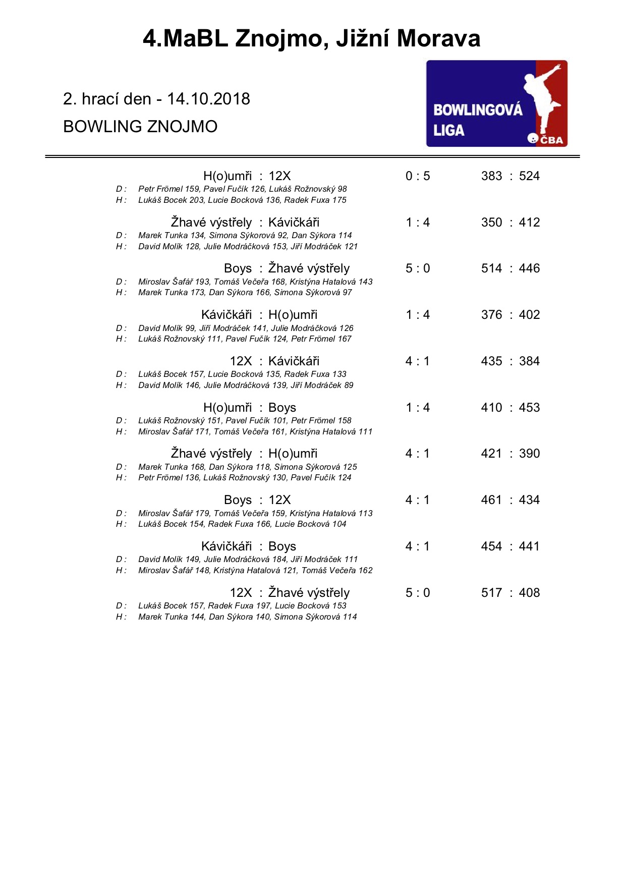 4. MABL podzim 2018 - 2. kolo