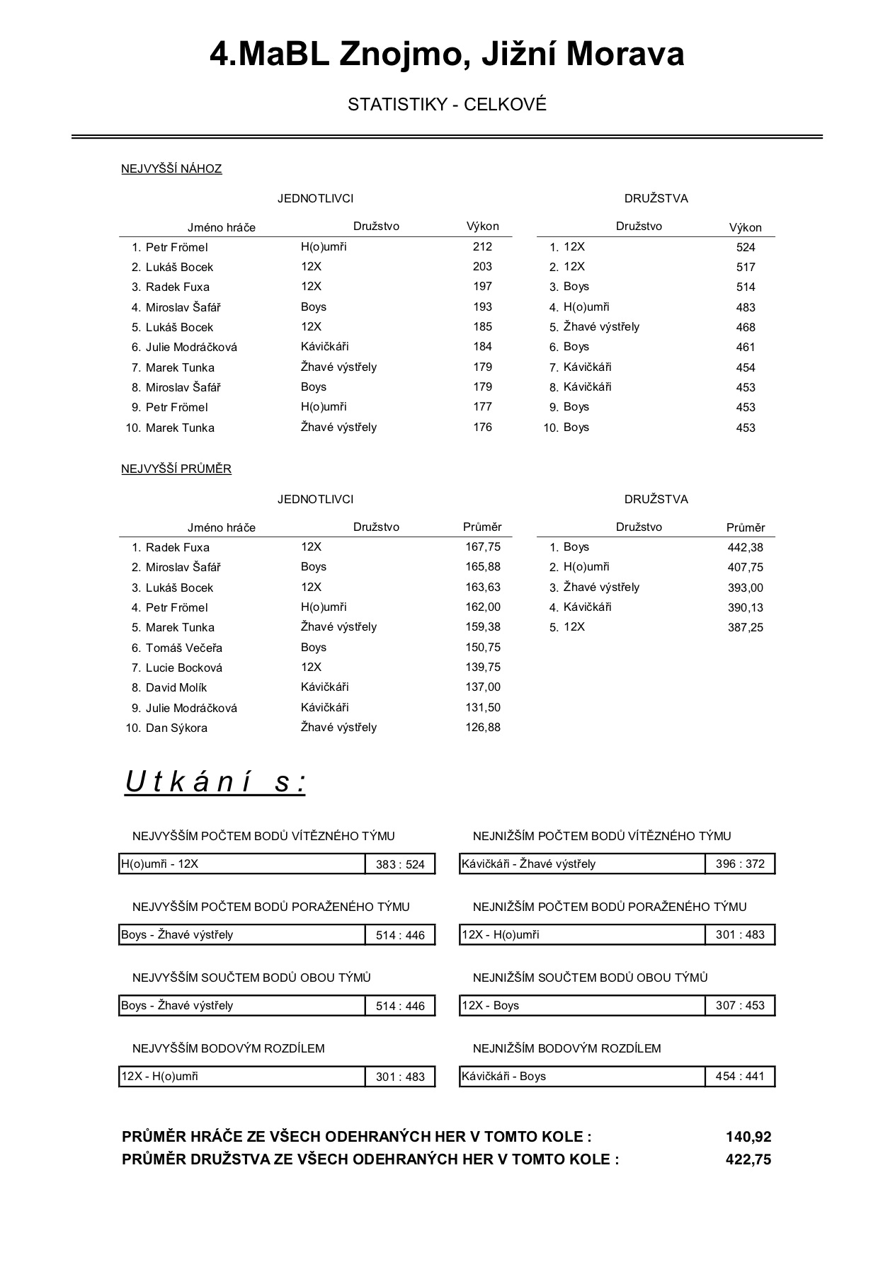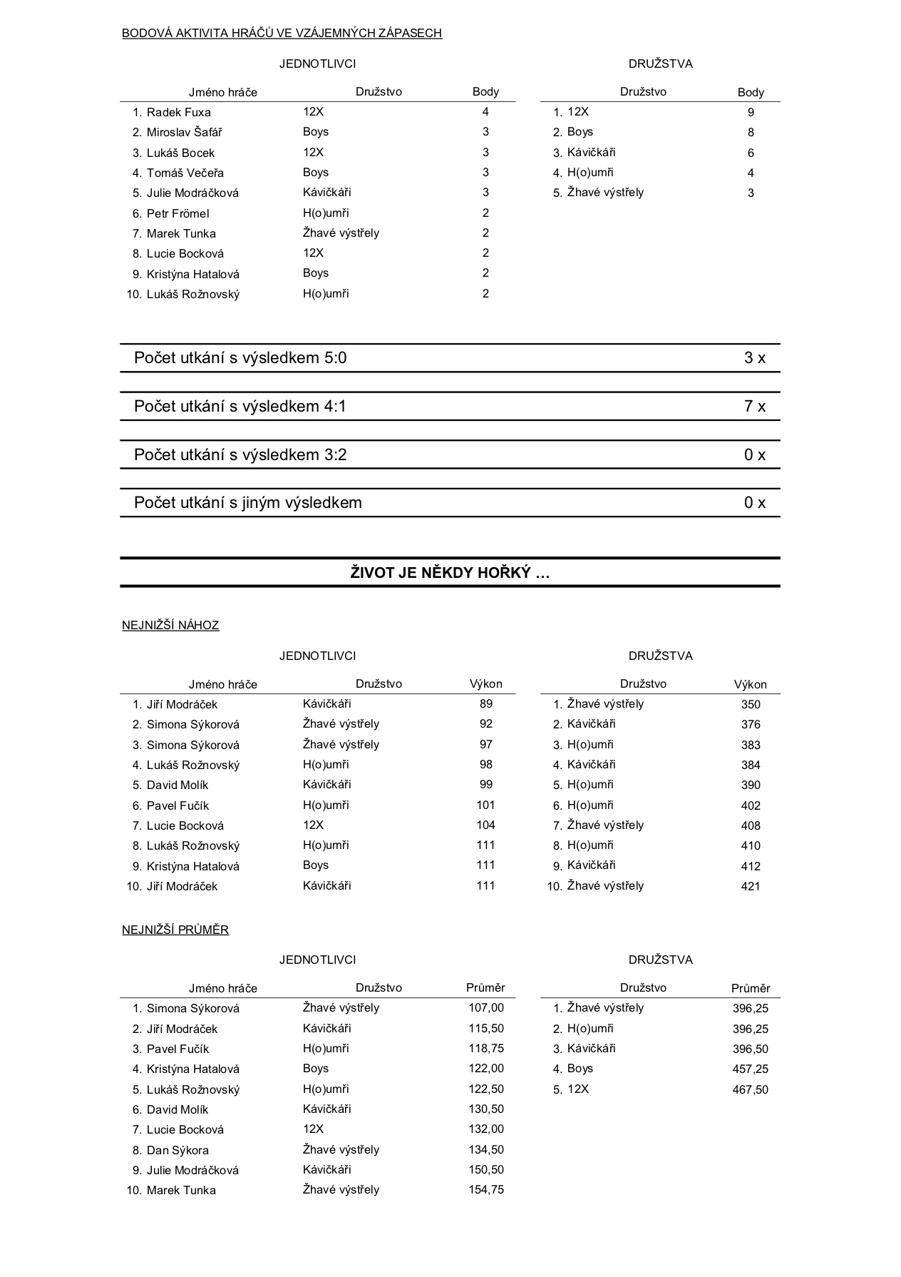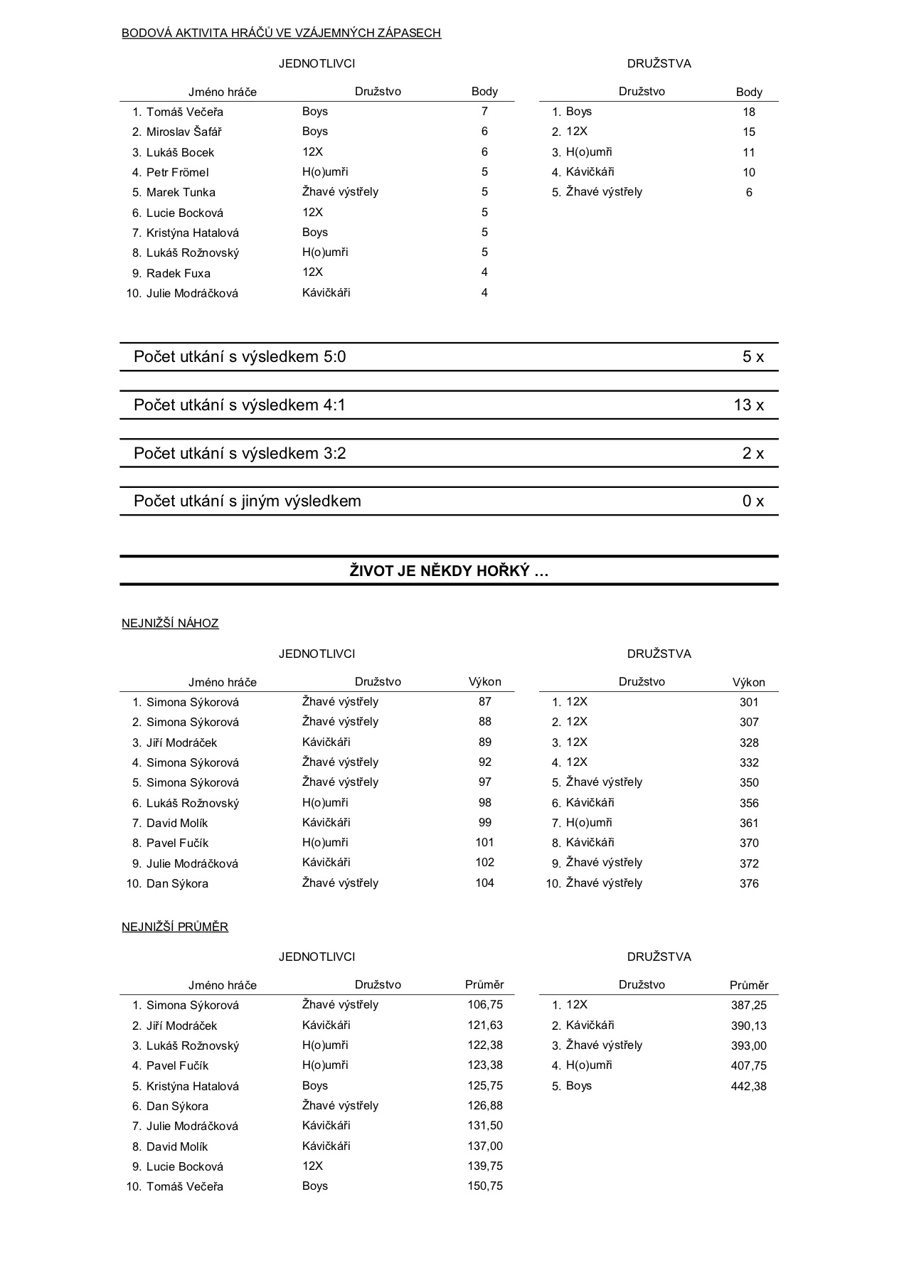 A na závěr celková statistika po druhém kole: