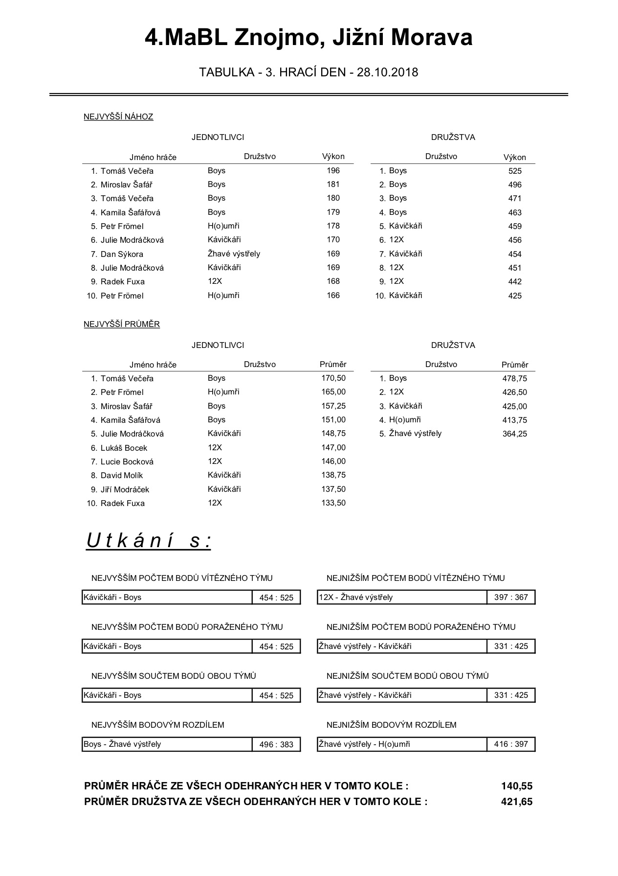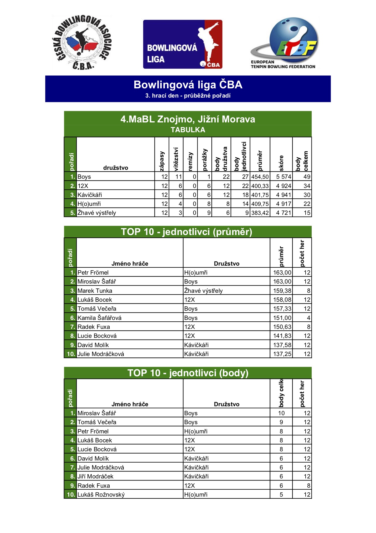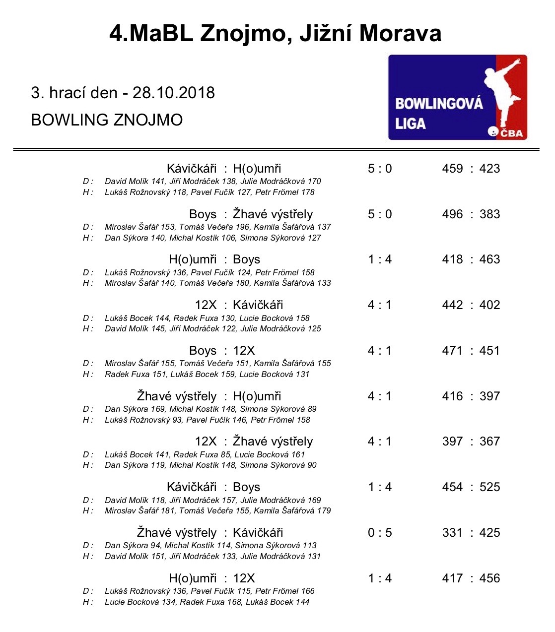 V neděli 28.října odehrála družstva 4. Městské amatérské bowlingové ligy již třetí kolo ročníku 2018/2019. Jeho výsledky naleznete v článku.