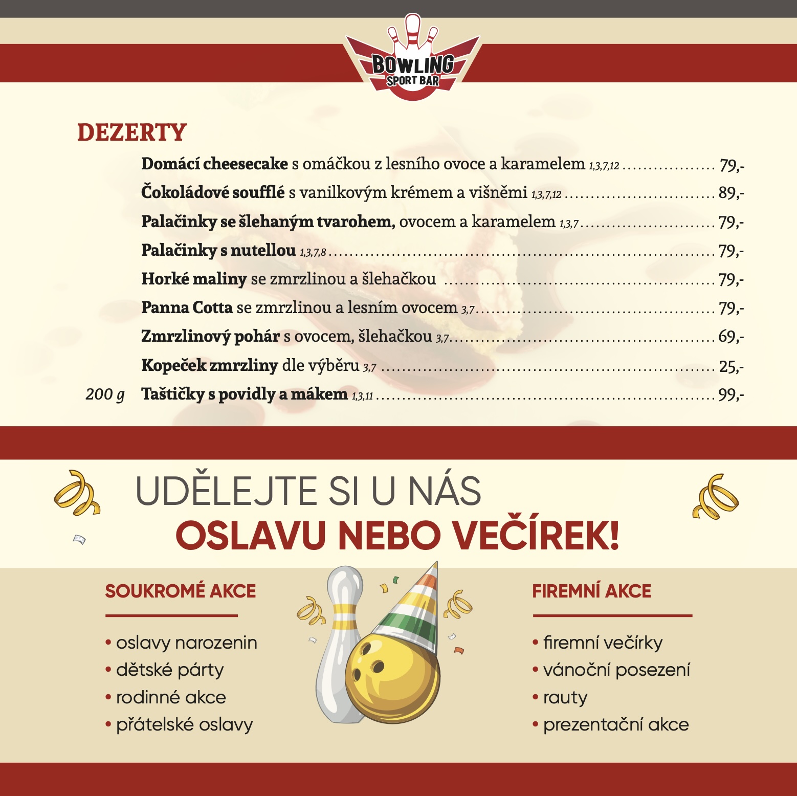 Vážení hosté, rezervační systém nově umožňuje online rezervaci bowlingových drah. Před rezervací je třeba se zaregistrovat, potvrdit platnost Vaší e-mailové adresy a následně již můžete vybrat čas a dráhu k rezervaci. Jako doplňující informaci prosím uvádějte, zda máte zájem o místo v restauraci před nebo po bowlingu. Jakmile Vám přijde e-mailové potvrzení rezervace, je Vaše rezervace bowlingu zajištěna. Při požadavku o rezervaci místa v restauraci se tato informace dostane k personálu, který zjistí, zda je pro Vás požadované místo volné. V případě, že by byla restaurace plně obsazena, bude Vás personál kontaktovat telefonicky s dotazem, zda i přesto chcete bowlingové dráhy rezervovat či rezervaci rušíte. Ze všech online rezervací budou vylosováni výherci, kteří obdrží poukazy na bowling zdarma. BOWLING ZNOJMO