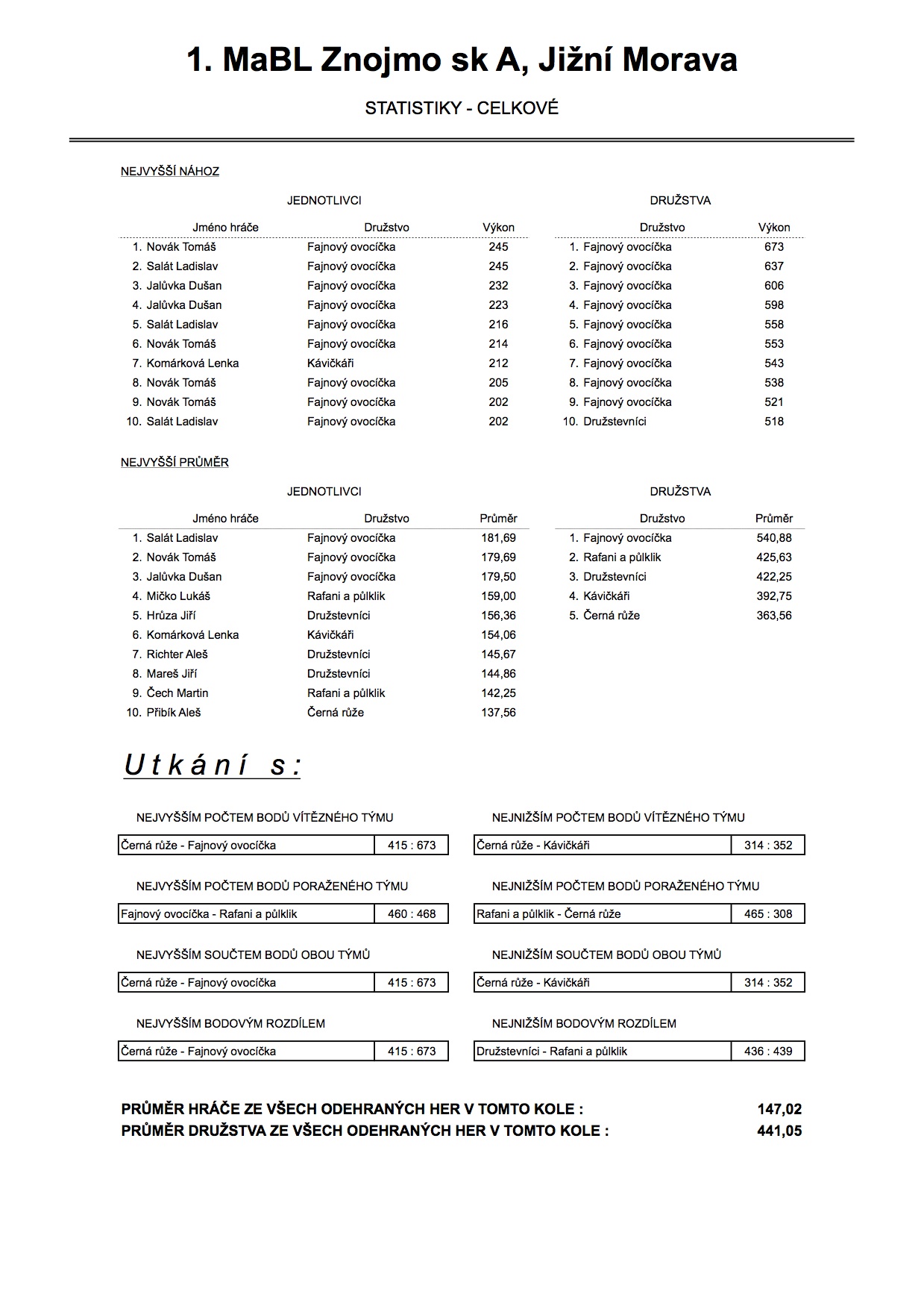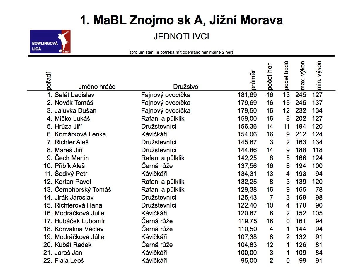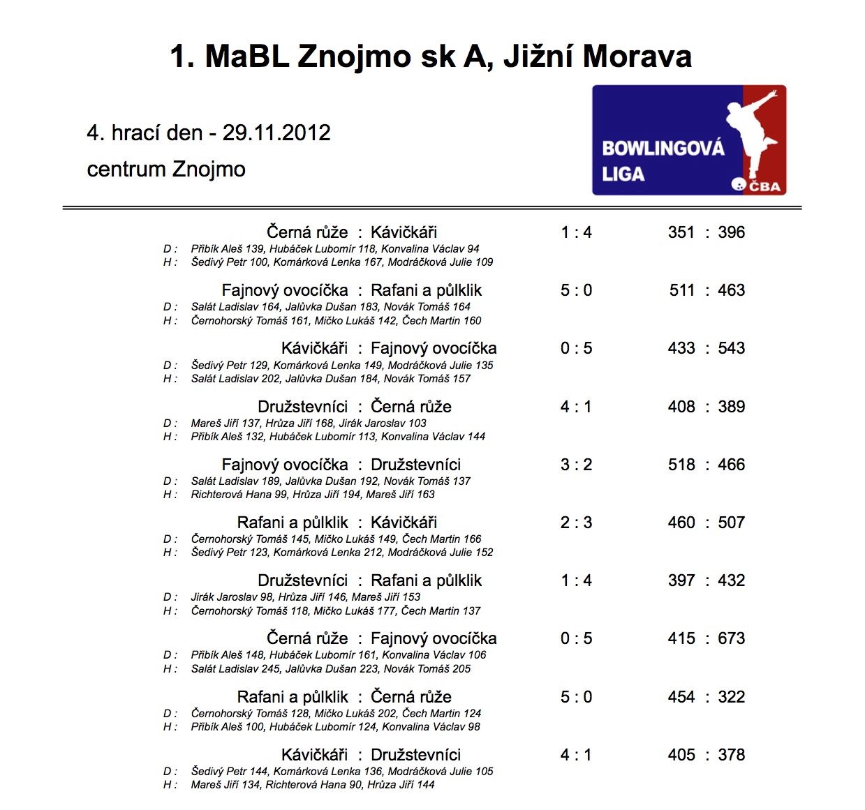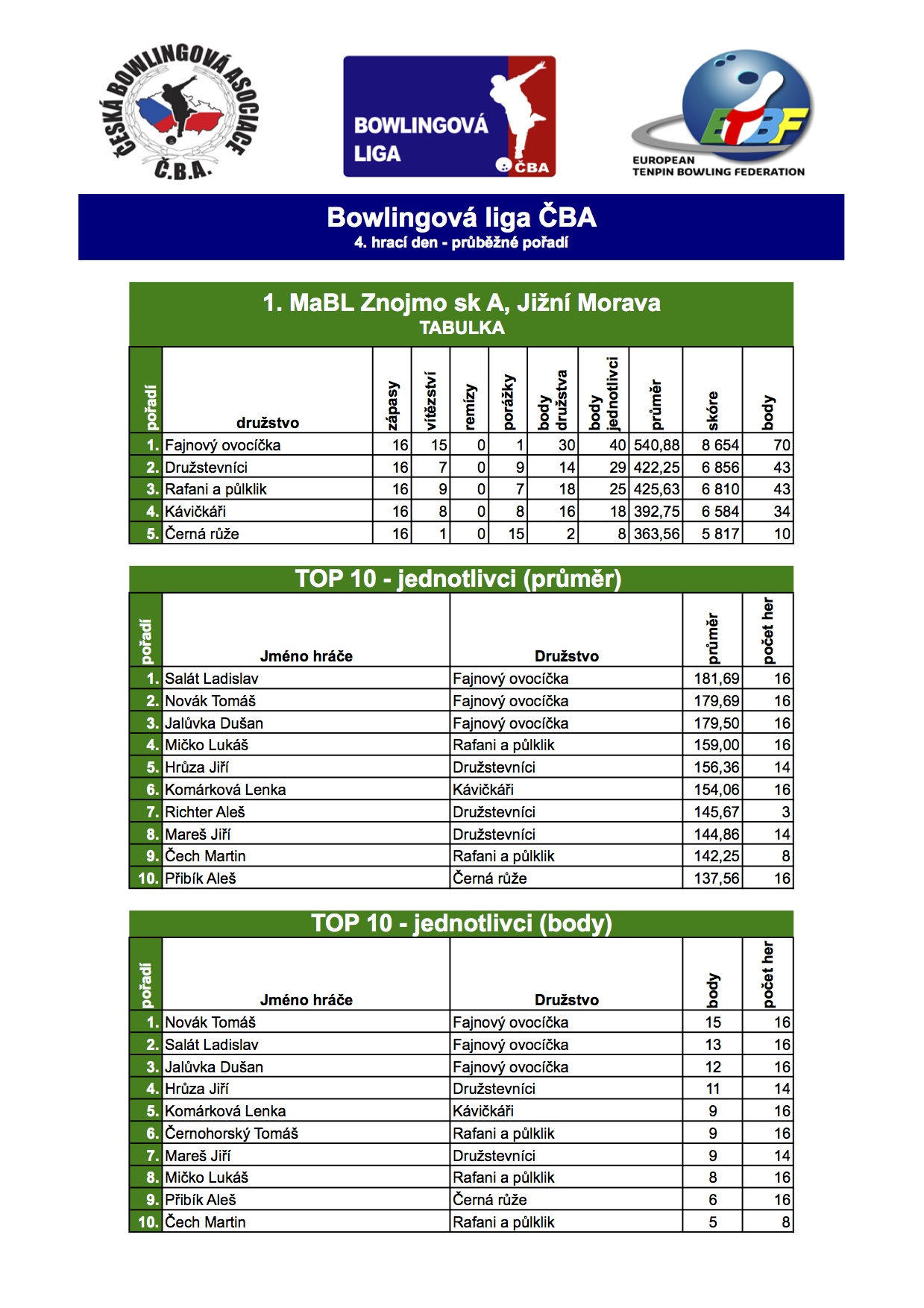 1. MaBL - výsledky po 4. kole skupiny "A"