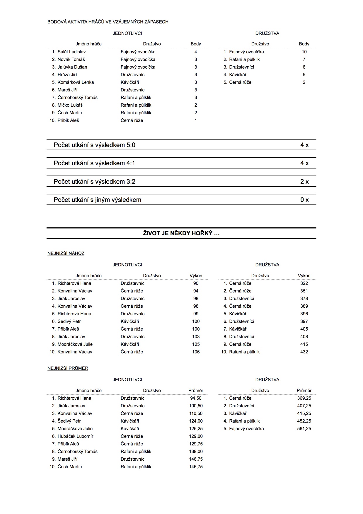Nyní celkové výsledky po čtyřech odehraných kolech: